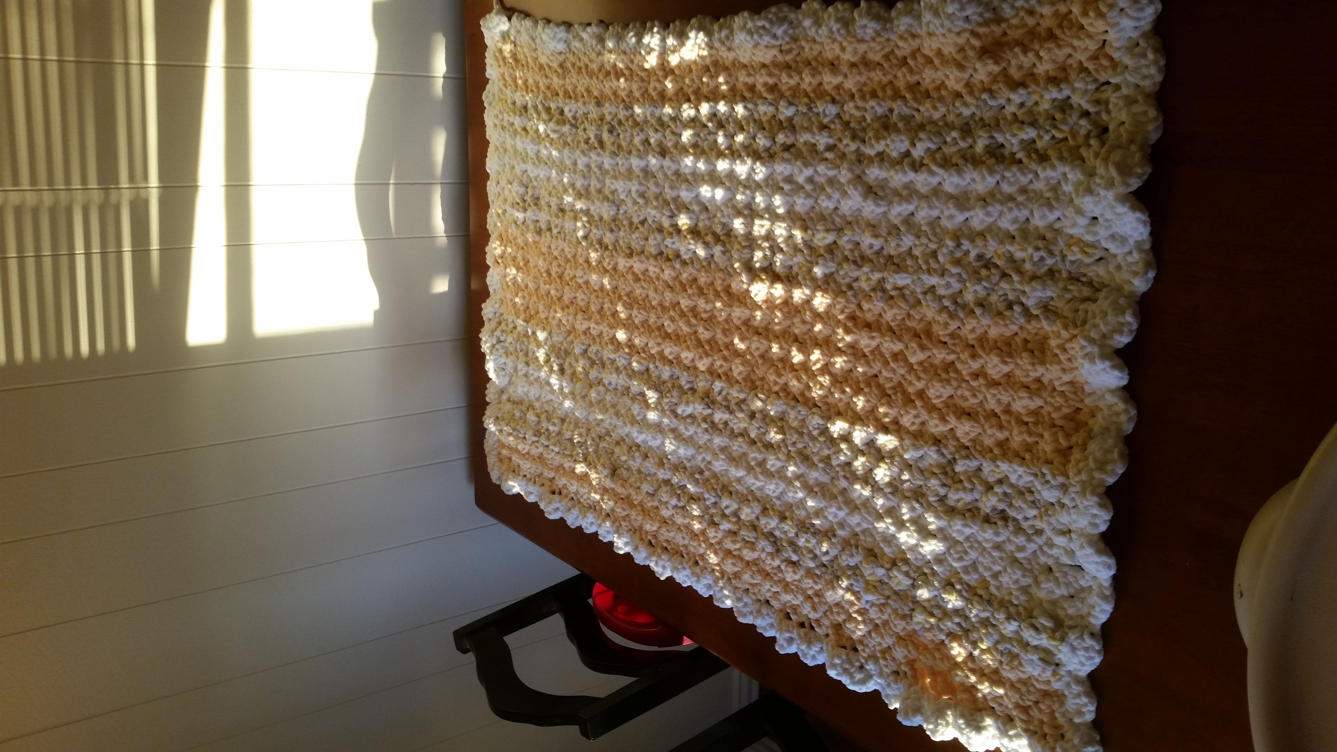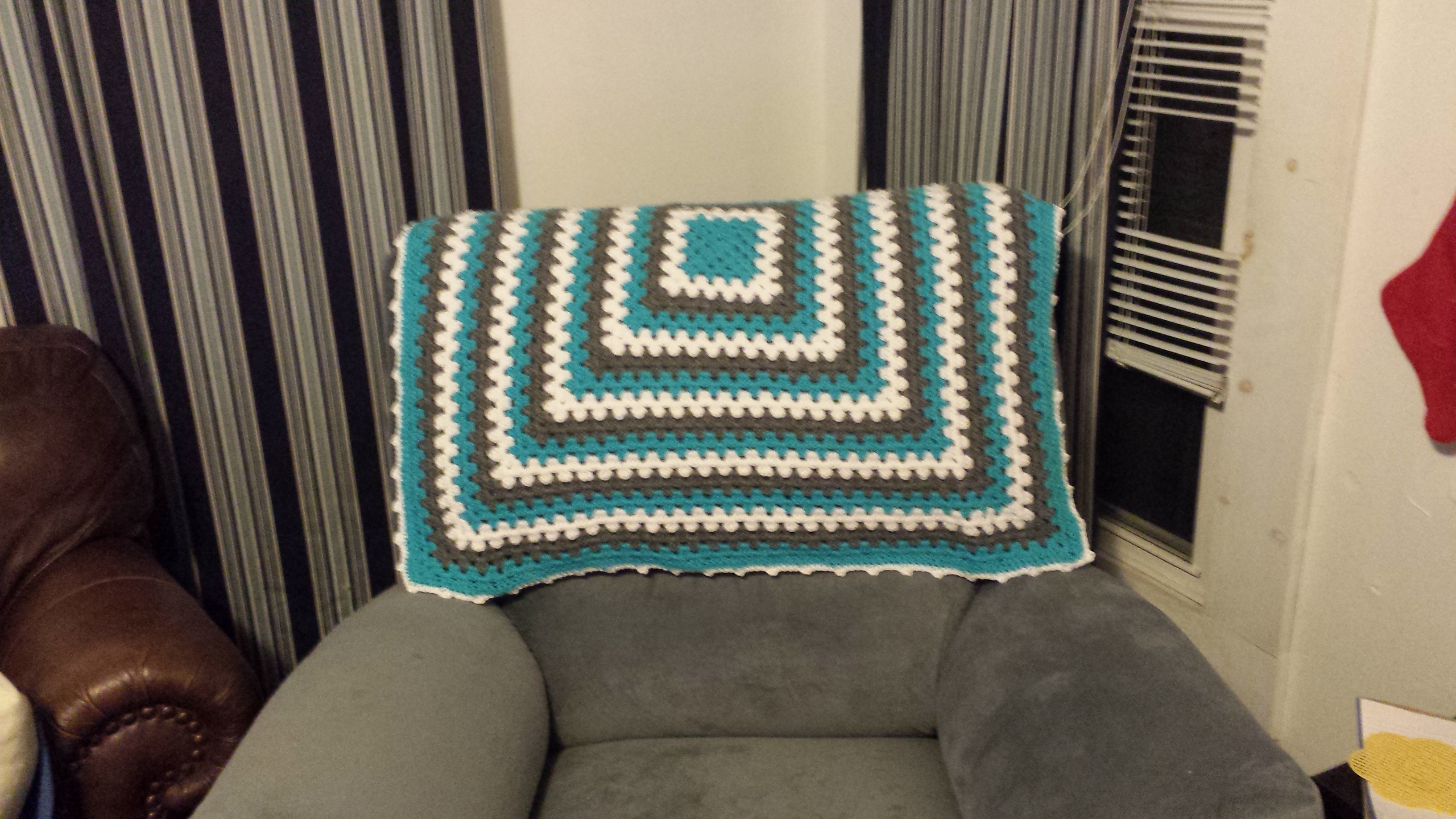 • My completed blanket :) Number 2 is in the books! Now I need to get more yarn and make things for my coworkers who are all due before me:)