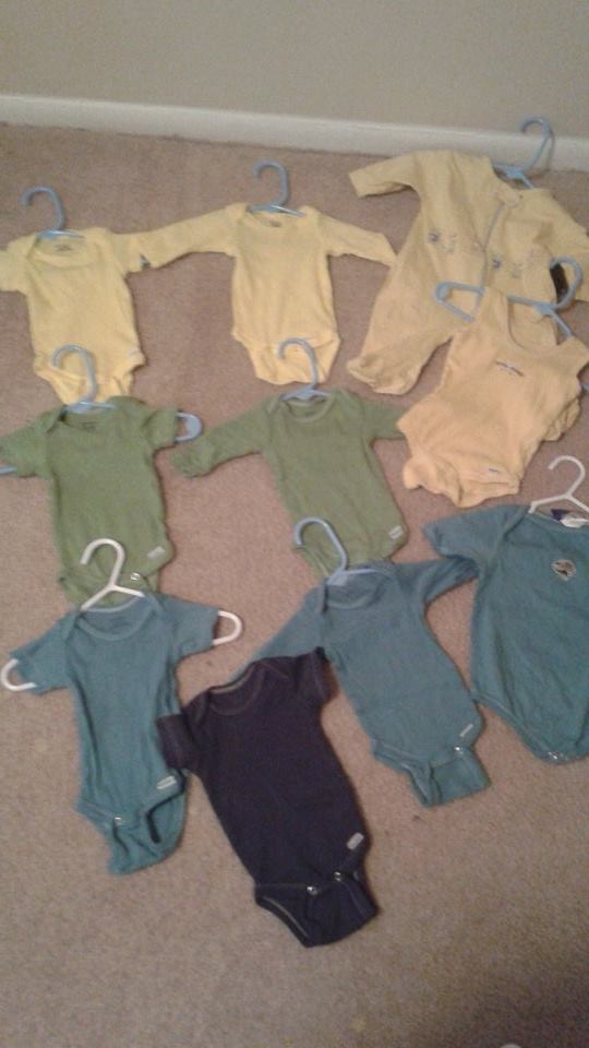 For the more artsy stuff I made a cloud mobile last time because hubby studies clouds/lightening it's super cute but I put it on a tapestry circle and it kinda bugs me, so I'm switching it to a manzanita branch to hang over the change area. Where baby girl and my son will be sharing a giant nursery I'll duplicate some art I created for him in her space - he has a 2' "O" yarn letter I made out of cardboard and yarn. Once we settle on a name I'll make one (or possibly two just in case we change our minds. I'll post a pic when I'm done.