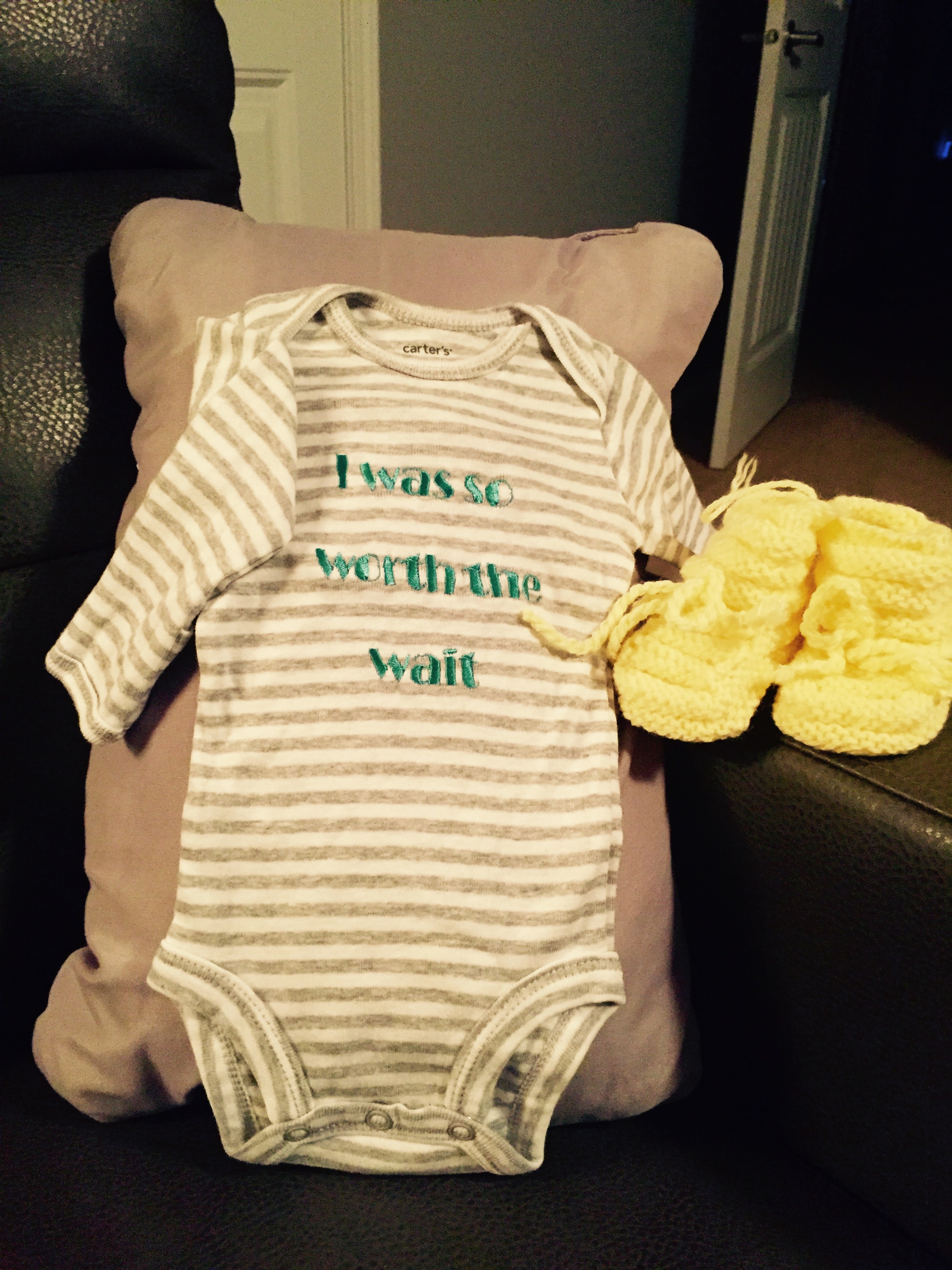 I got a onsie from Zulily that says "Worth The Wait".