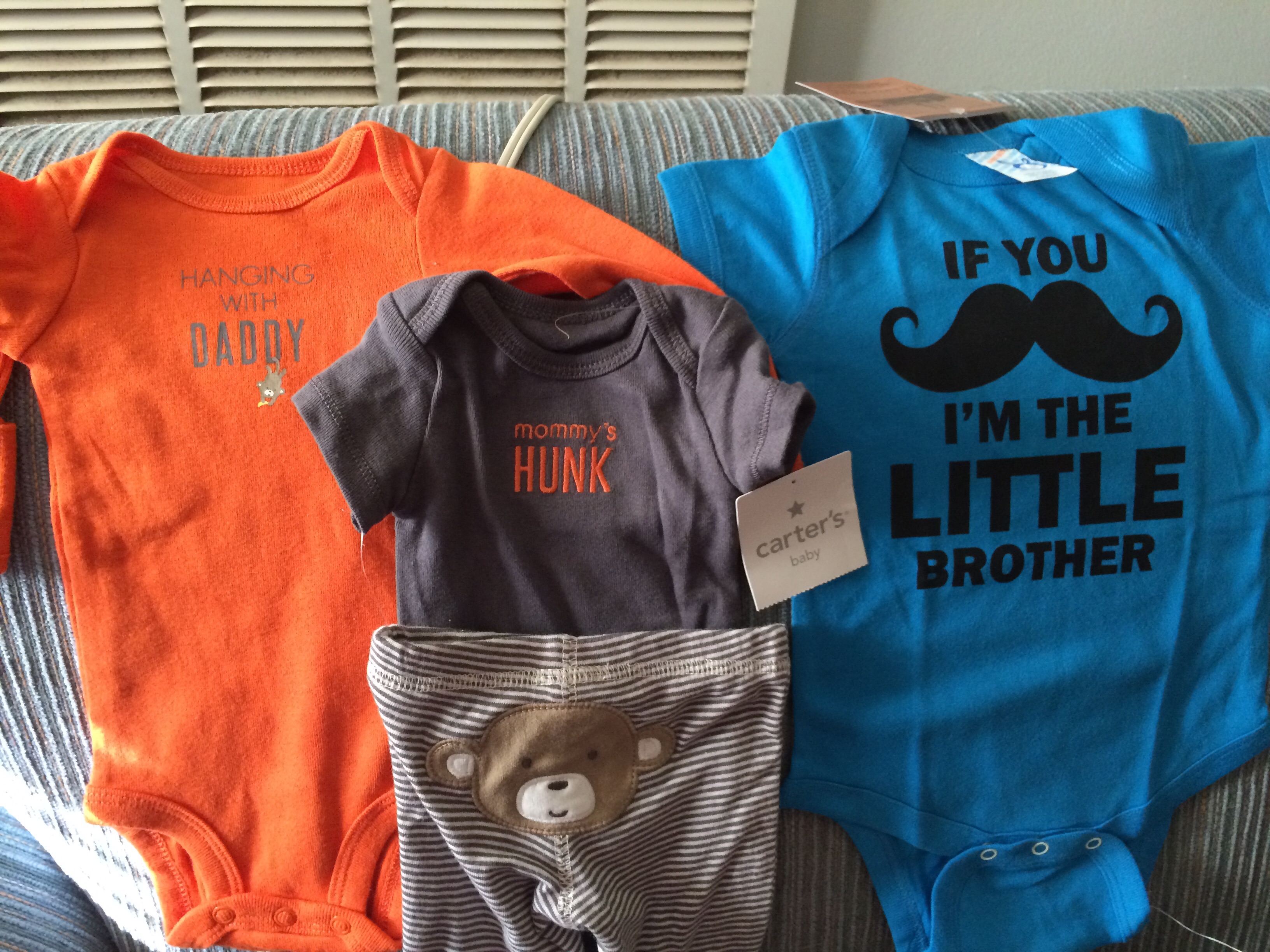 We haven't purchased anything specifically for the new baby yet. We've upgraded car seats for our 4 year old and 2 year old, and my husband is working on building a bunk bed set for them. My mom bought a Sophie giraffe teething ring for the new baby already since both of its siblings had one. This is our third child, so we have most things and are waiting until we find out the gender in a few weeks to see what clothes and other items we may need.