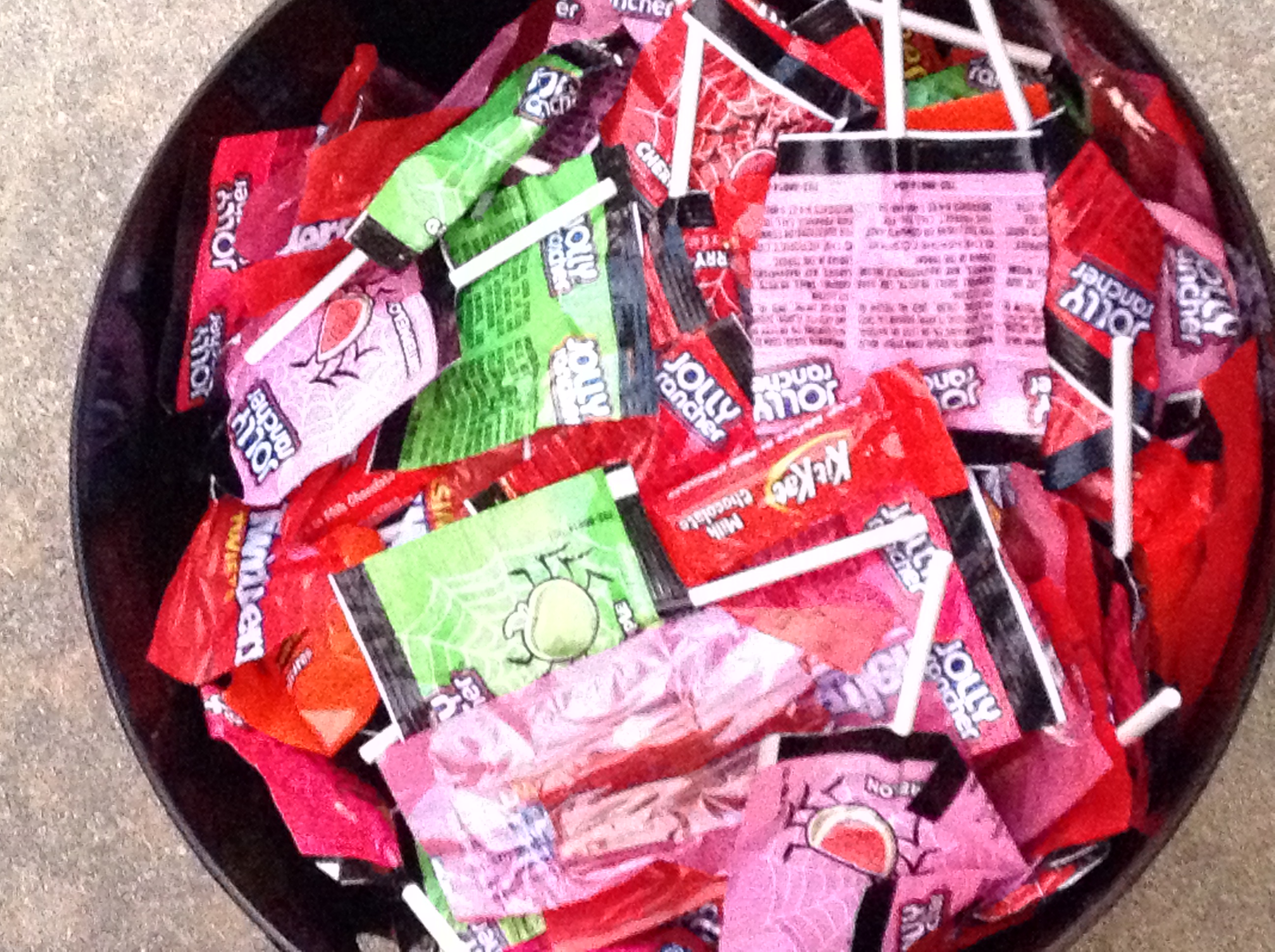 We didn't hand out anything. We purposely buy it last minute because I will eat it if it's in the house, but the 2 stores I went to yesterday were sold out, and I didn't have time to check any of the other stores near us. I'm kinda sad about not having any leftover chocolate...