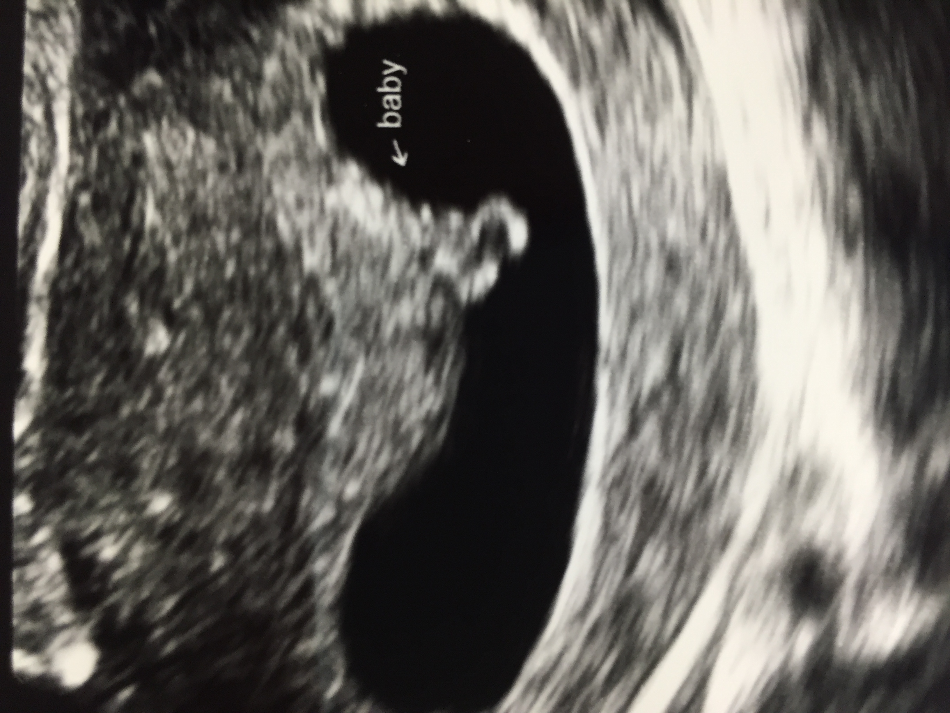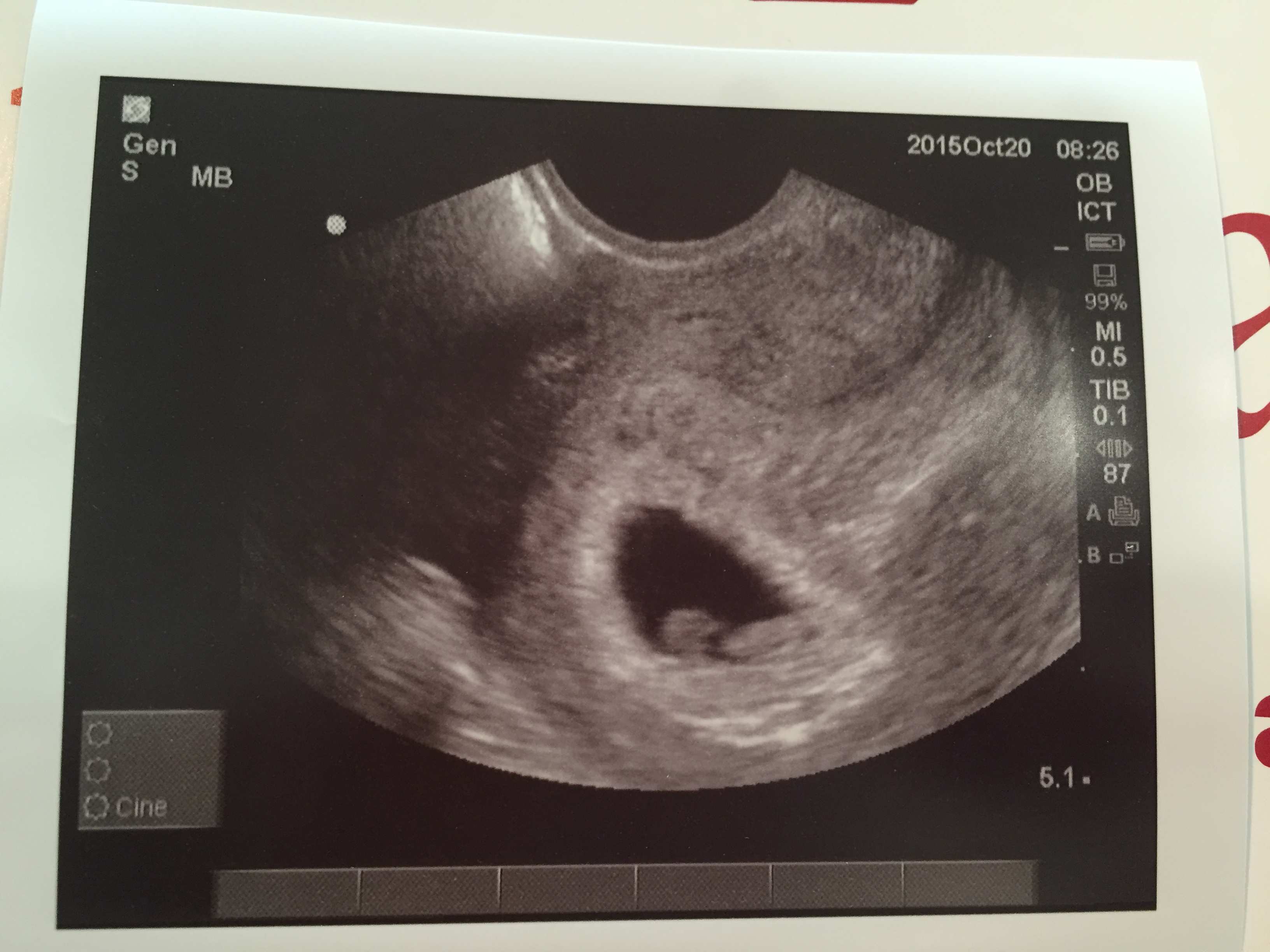I had some bleeding over the weekend and an abrupt end to ms. Because of a previous miscarriage, my Dr decided to do a whole bunch of blood tests and ordered an us too. I'm not complaining!!! I went into the appointment knowing it could go either way and was preparing myself to see an empty uterus. The tech immediately found baby and we got to watch it flutter around with its stubby little arms and legs. Strong heartbeat and everything is looking good. Of course I cried for joy. :x