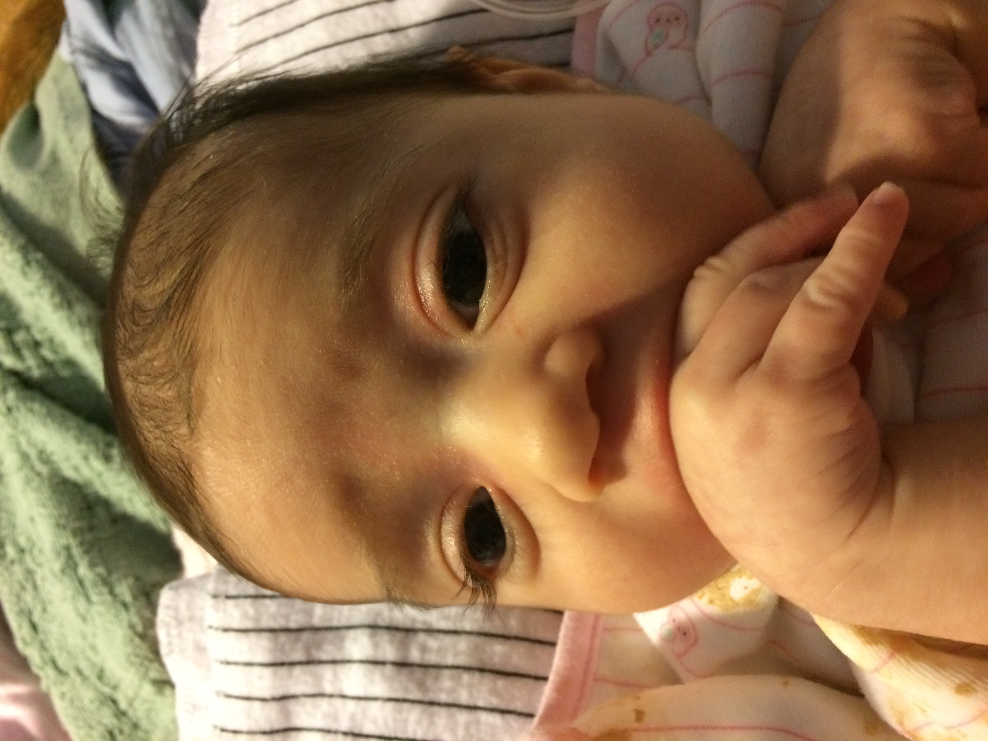 So my lo, 8 weeks, just started sucking on her hands... I guess it will progress to thumb sucking but it's so weird. I know she's not possibly hungry right now. Just wants to suck but it makes the cues so confusing other times. Anyway. It's so awkward. She looks like she's making out with her hands. Too funny. Anyone else go through this phase yet?