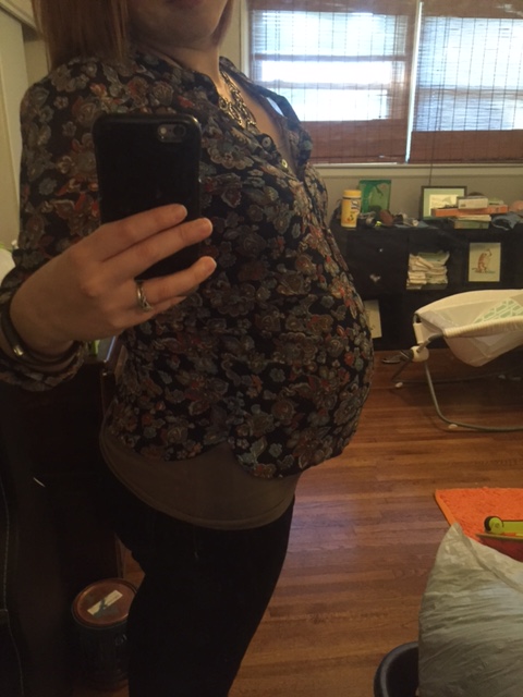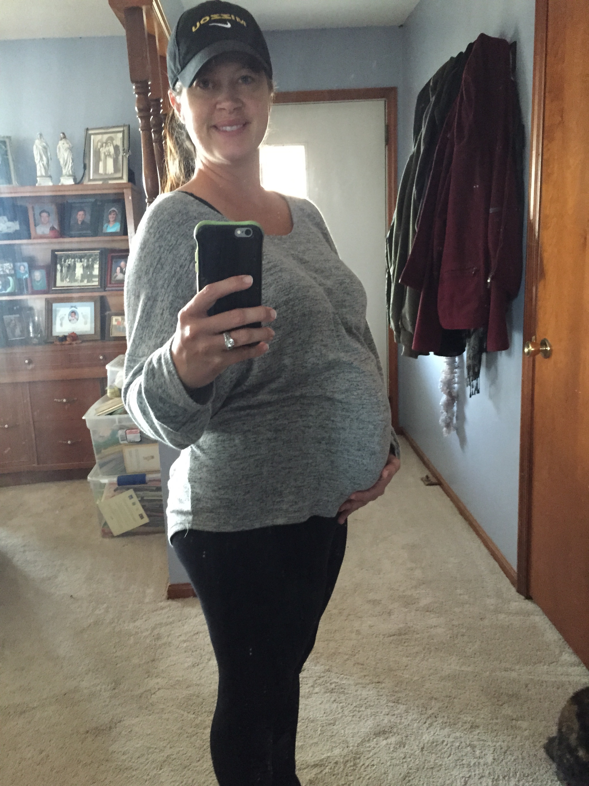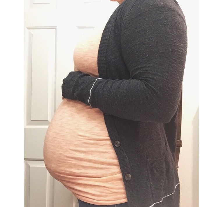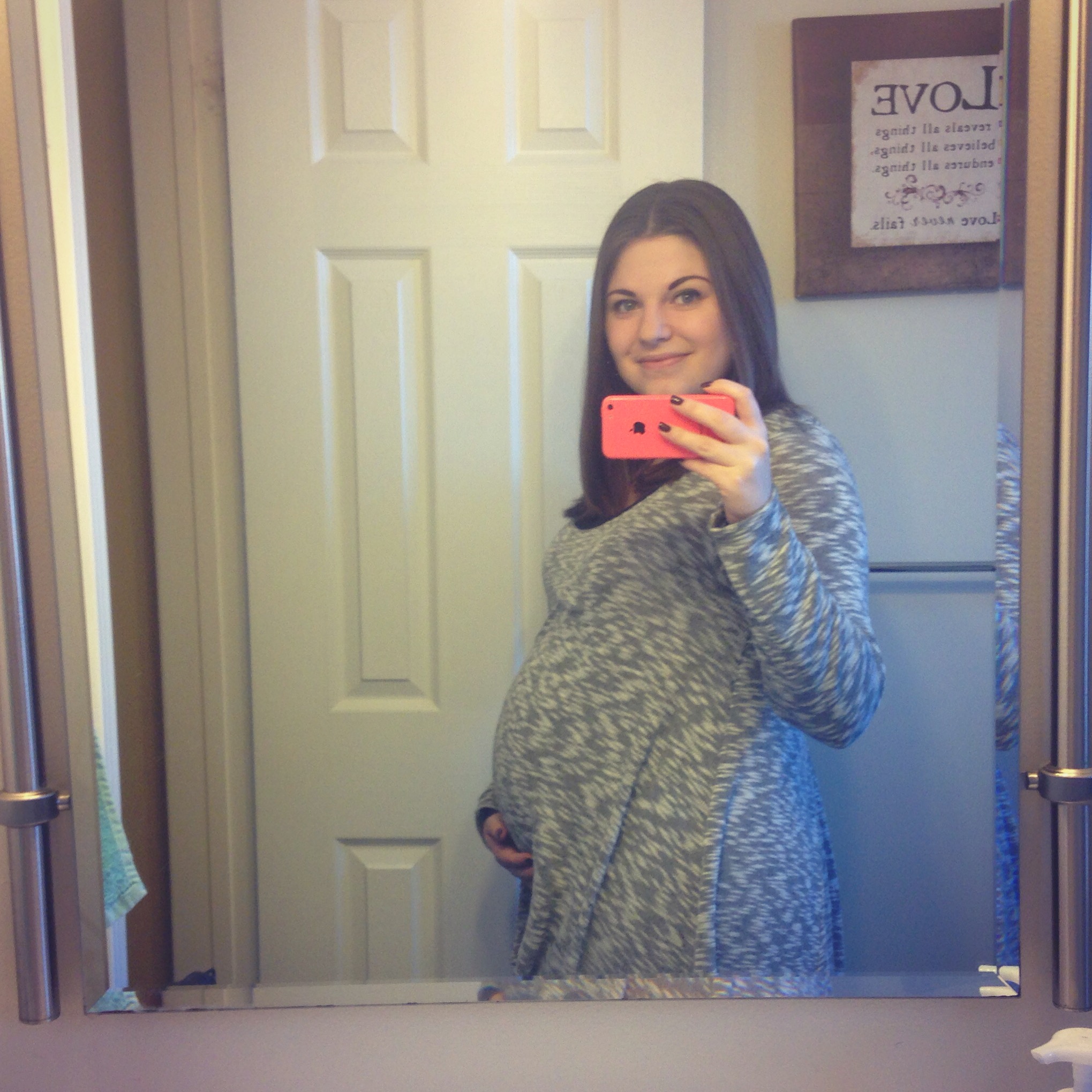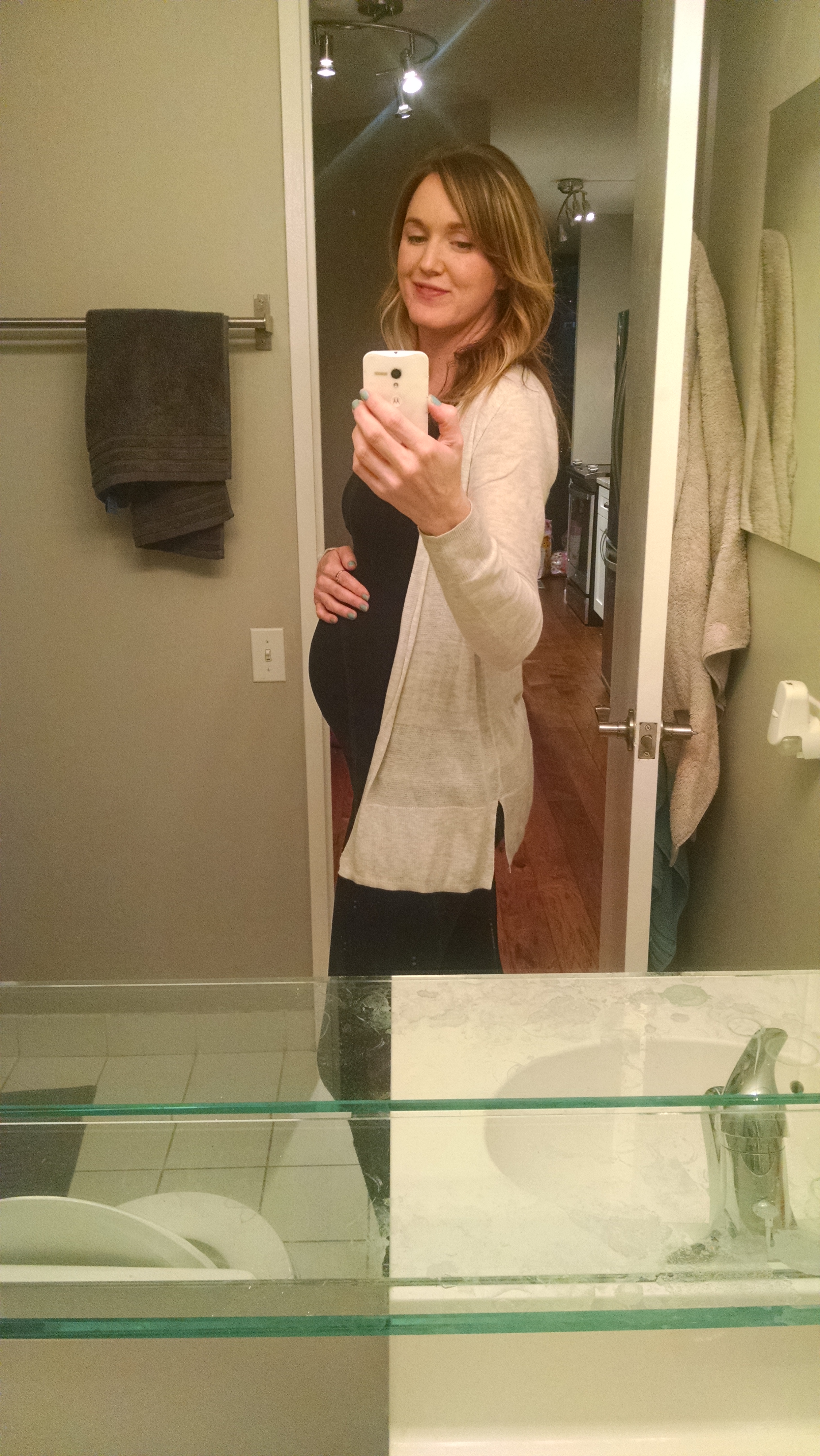31+4 I was trying on cardigans for maternity pics... didn't buy it. Lol, didn't buy any. But I did notice that I wear this same shirt for nearly every picture. Whoops.