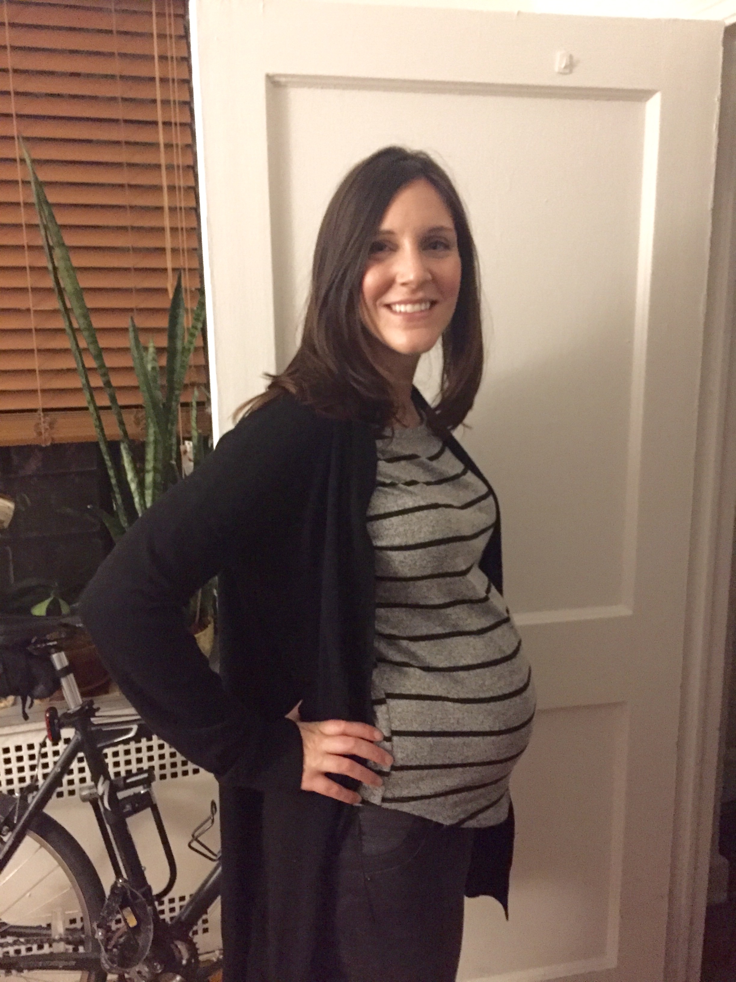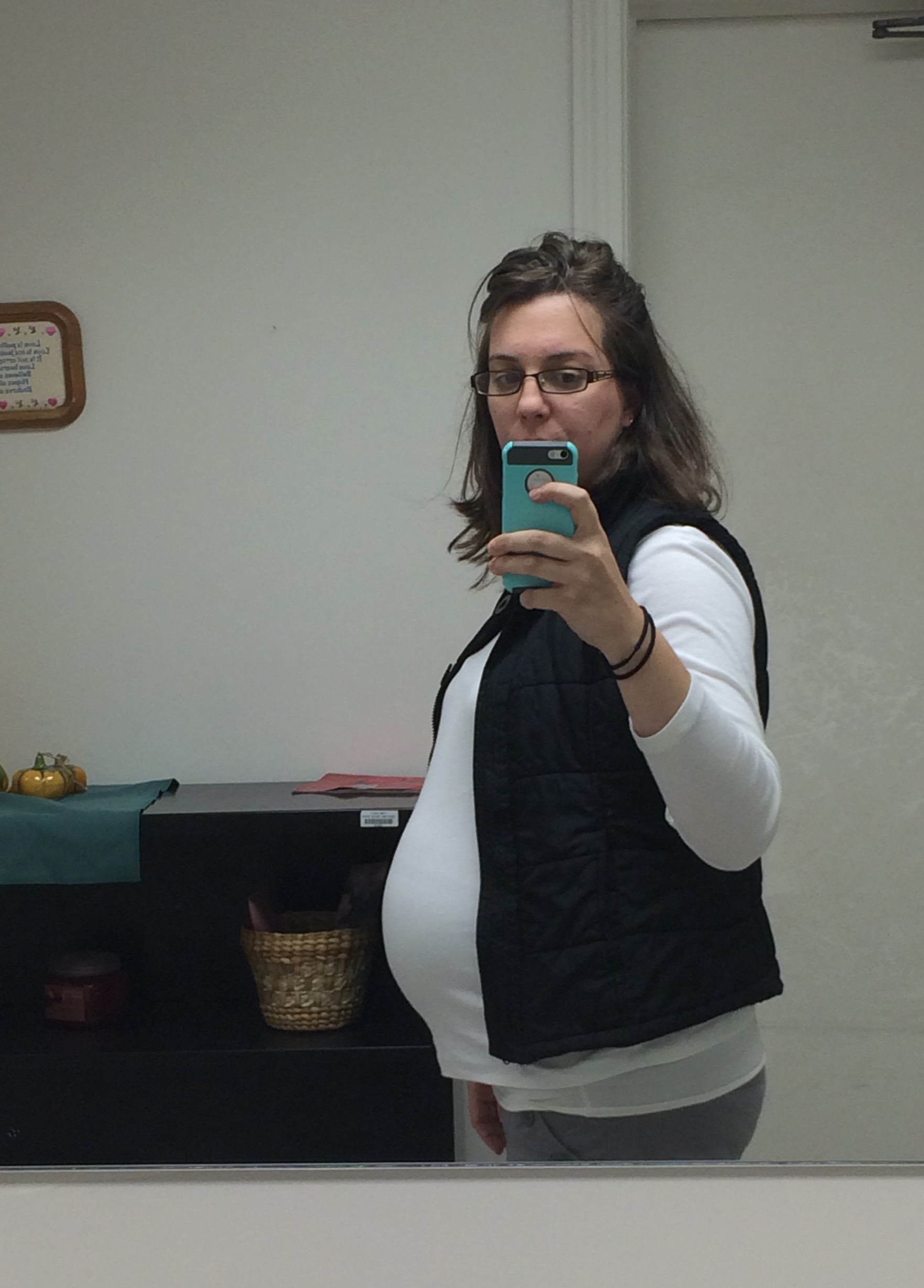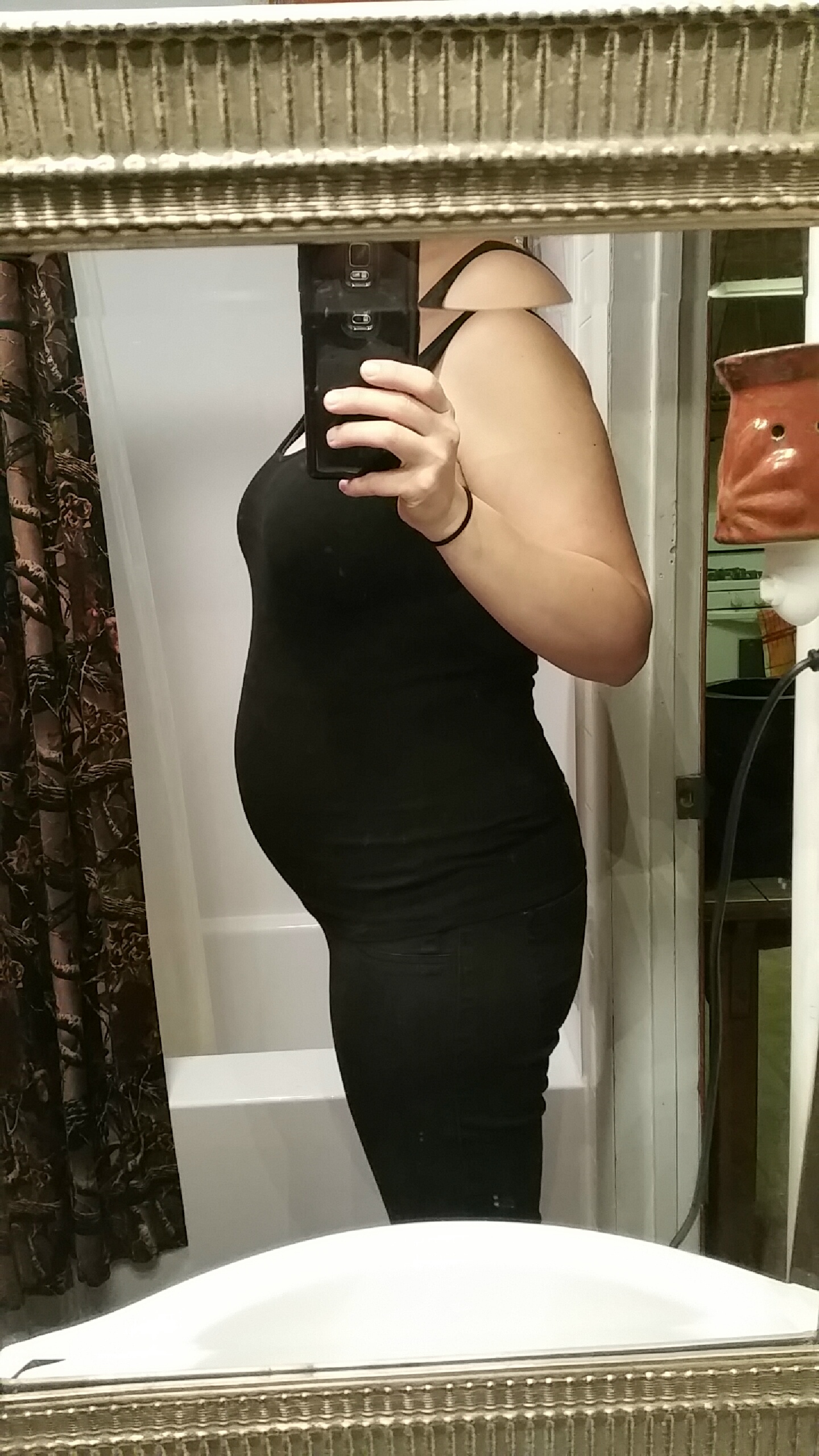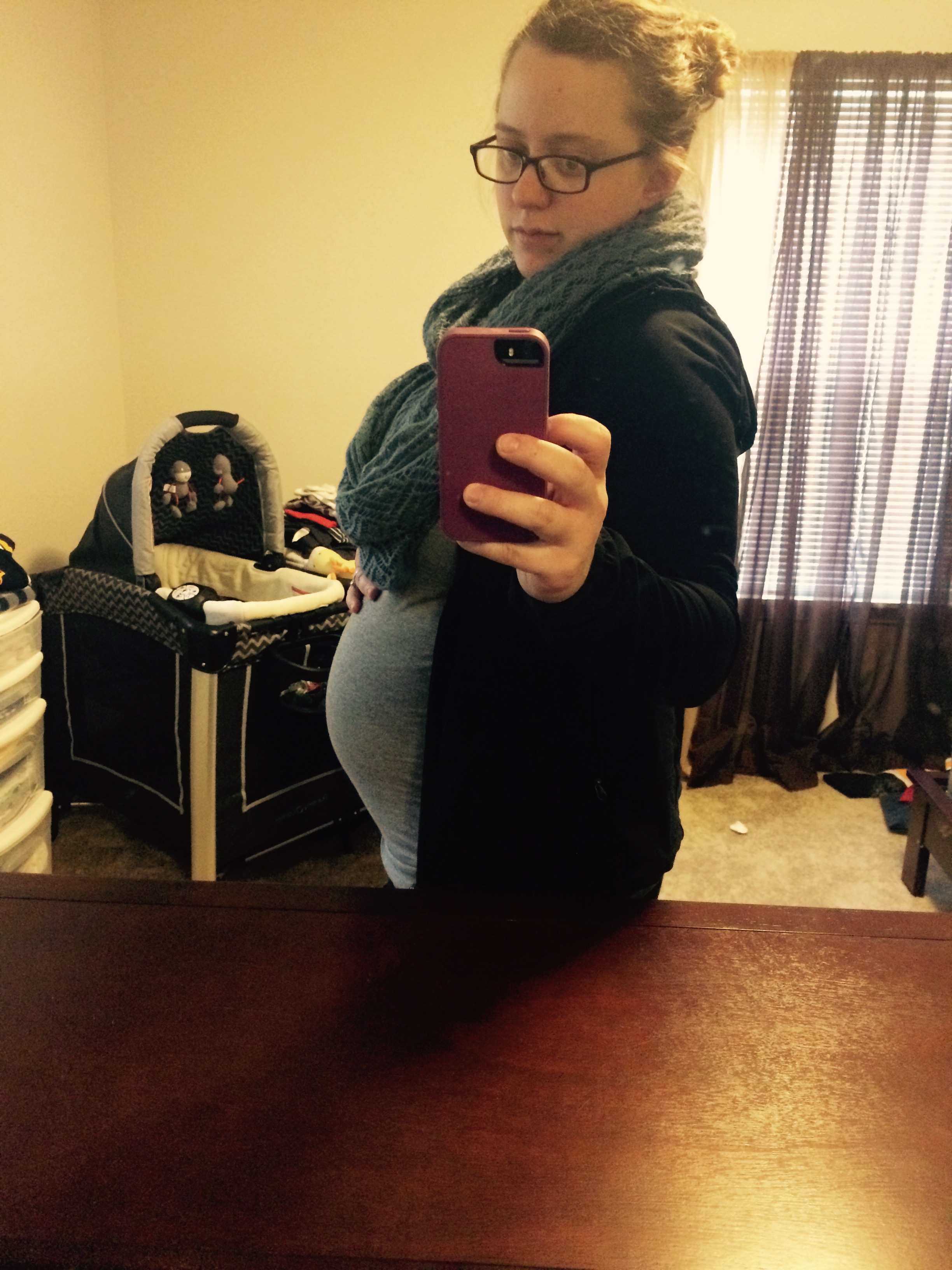 31+4 I was trying on cardigans for maternity pics... didn't buy it. Lol, didn't buy any. But I did notice that I wear this same shirt for nearly every picture. Whoops.