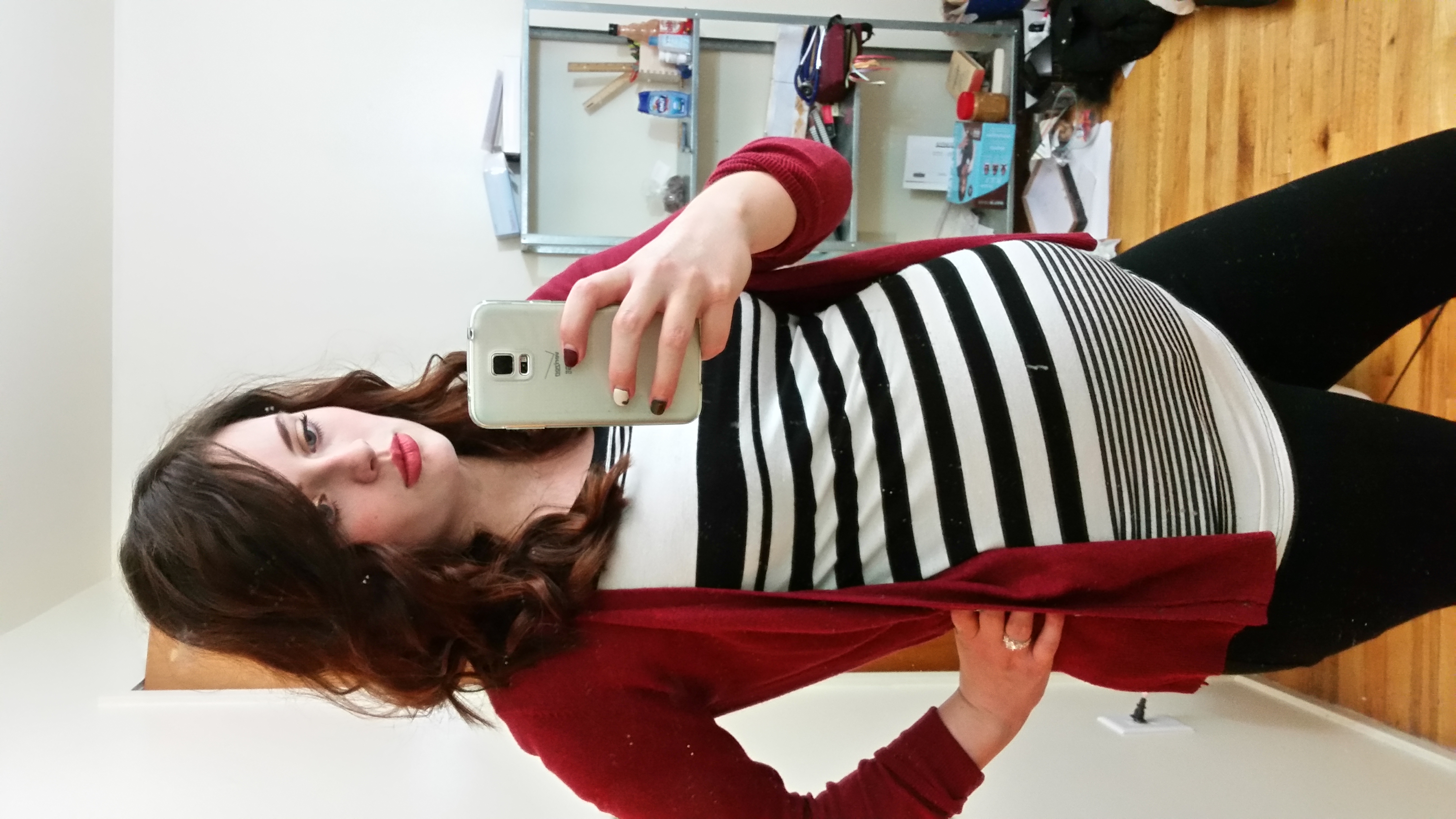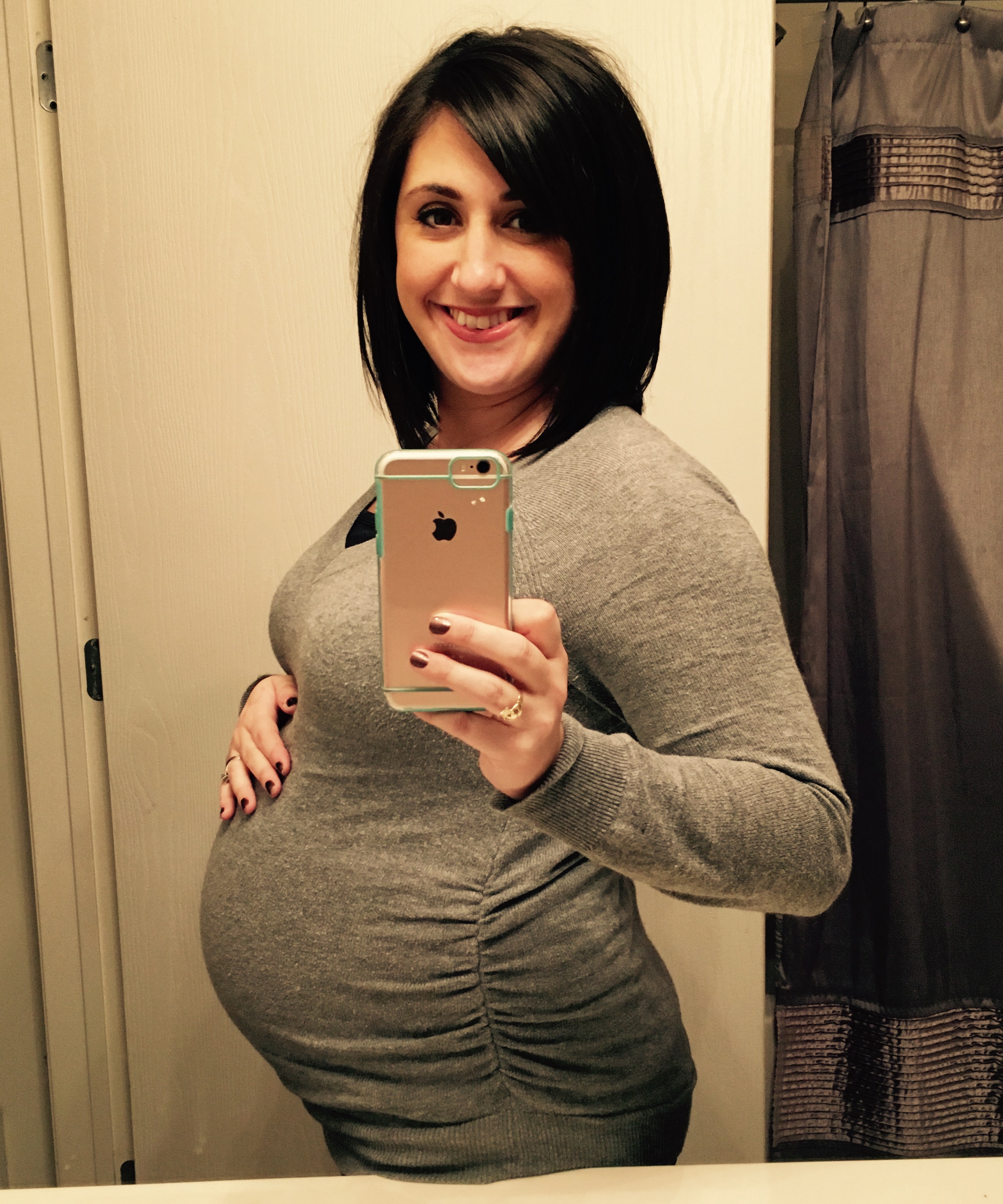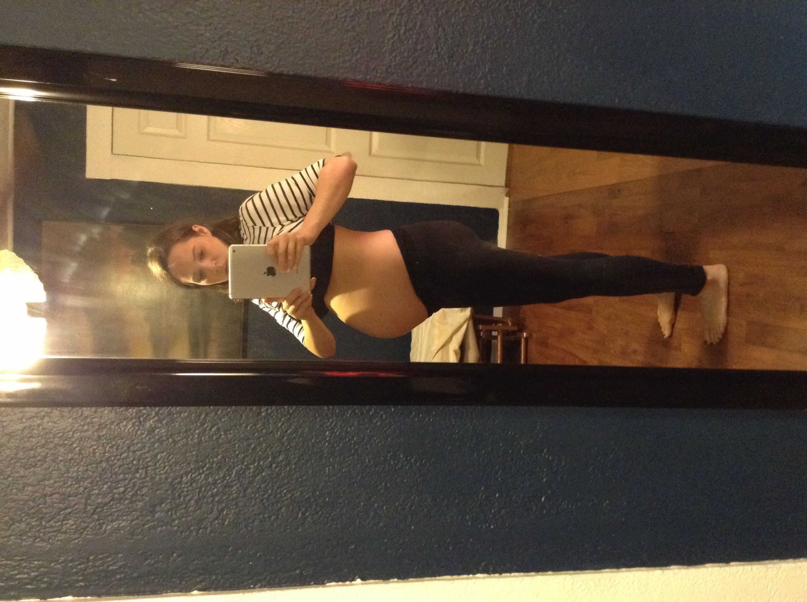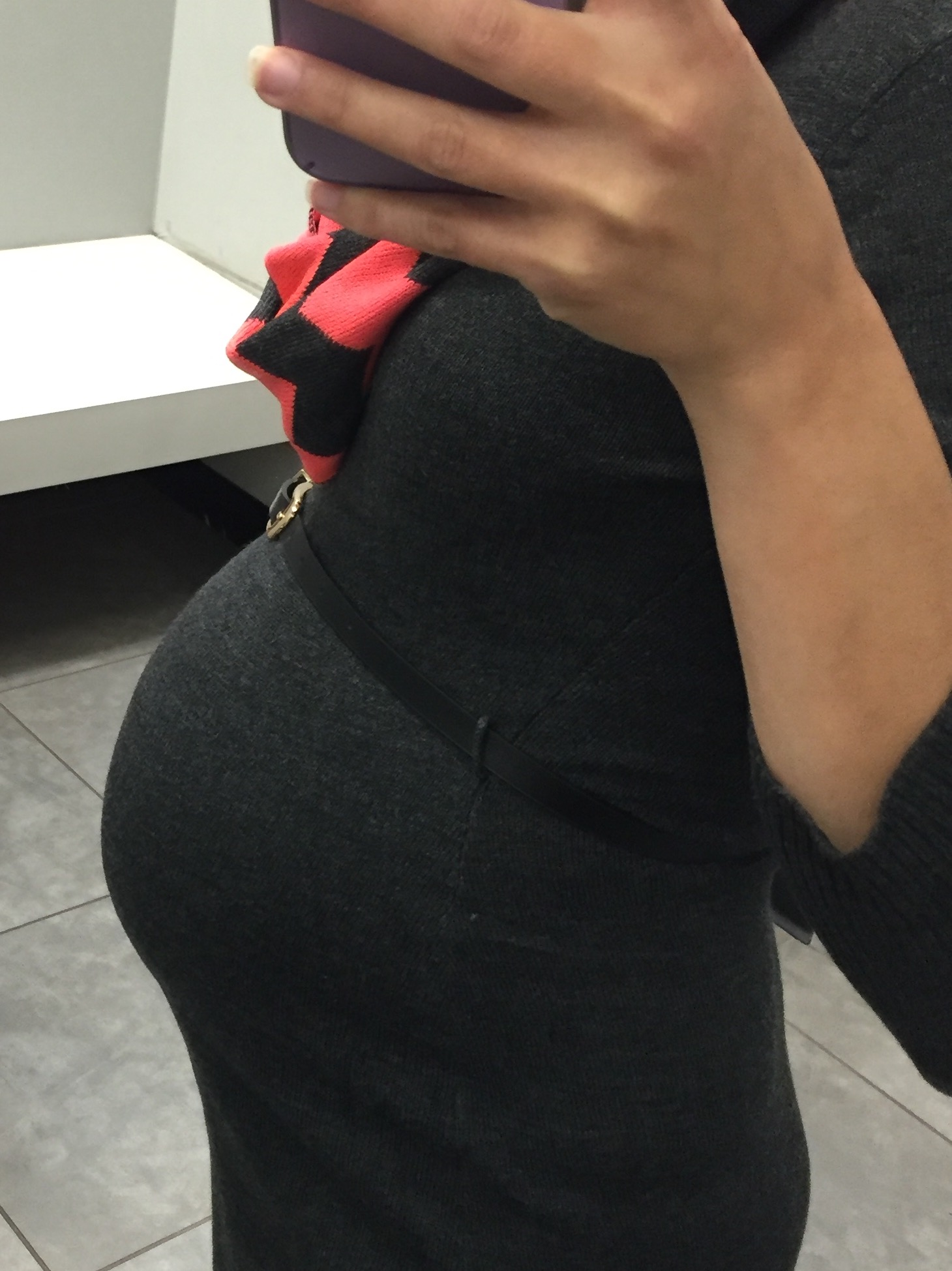 31+4 I was trying on cardigans for maternity pics... didn't buy it. Lol, didn't buy any. But I did notice that I wear this same shirt for nearly every picture. Whoops.