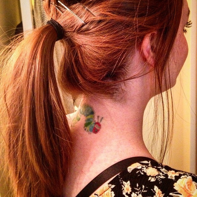 GTKY: What tattoos do you have OR would you get if you had to? I have The Very Hungry Caterpillar on the back of my neck and Neutral Milk Hotel's lyrics "Count Every Beautiful Thing" on my left forearm.
