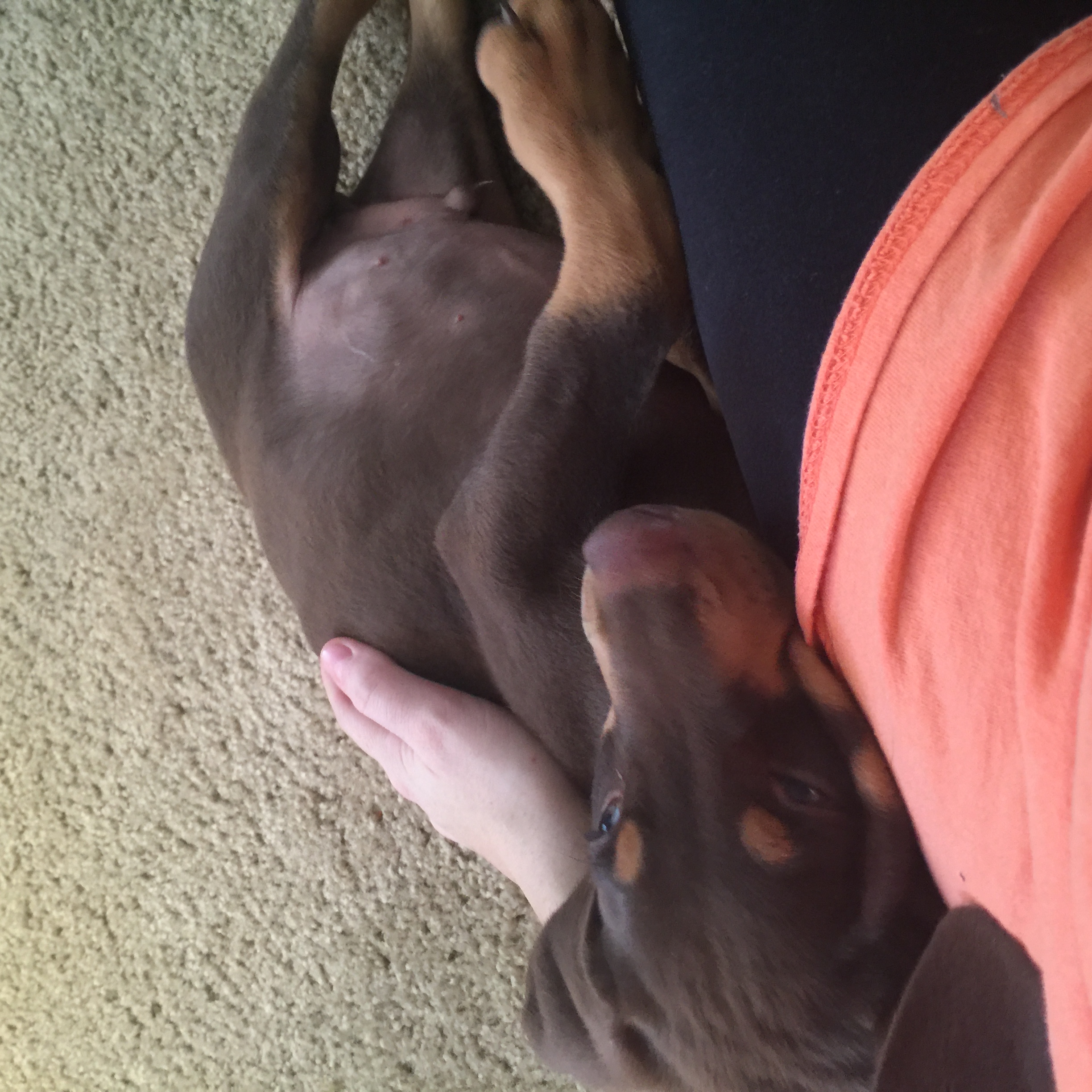 • @AmadorRose Charlie eats like crazy! He's just long and short and his belly sags to the ground lol! Our puppy will end up eating us out of the house I'm sure when he's bigger! He's a Doberman so he'll be a big boy!