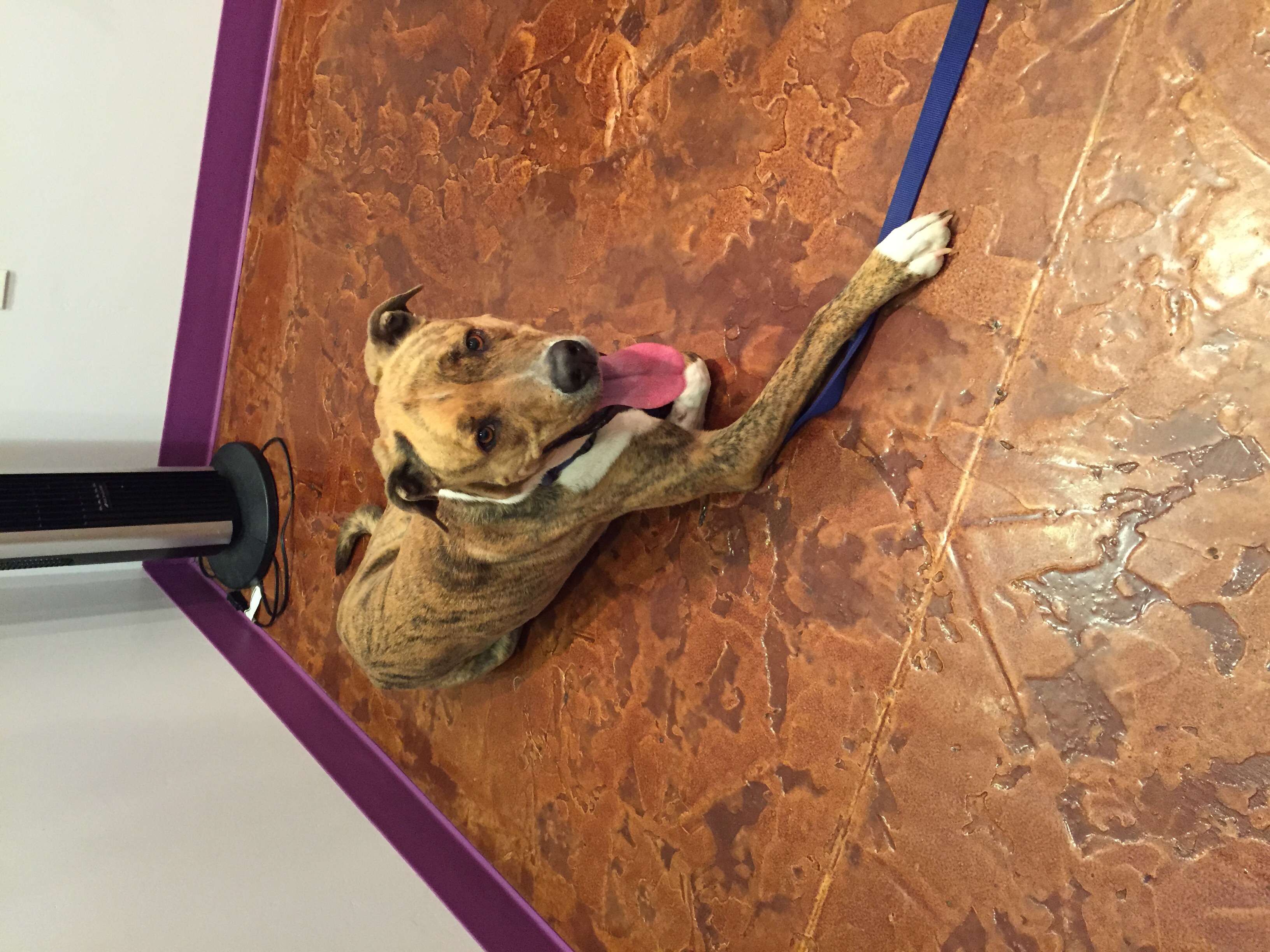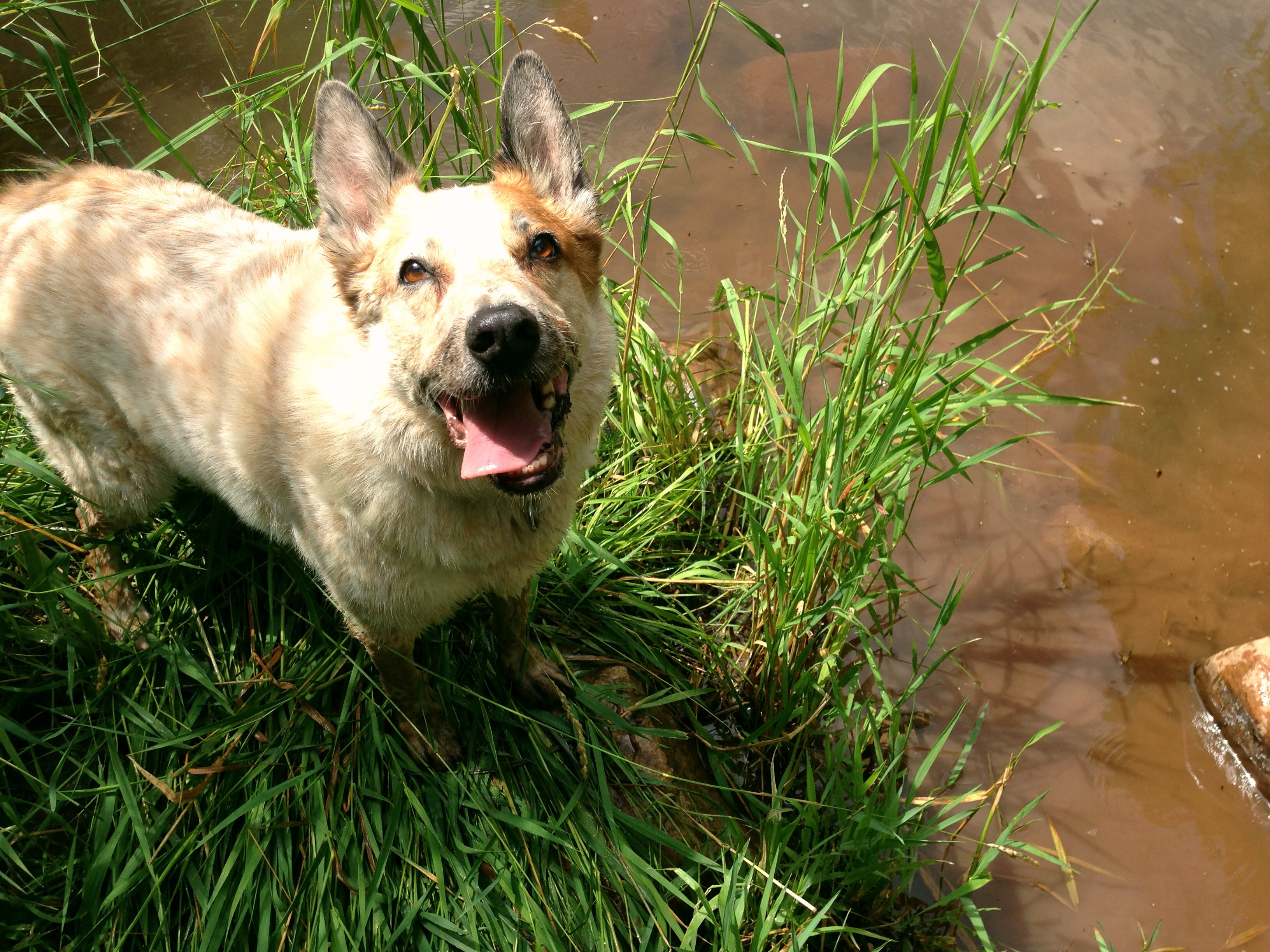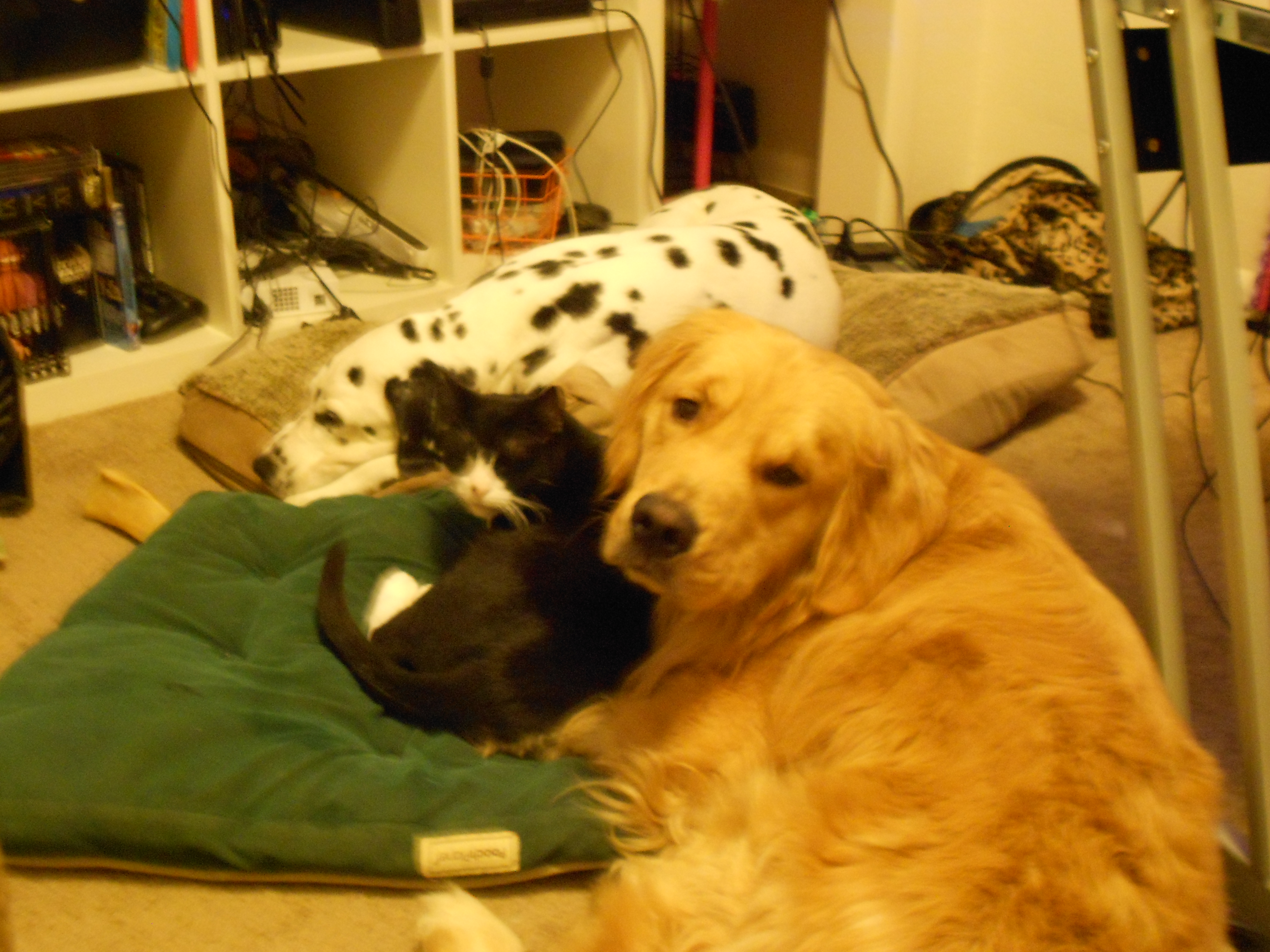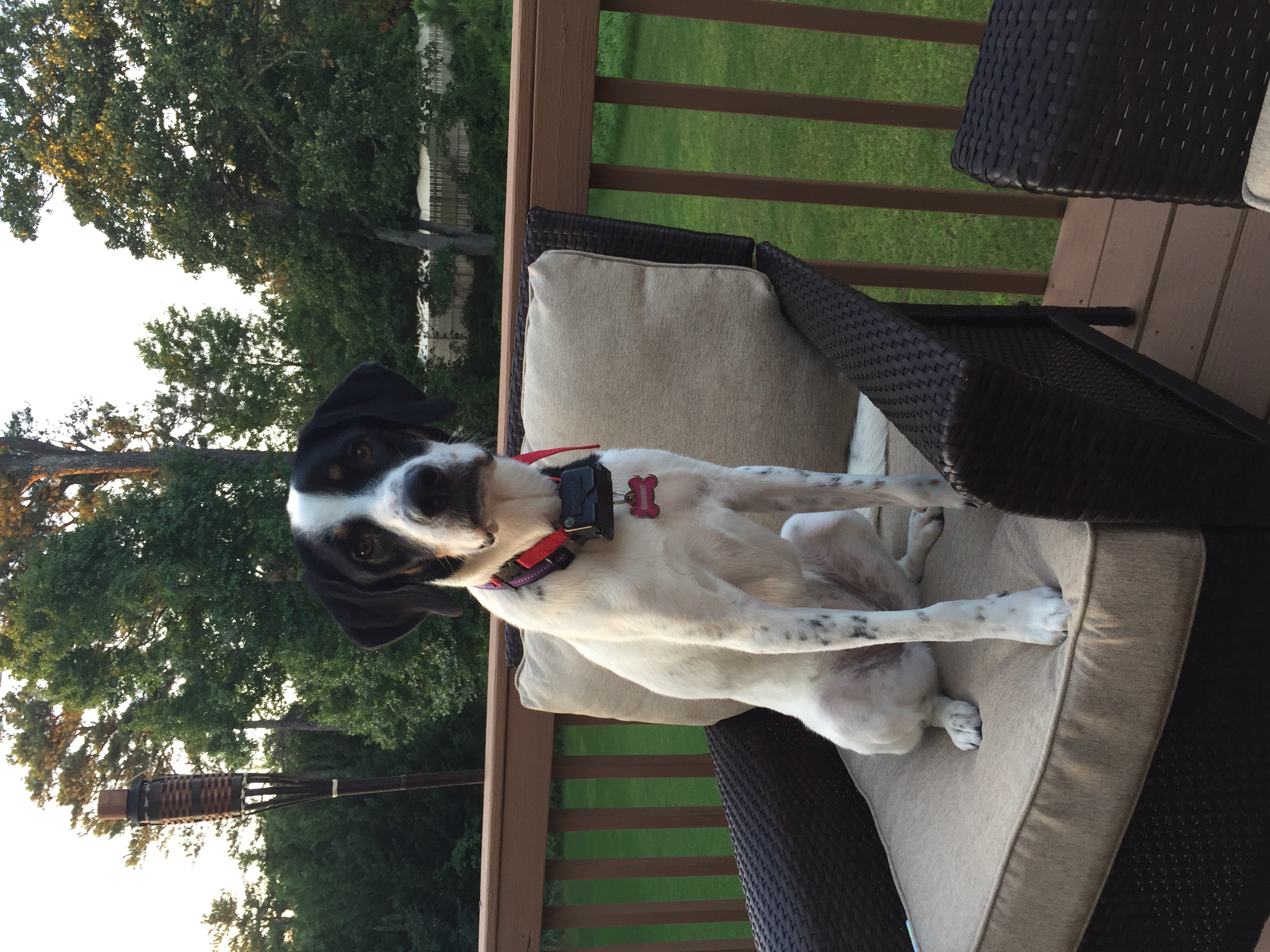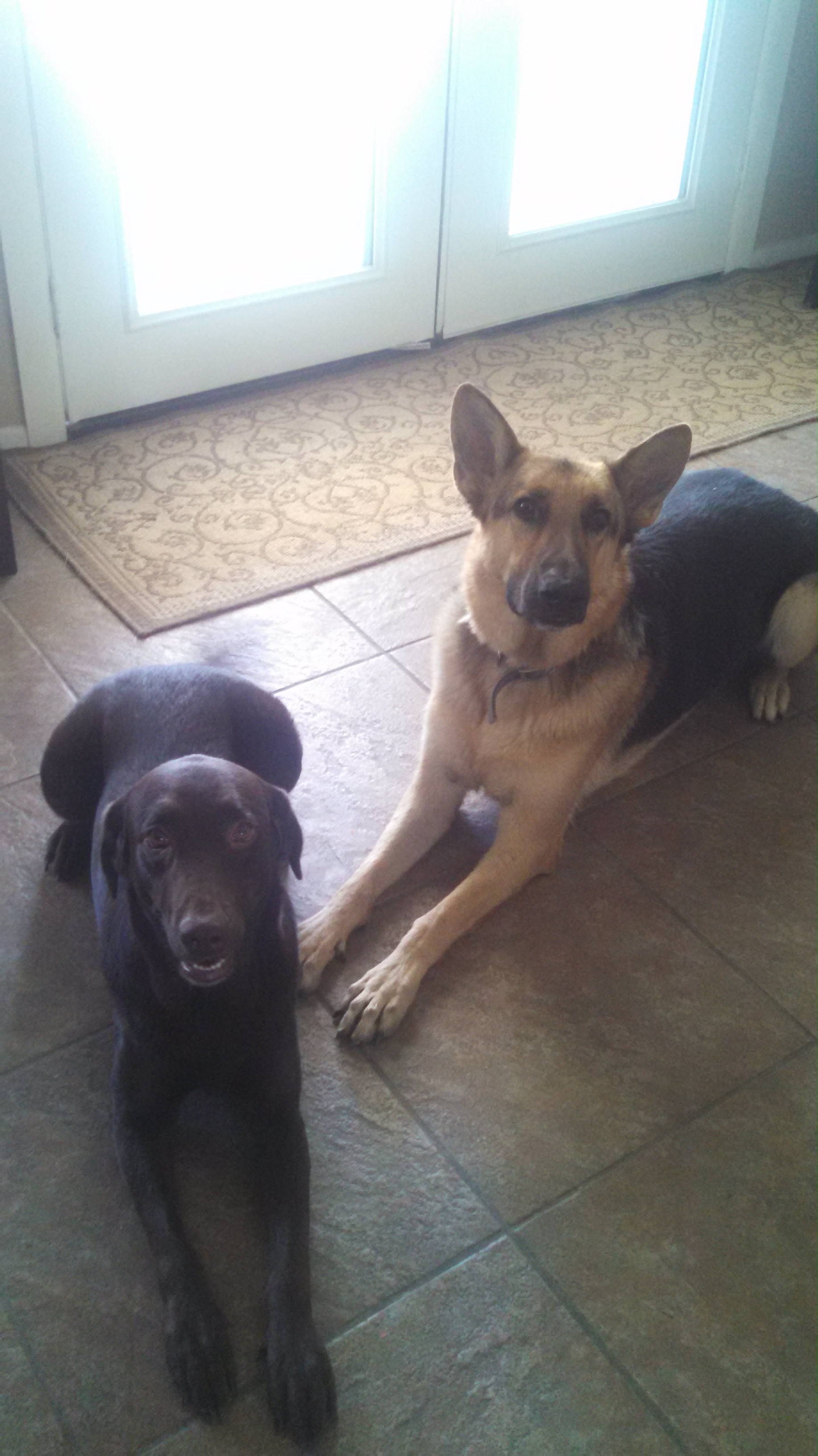 Athena is a 50 pound, 6-month-old lab/German shephard mix and the reason we moved out of our apartment. She's very sweet and playful but doesn't realize how much bigger she is than the cats when she wants to play.
