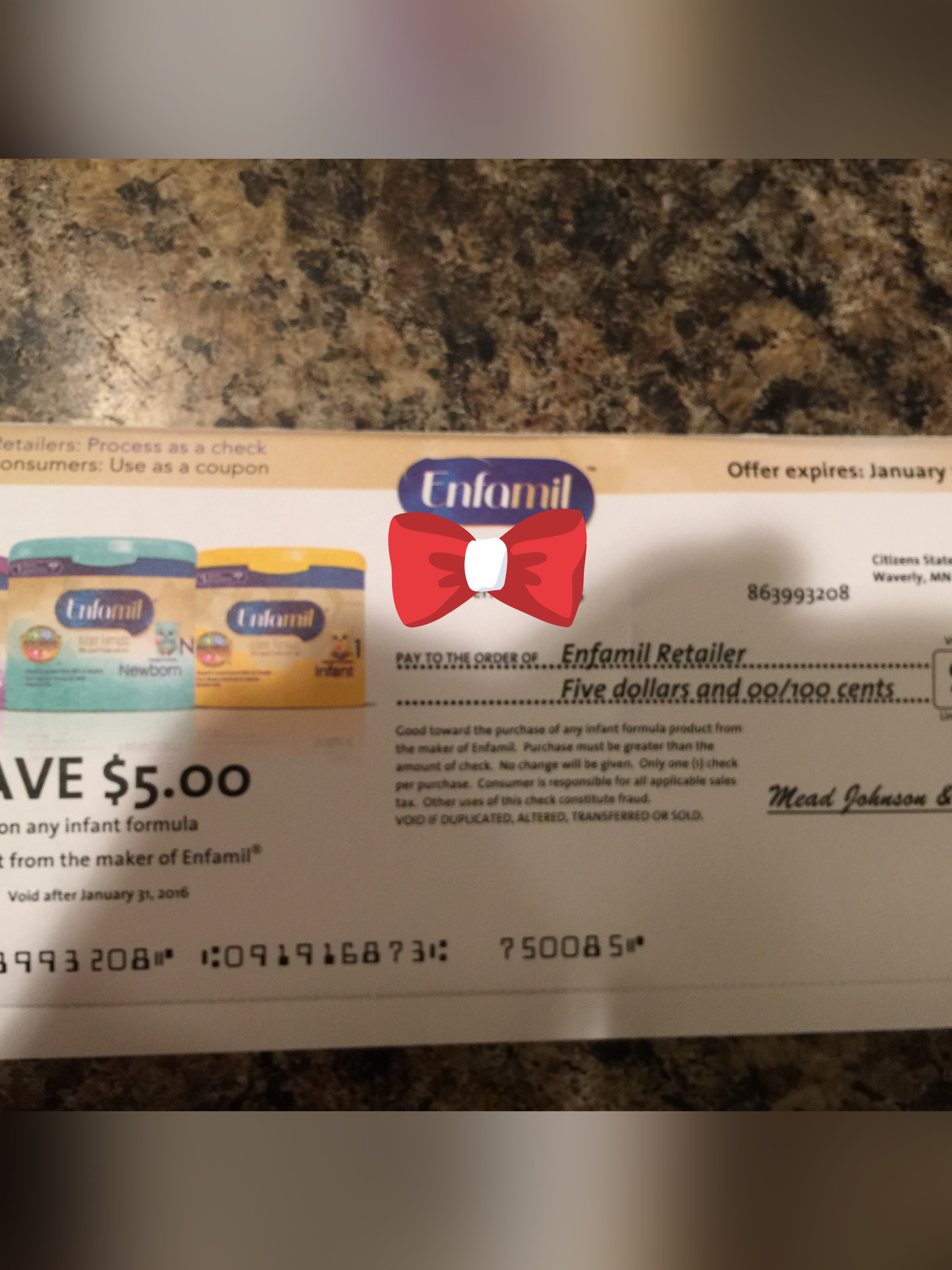 Re: Enfamil Coupon/Checks