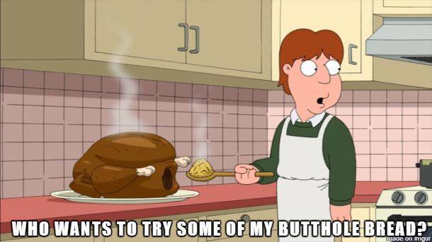 Oh, and I agree butt stuffing is gross and I think cranberry dressing looks like congealed blood in a can *ick*