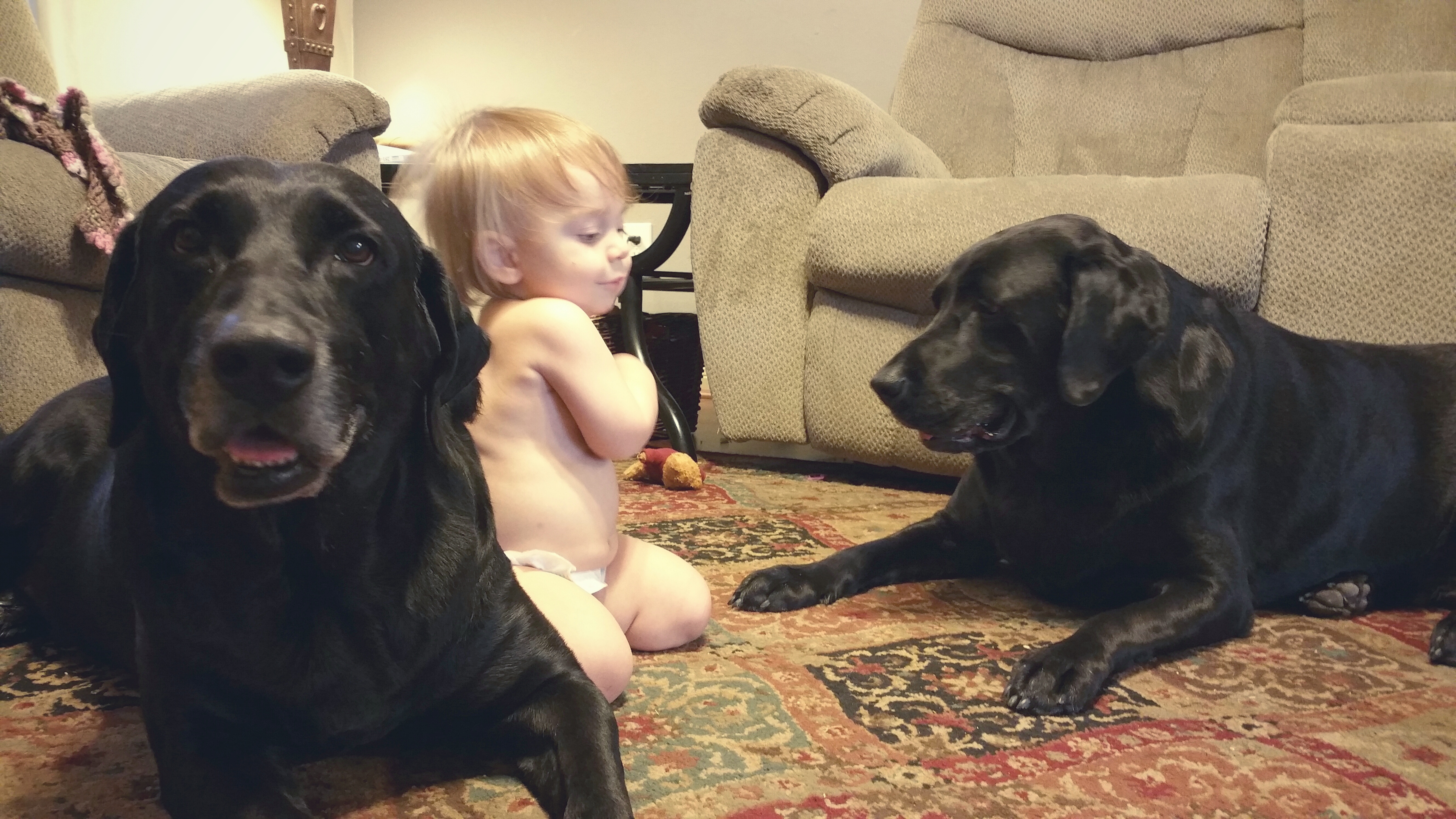 Love all the fur babies! Pepper is our 3 yr old dog we adopted. She is a lab mix. Then we have Sage who I'm convinced was a runt (but I love the runts!), and Ginger my sweetie. Sage and Ginger were adopted the same day but were from different litters. They are my original babies