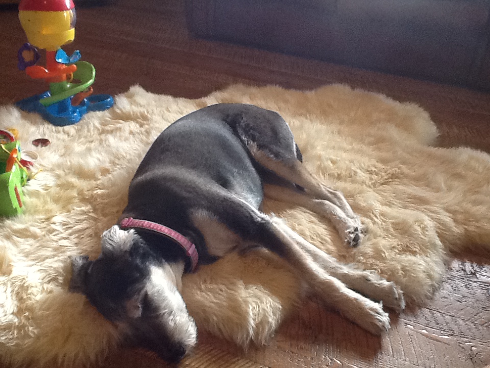 We have a (super) mini schnauzer, Stella.