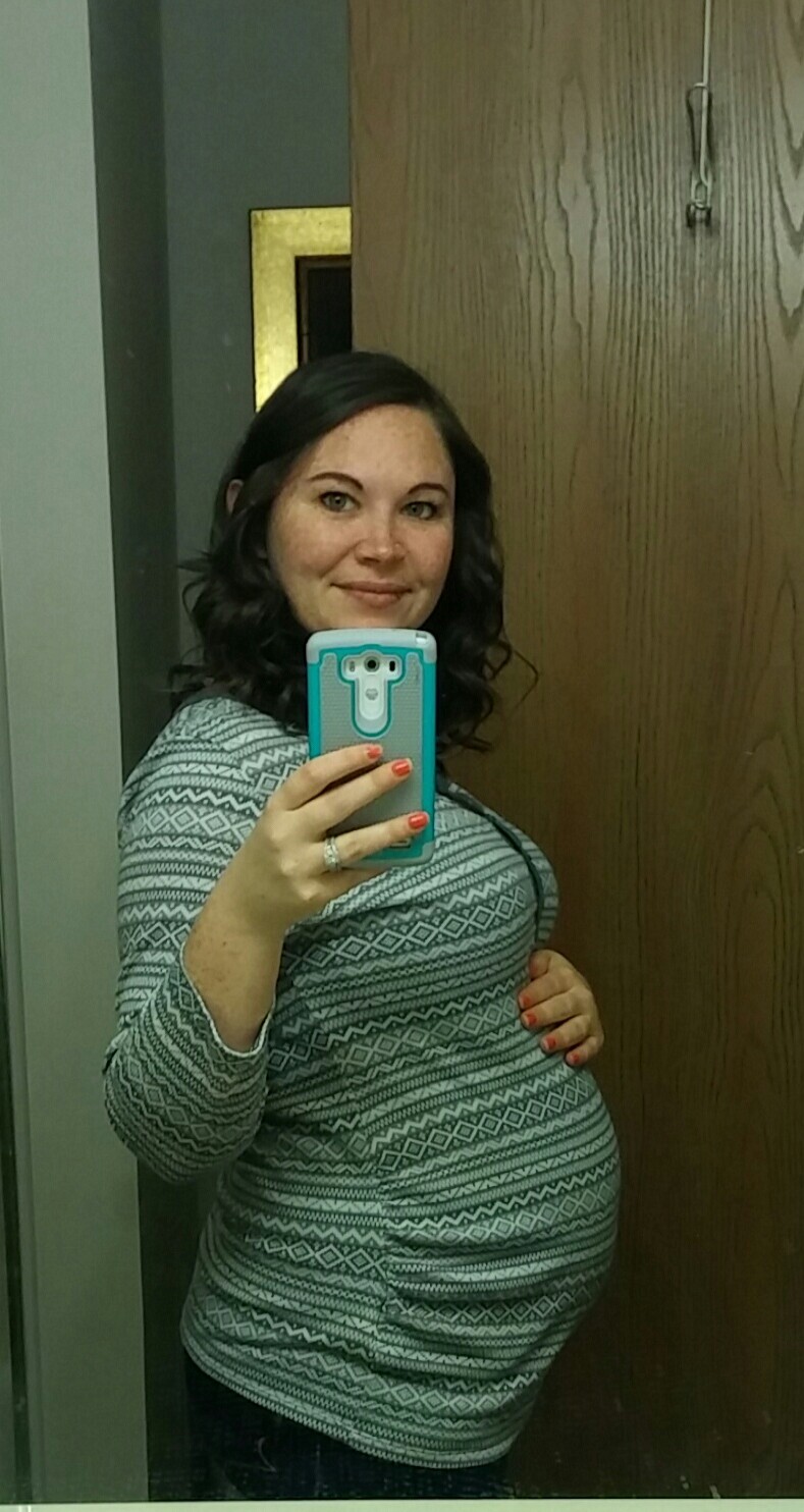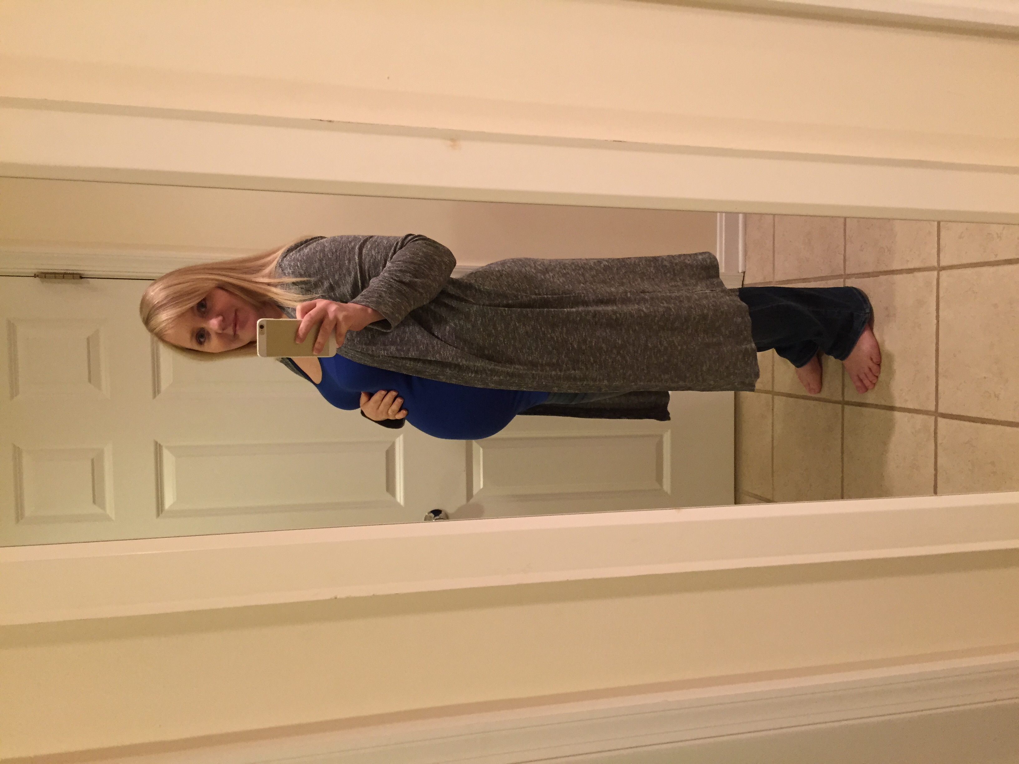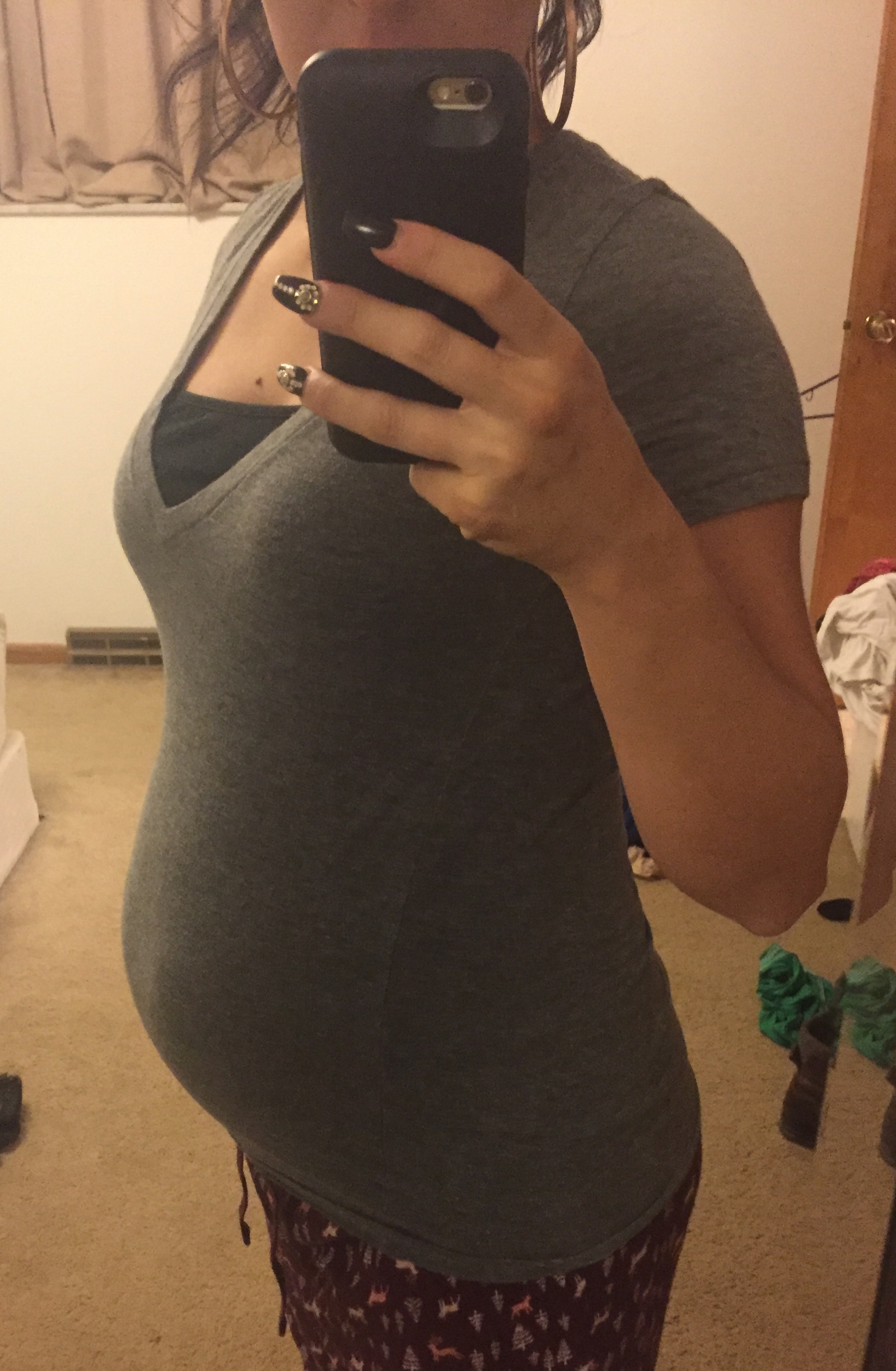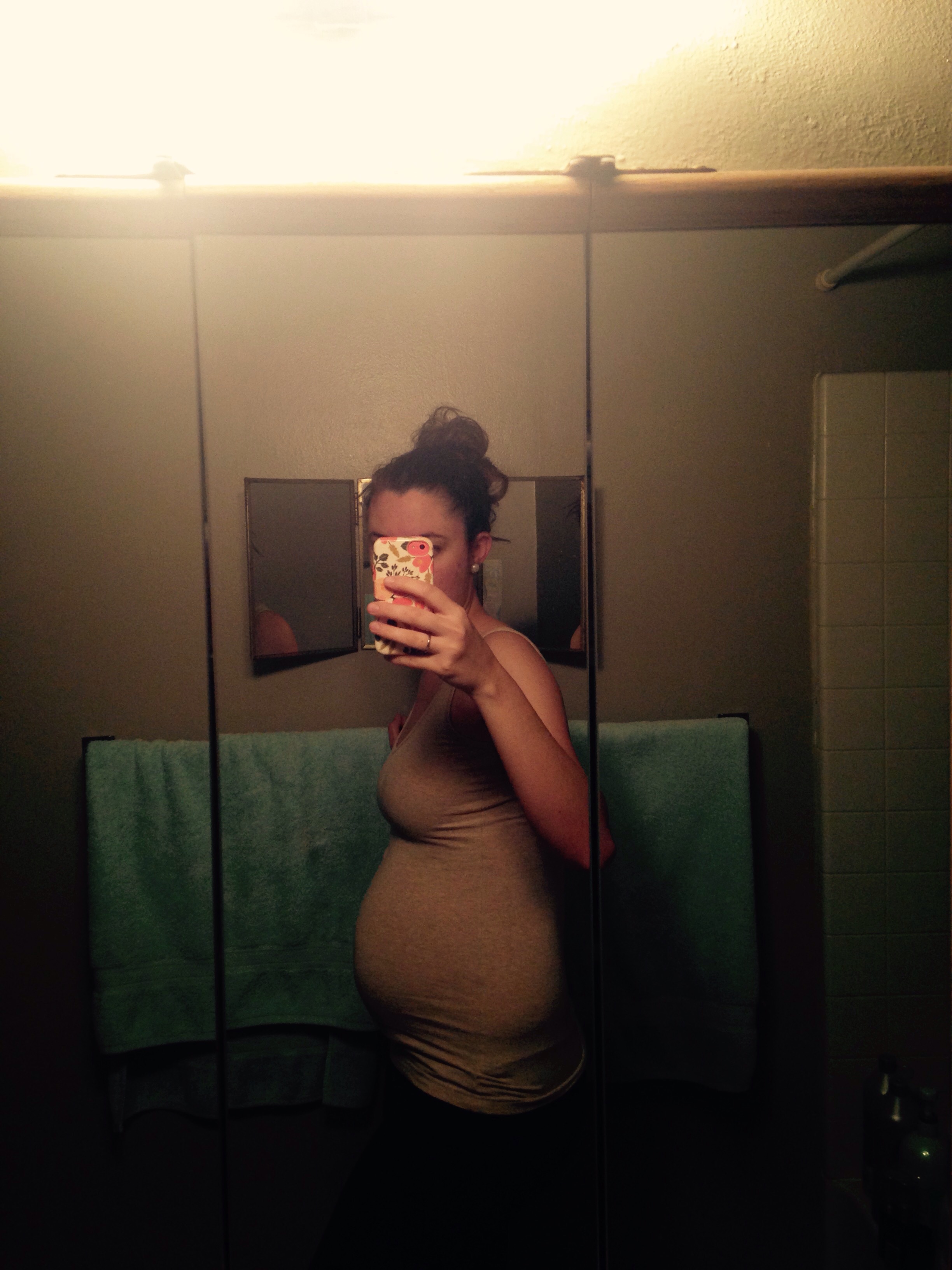 Couldn't find my sweater and a gray tank with gray walls wasn't the best choice to show off my bump! Baby's room is clearly in the process of painting.