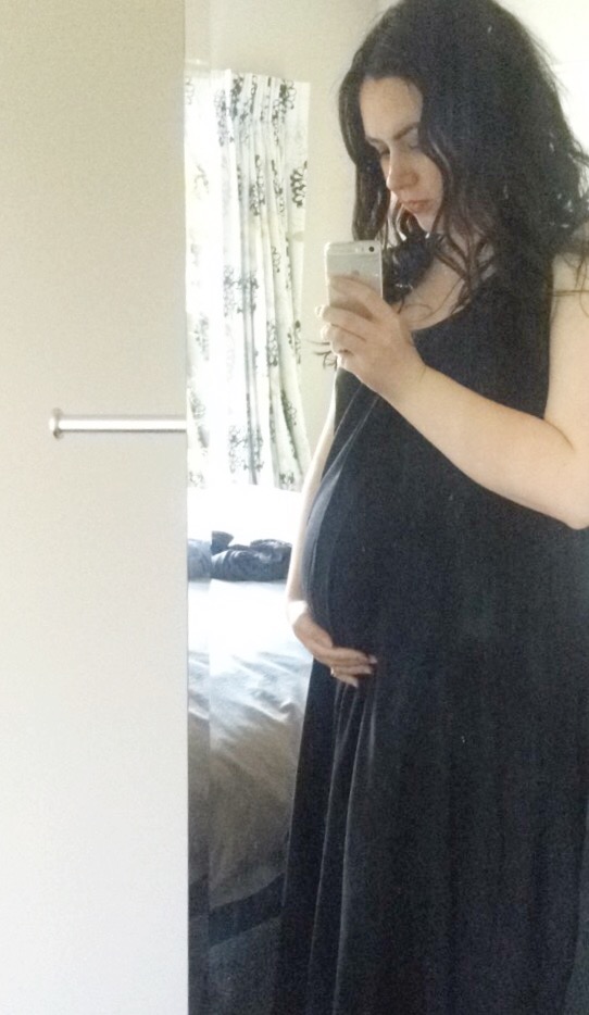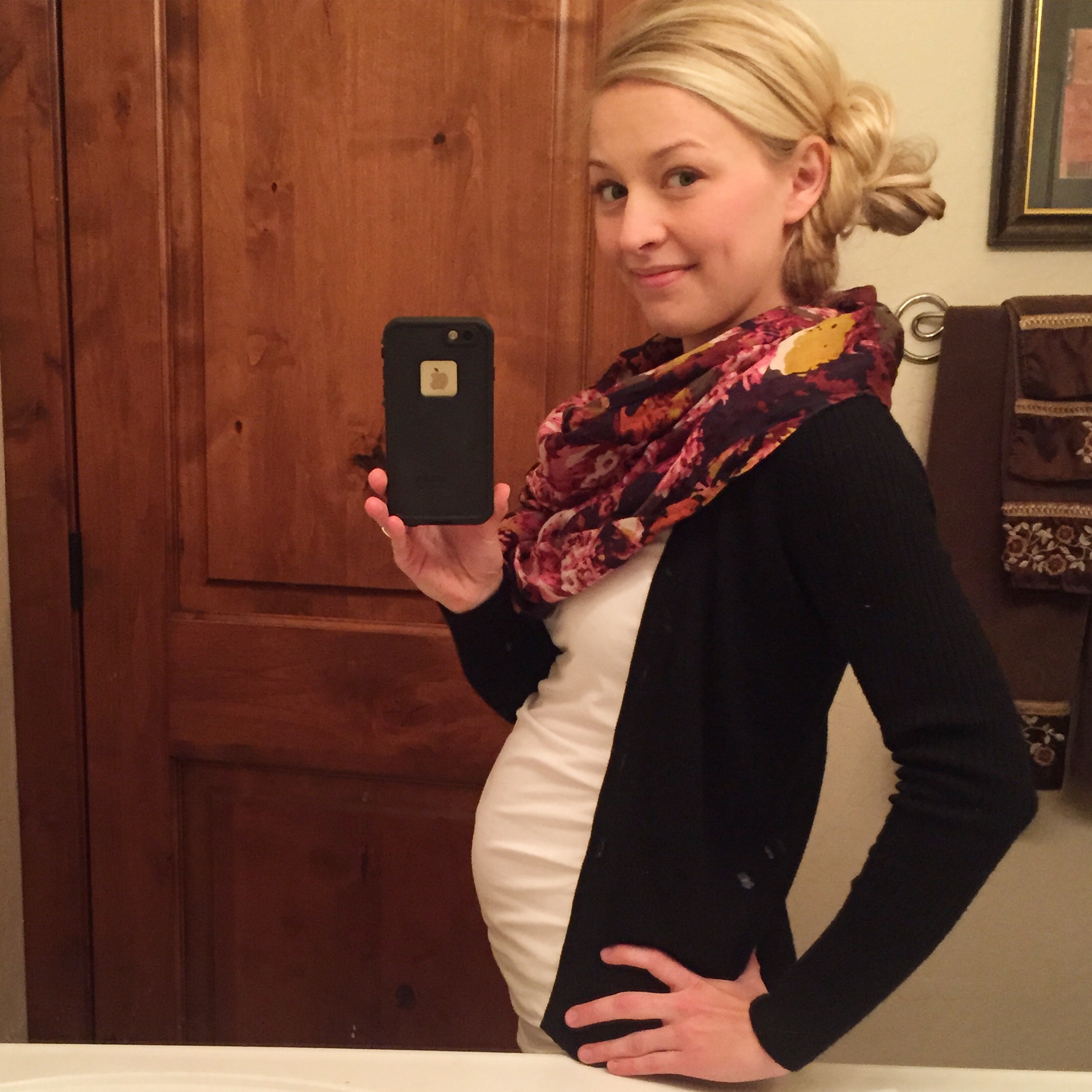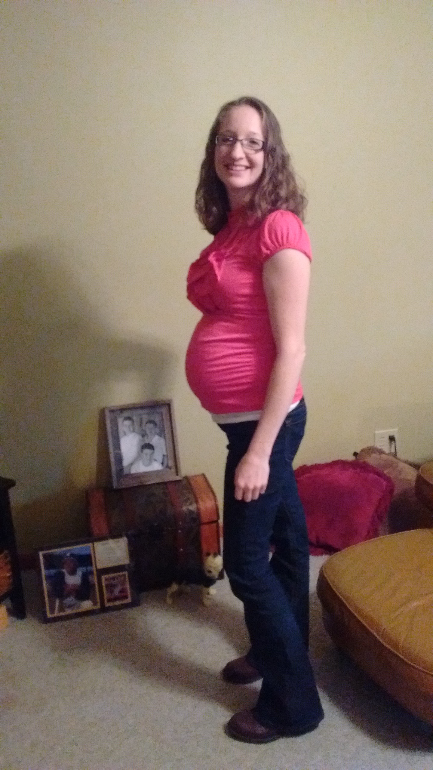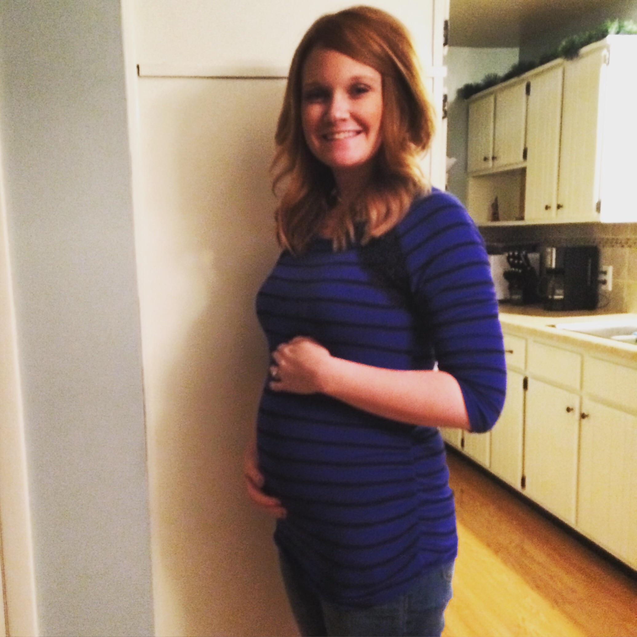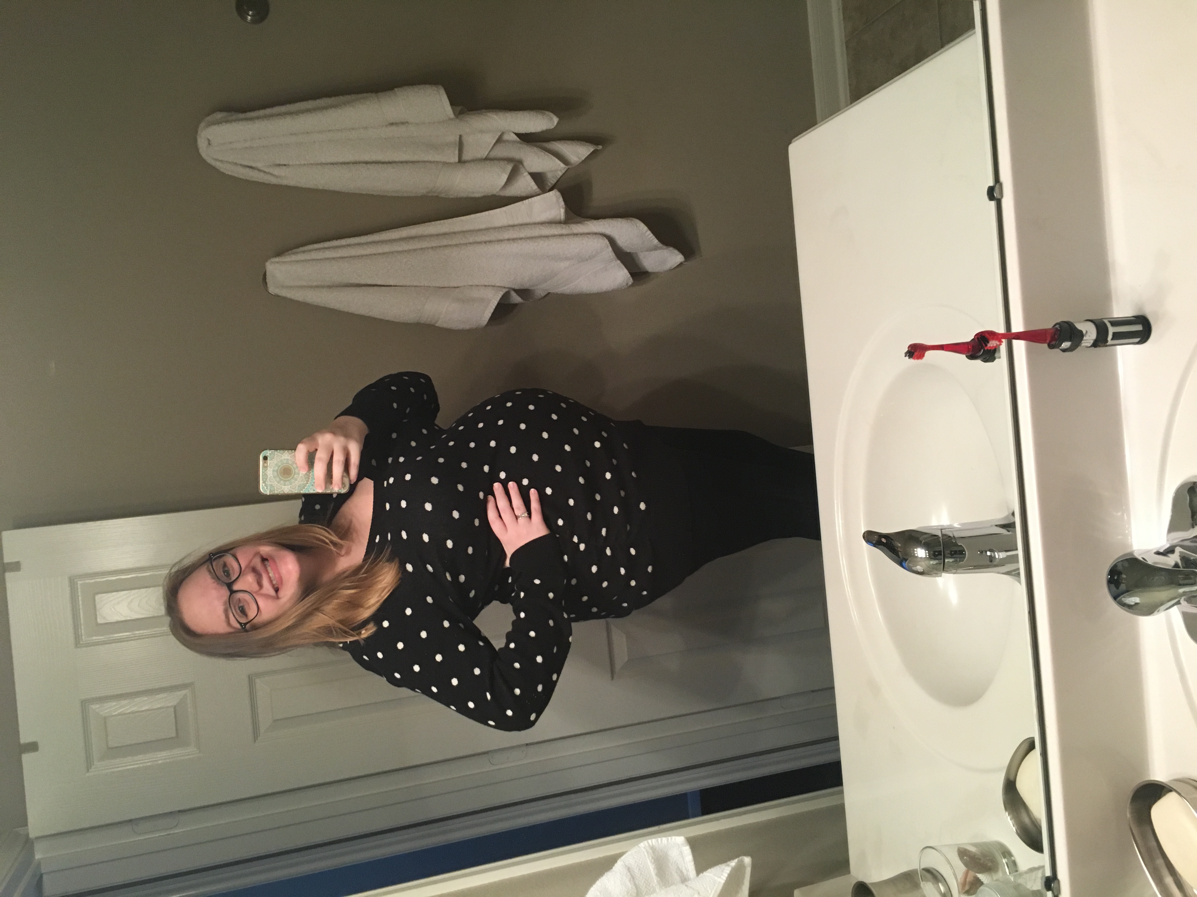 Couldn't find my sweater and a gray tank with gray walls wasn't the best choice to show off my bump! Baby's room is clearly in the process of painting.