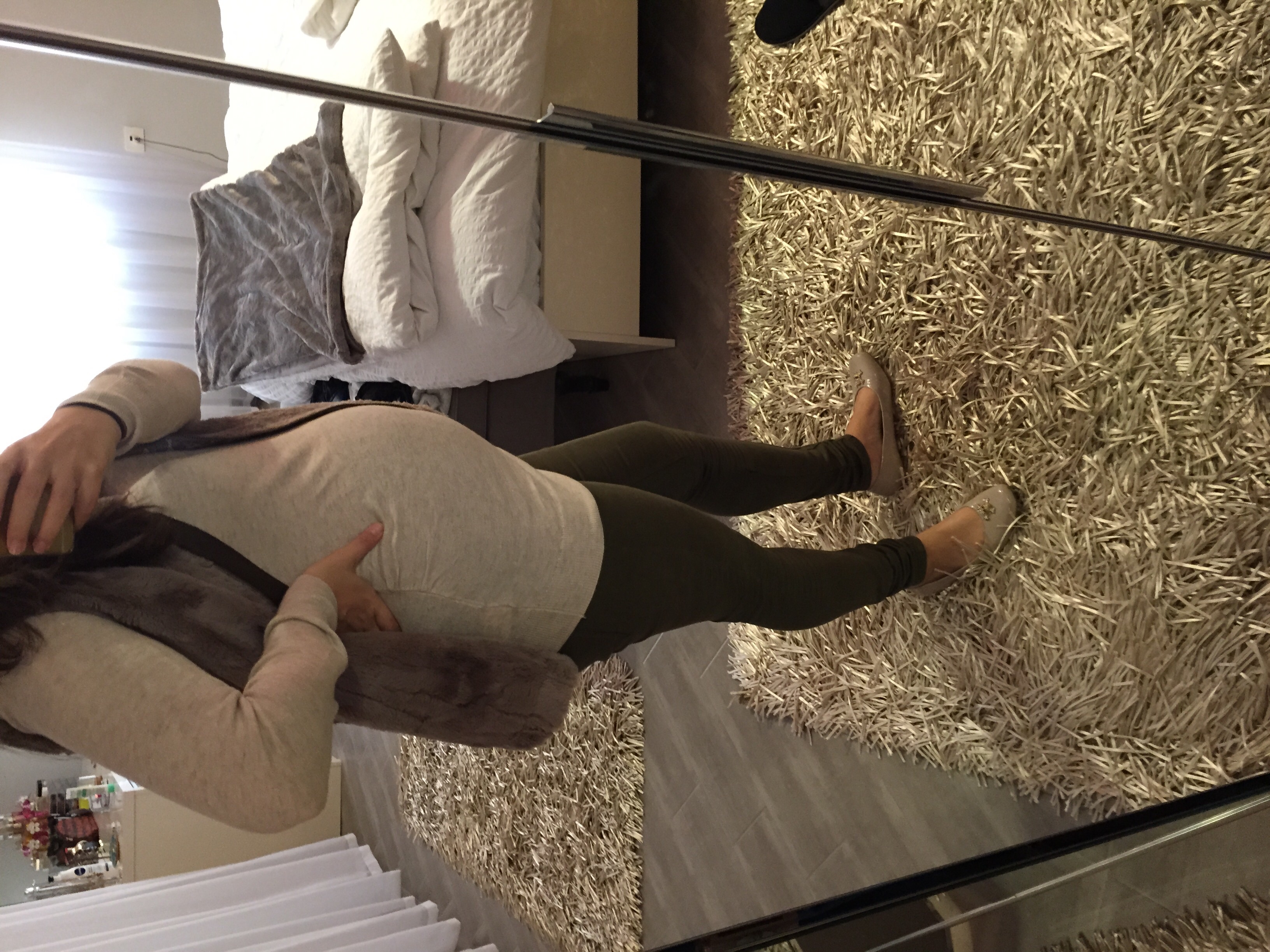 Finally getting around to this (didn't get dressed sufficiently to take a pic yesterday). Even though I didn't do much better here – I *was* dressed up for my GTT and kid's dental appt, but after the pre-thanksgiving last minute grocery run I came home and jumped into leggings (sorry haha! ) 24w+1d