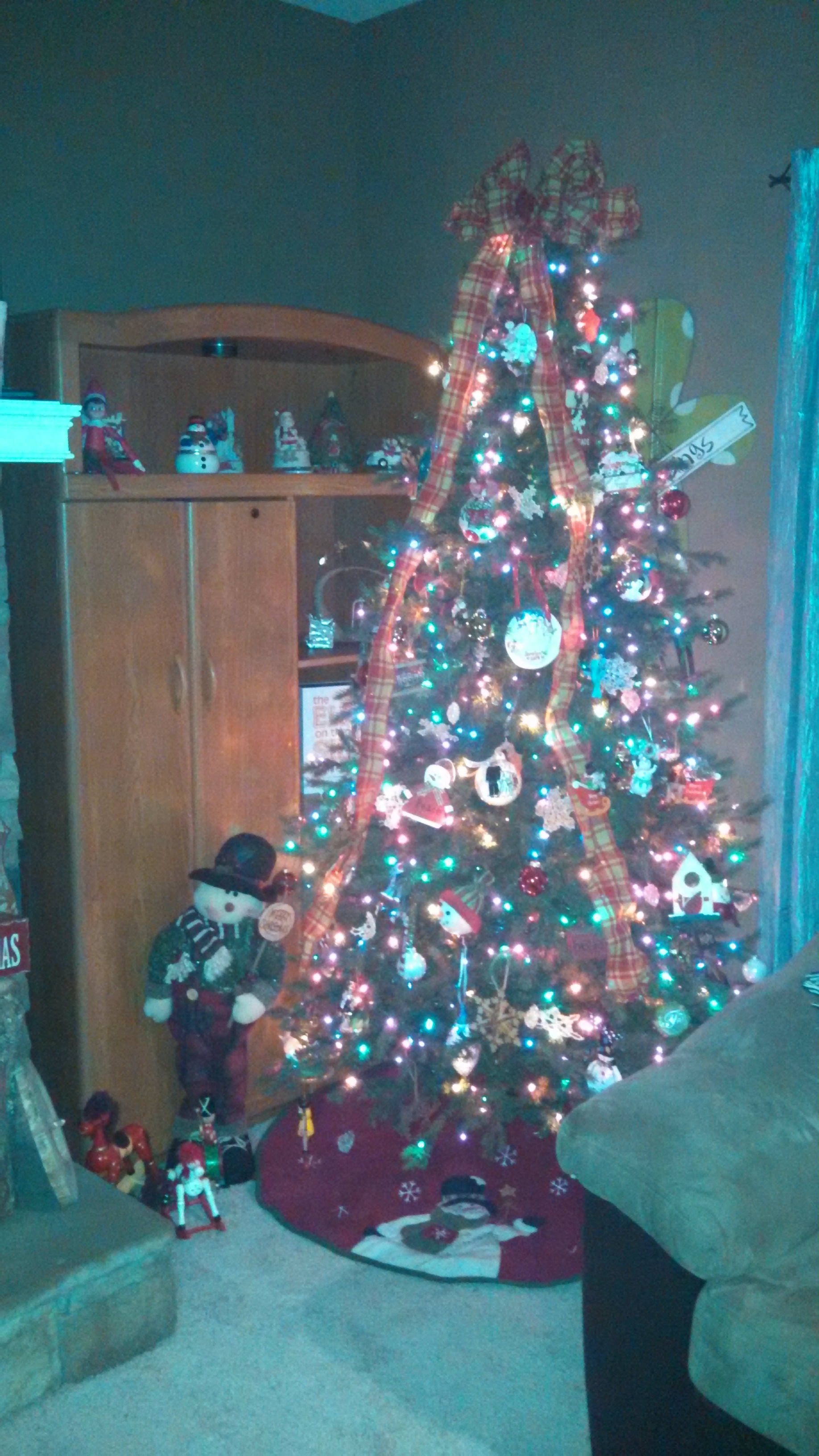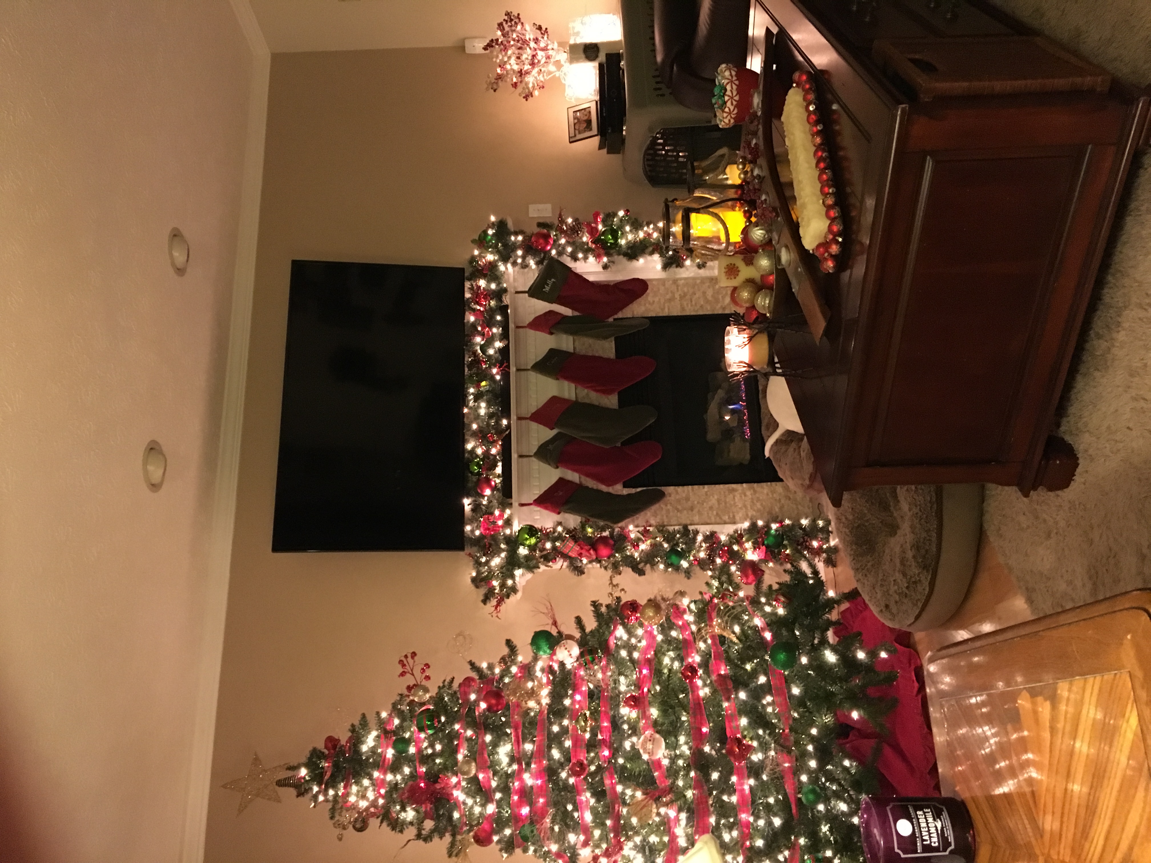 Not the best pictures. I want to make a new Christmas tree skirt. I don't have shots of my windows, and I still need to make my Holly wreath for the front door.