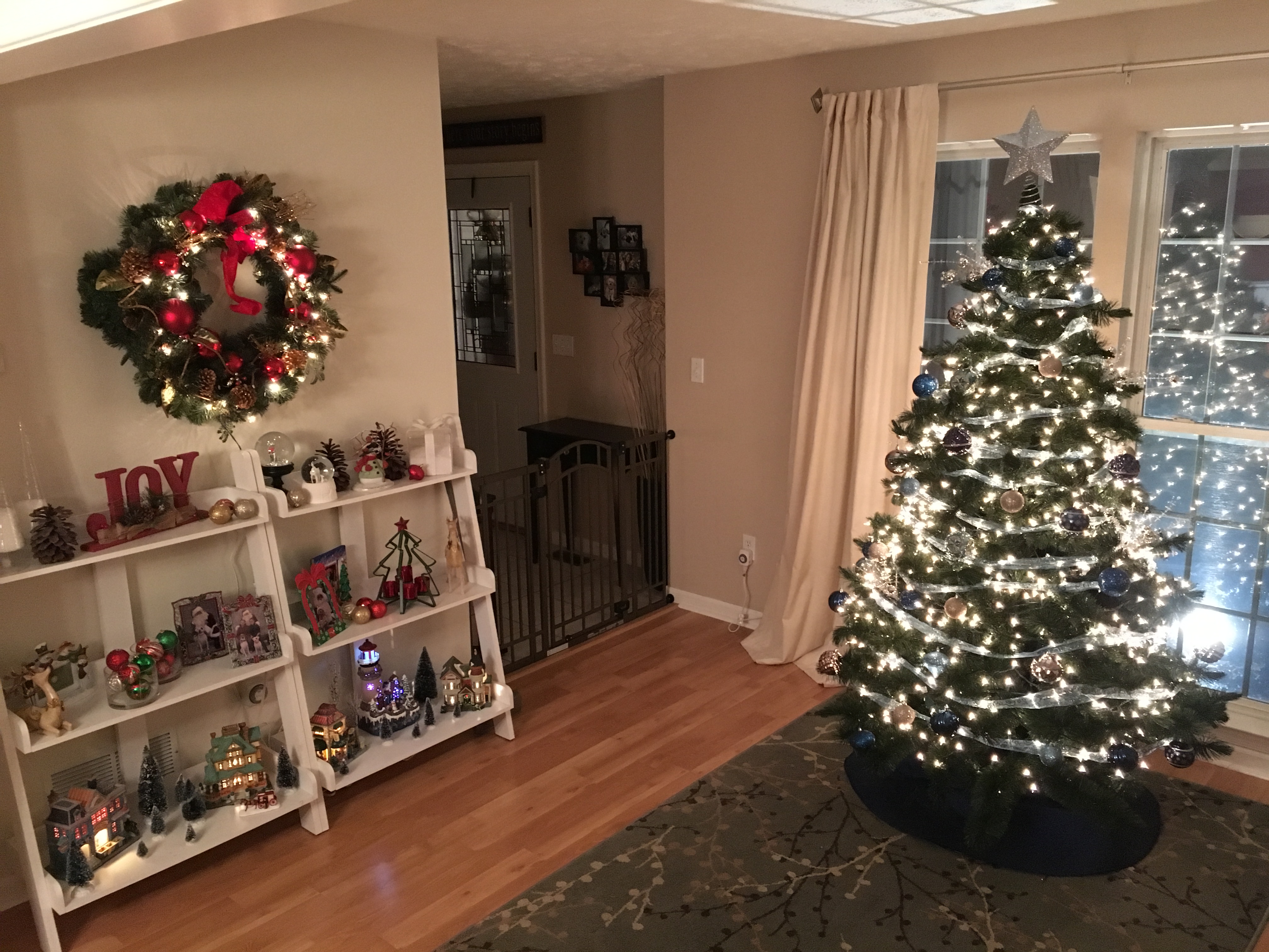 Here's what little I have finished. Not sure what's up with the lighting of the Christmas tree pic. I still have a village to get out and my outside decorations (if it ever stops raining in North Alabama). This is my favorite time of year!