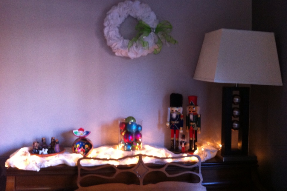 Ooh fun! I am just finishing up putting christmas stuff out out. I don't have a tree topper yet so the top of my tree is naked. Second picture is my mini village. My guilty pleasure