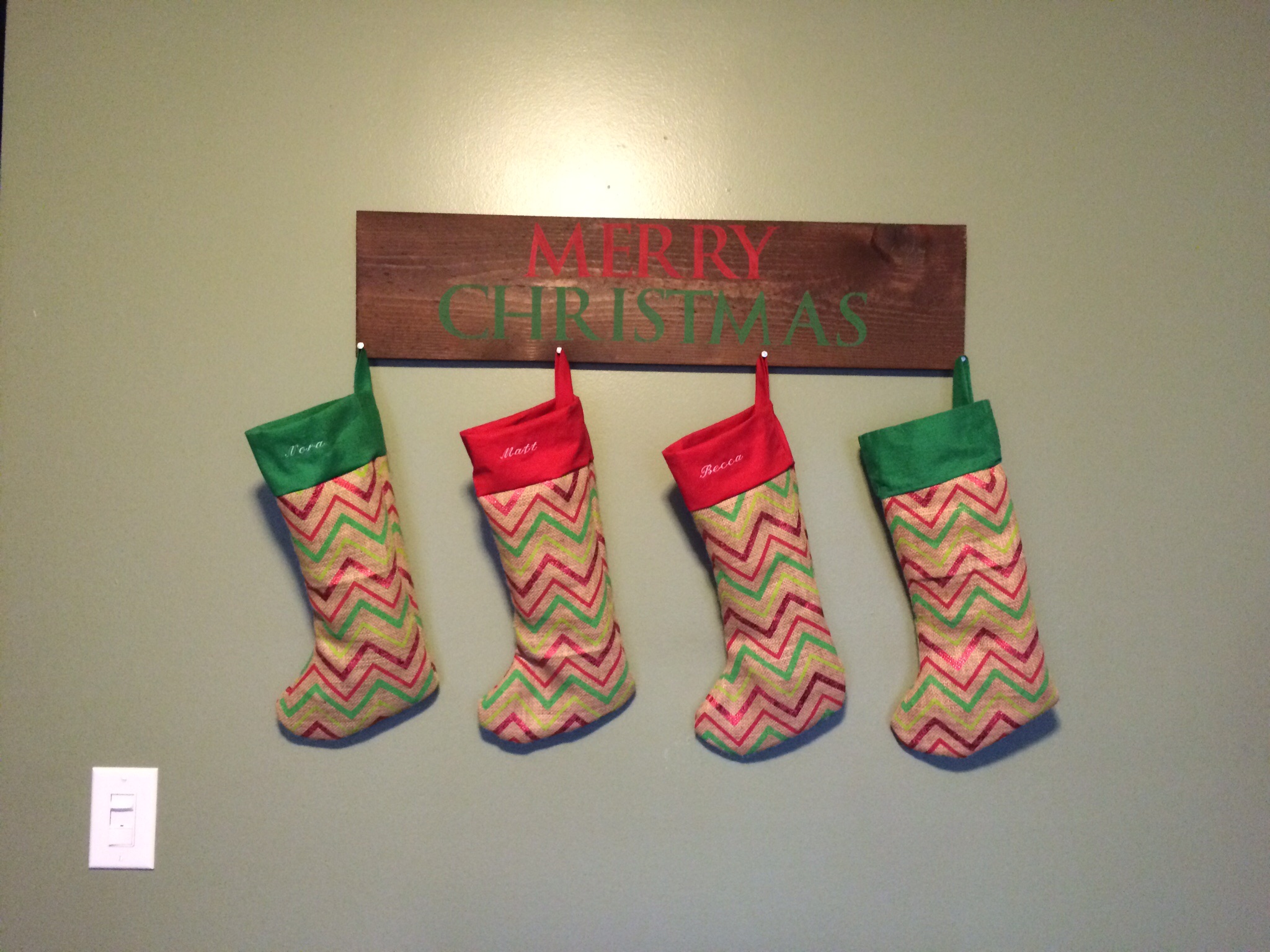 • When we found out we are having another little girl, I went a little crazy working on the quilt top! Next week I hope to get the layers all stitched together. I also finished making this sign and sewing the stockings just in time for Christmas decorating!