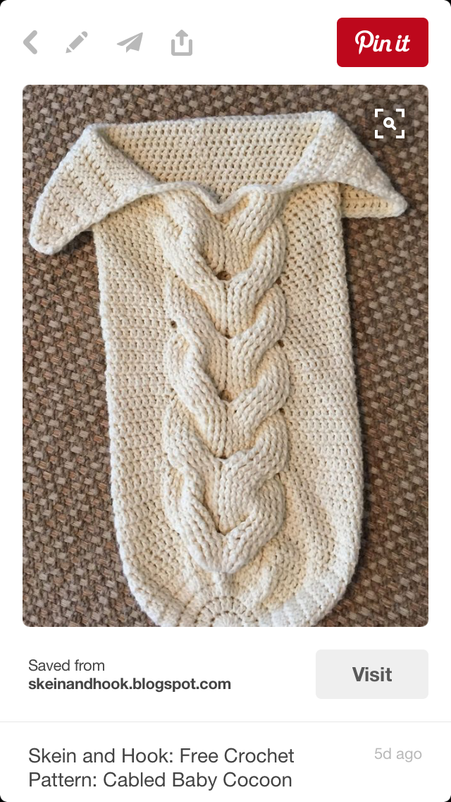2. I'm also about halfway through this cocoon in navy for DS - skeinandhook.blogspot.com/2015/03/free-crochet-pattern-cabled-baby-cocoon.html (photo from pattern). Hopefully I can finish it in the next few weeks.