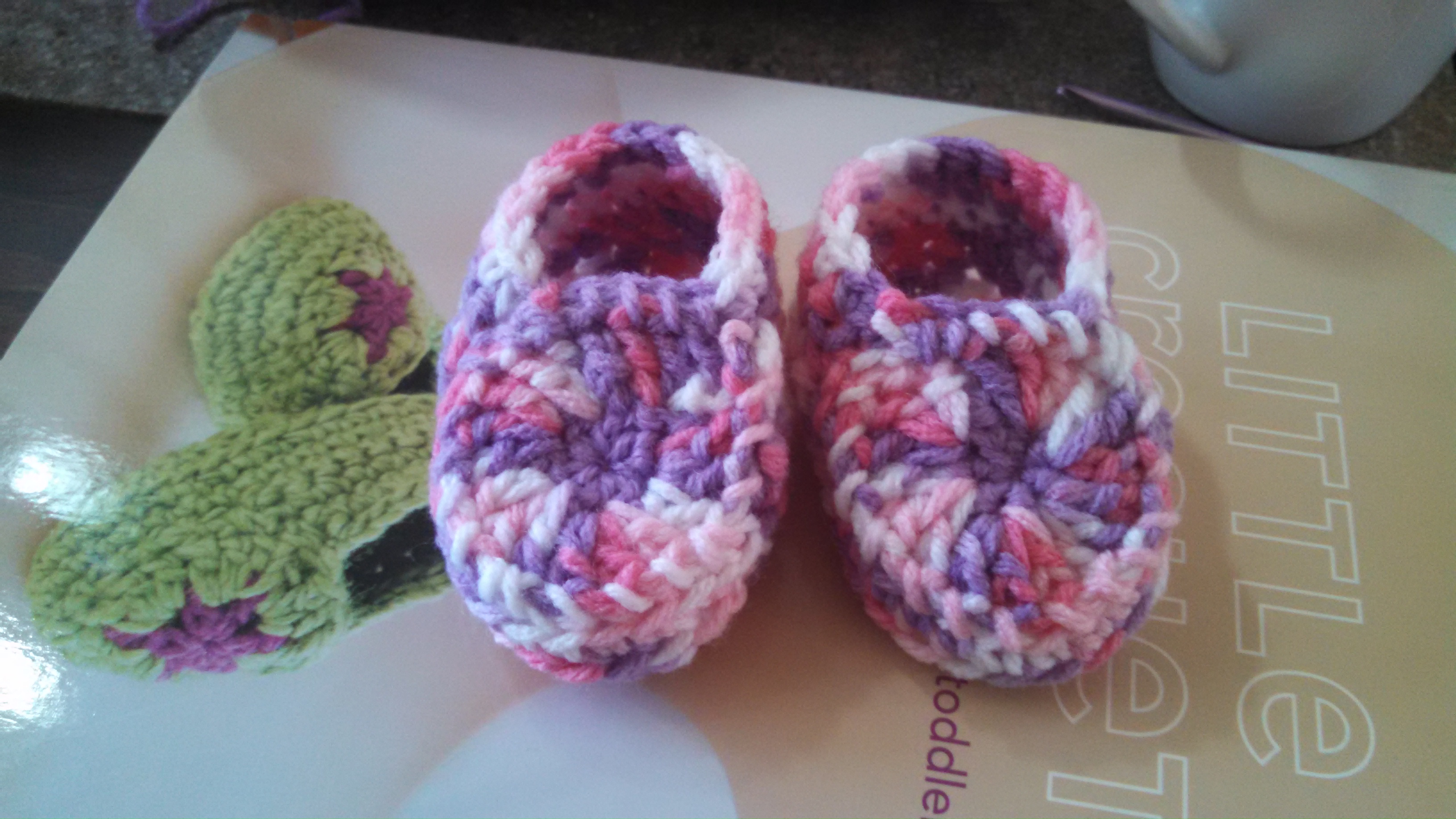 Last week I finished a pair of booties and started another pair for our baby girl (I think I posted the first pair last week, but they are just so darn cute!)