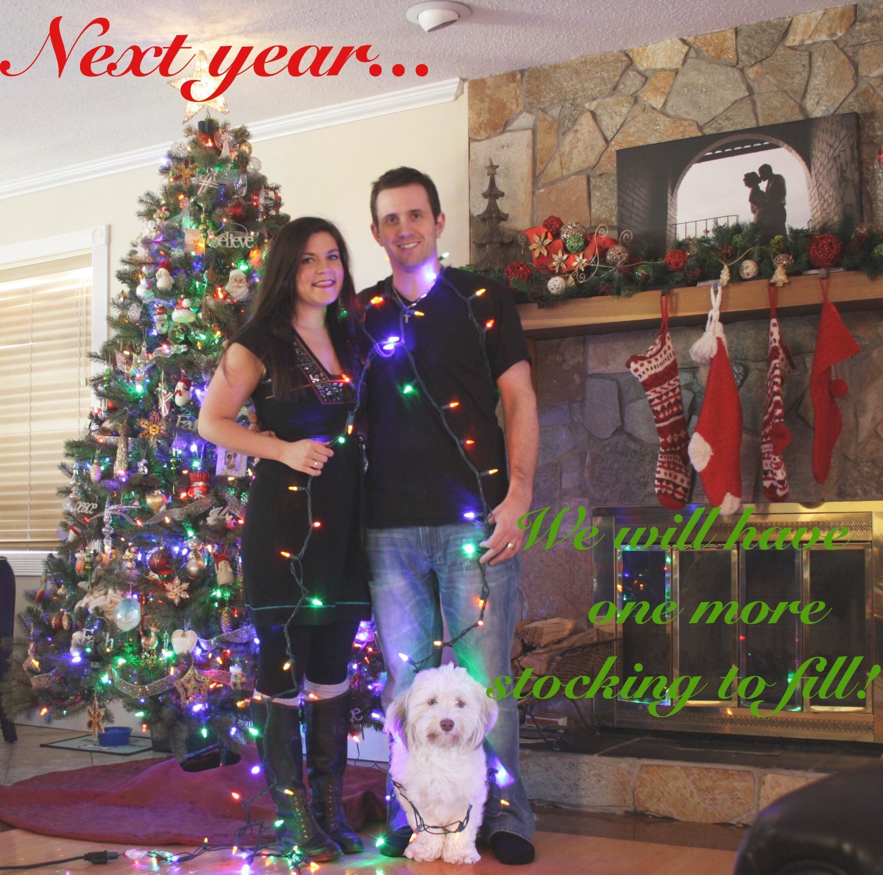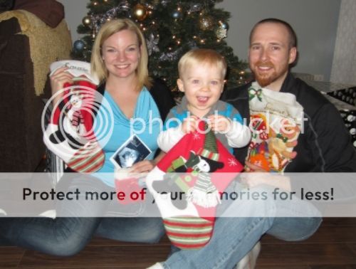 I will be 12 weeks and 2 days on Christmas. On Christmas Eve I'm going to post the picture below and make it my cover photo and just see how many people realize the third blank stocking in the middle.