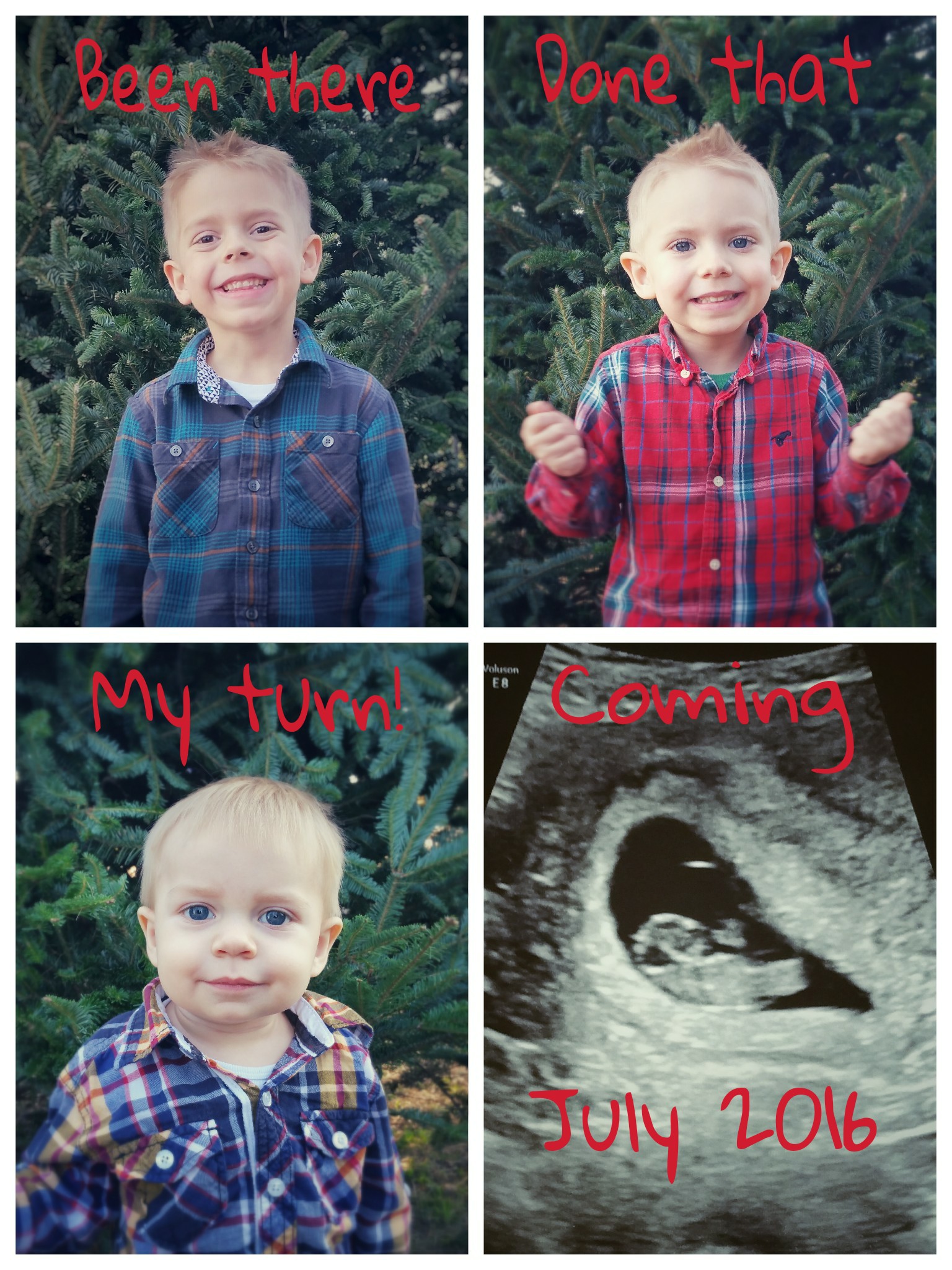 We were going to wait until New Year's to announce because that's when I'll hit the magic 12 weeks, but we had an u/s and my second prenatal appointment yesterday, and I just can't wait anymore! Plus, I'd prefer to tell immediate family in person for Christmas rather than try to coordinate some get-together for NYE. I found an angel on Etsy who is making a card for me to have printed today. It says, "The best gifts don't come from a store... Merry Christmas from our soon-to-be family of 4! Baby M. due July 2016." It'll have a picture of DS printed on it - attached below. My mom wrapped up a couple special books for DS to unwrap on Christmas Day with my brother, SIL and their DS. I'll wrap them up again and have him unwrap them at MIL's on Saturday to announce to SIL and her kids. Then I'll text this pic of DS to close friends and family before posting on FB and dropping our cards in the mail.