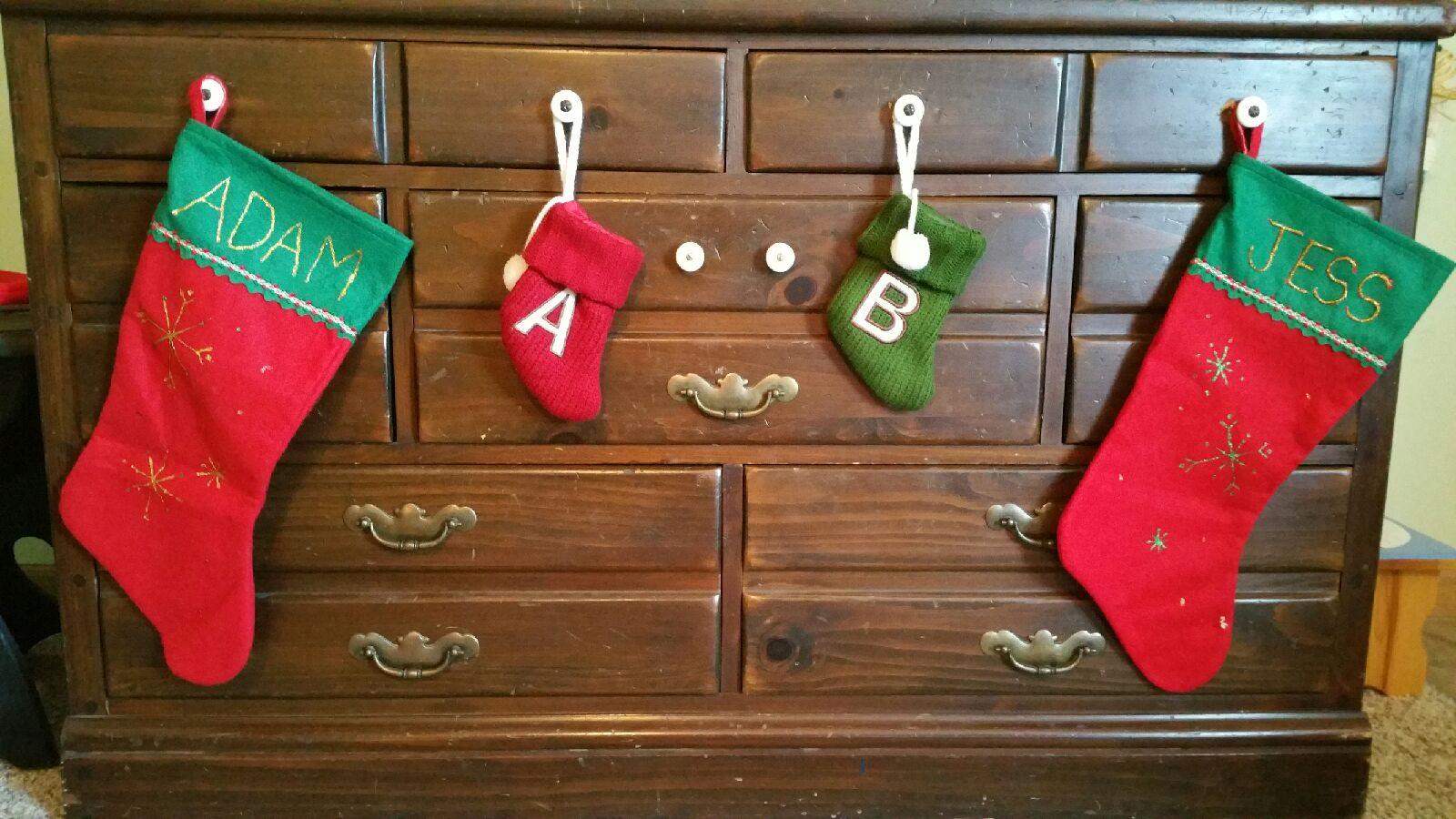 We pre-announced in a slightly subtle way today with this picture. We are 9w3d and currently have a heartbeat so the odds are good. Soon I will post a closeup of the stockings. The fourth one has the ultrasound photo from 6 weeks. I think a lot of people will not even notice it because of the 500 Christmas tree photos on Facebook right now.