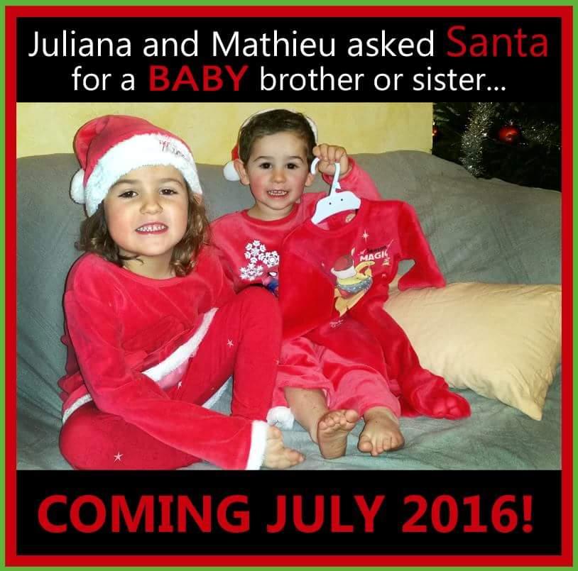 Yesterday I finally found Christmas pyjamas for my 2 kids (2 and 4) and saw a matching one for 6 months. I bought them snd we decided to tell the kids last night. It's been just too big of a secret to keep any longer. I took a video of us telling them and a pic of them holding the pyjamas. I was going to wait until Christmas, but I remember Christmas is usually flooded with posts, so didn't want to get lost in the mix. I already told my parents, sisters and brother. I'm between 10 to 11 weeks.
