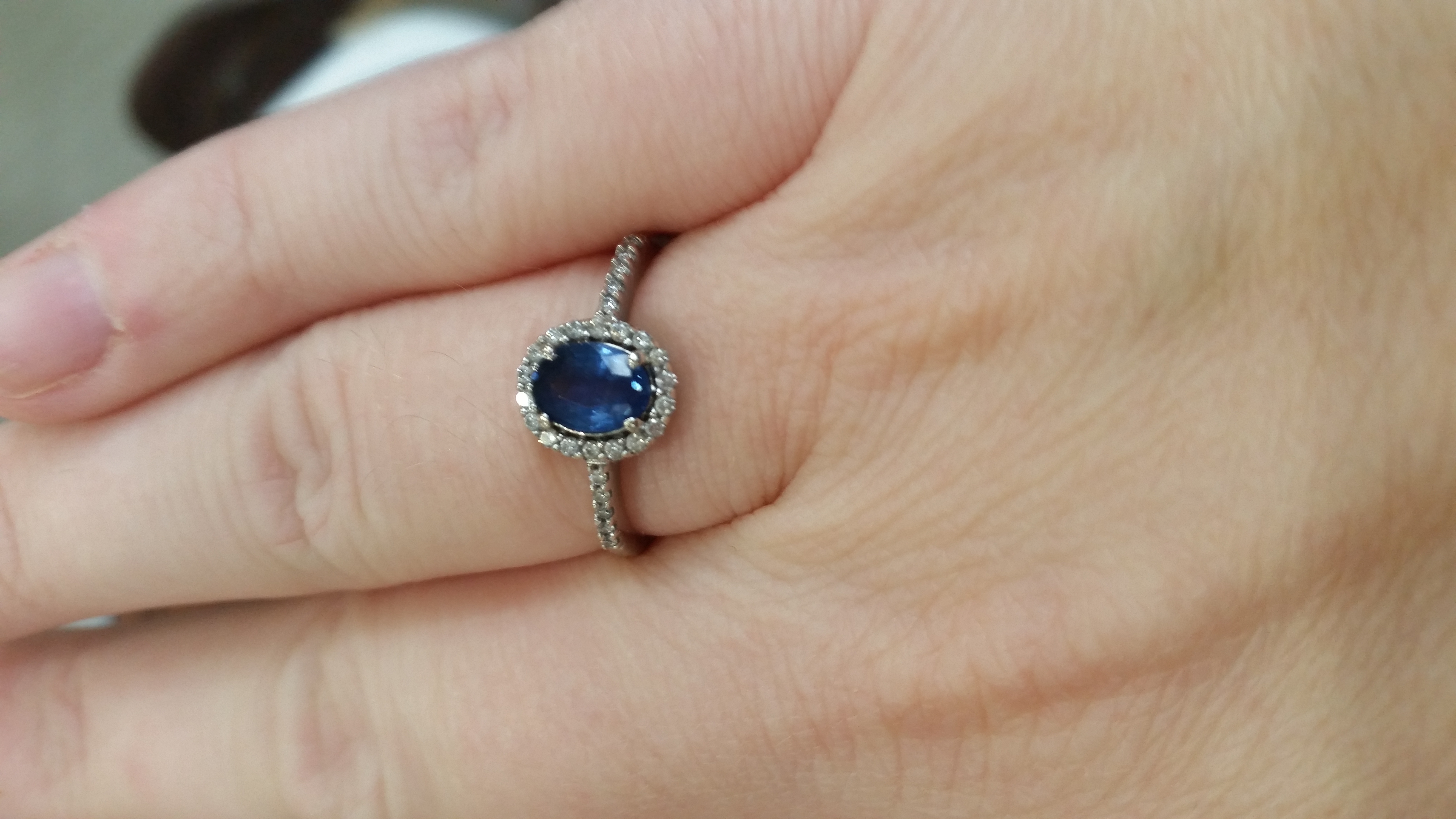 He bought me the band for the other side of my ring after a few hard months of stuff I was going through with my family and the ring with the sapphire was my wedding gift - something new and something blue!