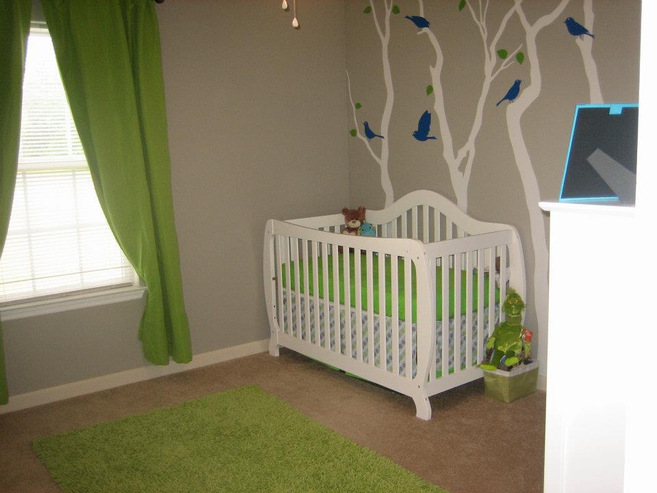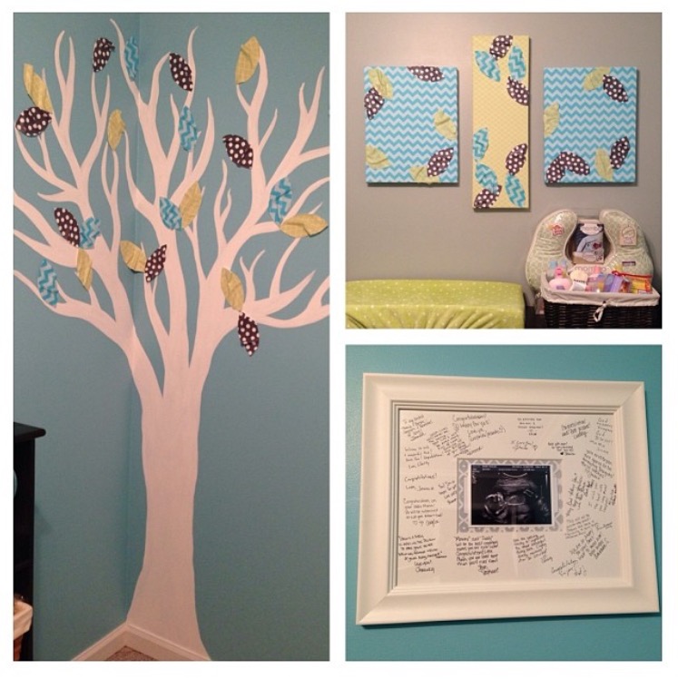 This is DSs room. I eventually added letters to the fabric covered panels. We are hopefully moving in a month so team green baby won't have a nursery, but I'll change add some pink and purple to the gray bedding if it's a girl.