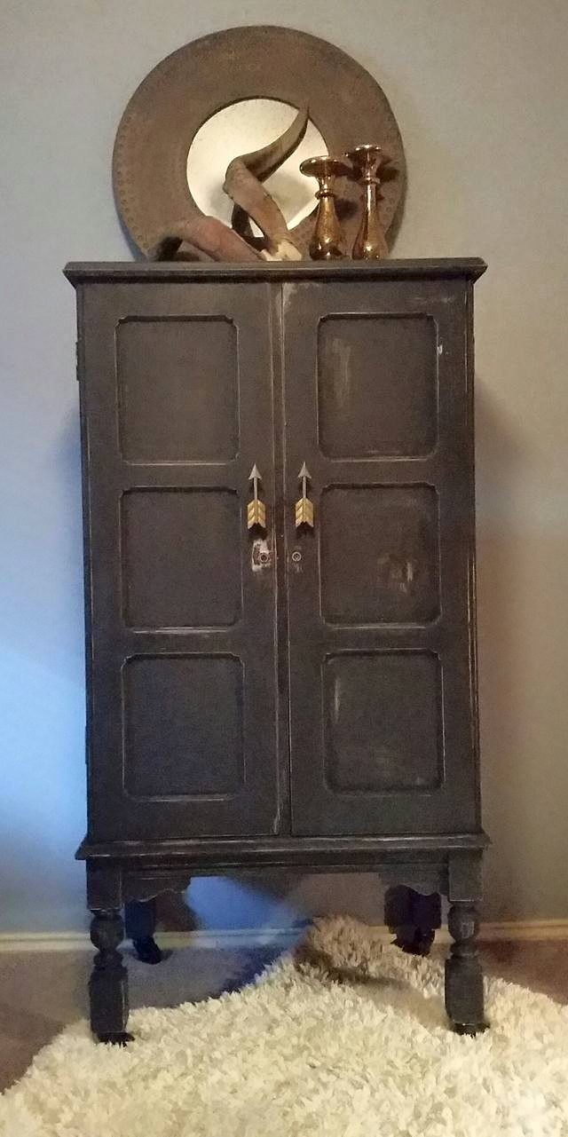 My amazing sister refinishes antiques, so she had this children's wardrobe she refinished for me, which is where our little one's clothes will go until he outgrows it to the big closet. We also refinished a gorgeous table with claw feet that we're making into the changing table - my amazing husband is building the changing pad frame to go on top. We really wanted to use grown-up pieces, since I'm not really a fan of the typical childlike nursery themes, personally. I think it's turning out well though we have a little left to do! :-)
