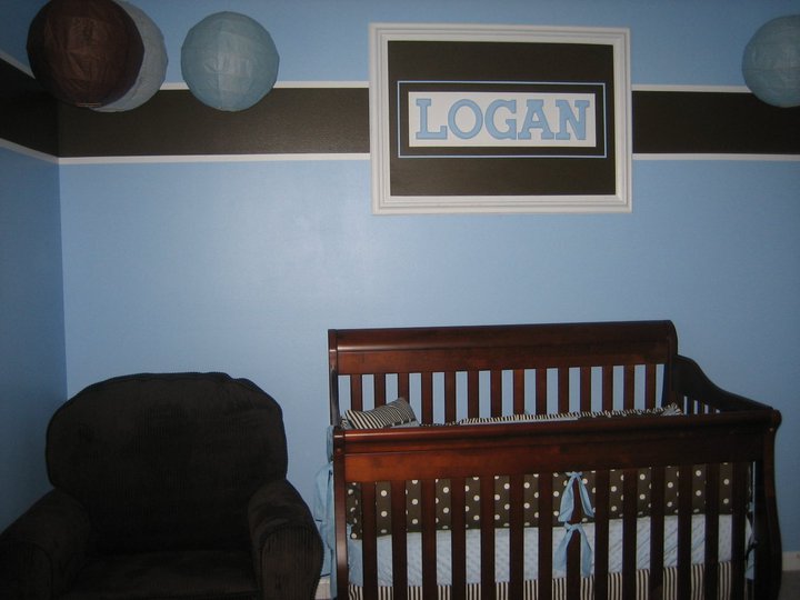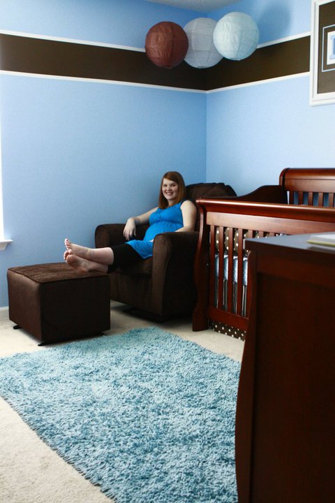 We did the nursery in tan, brown and light blues. We've painted the room (will post pictures when we get a better light fixture...the lighting is horrible) and received our nursery furniture last night from babies r us. I'm a little upset because the dresser was crushed on one corner so we had to load it up and take it all the way back to the store which is 45 mins away. Plus they had to order it so we have to go all the way back and pick it up.