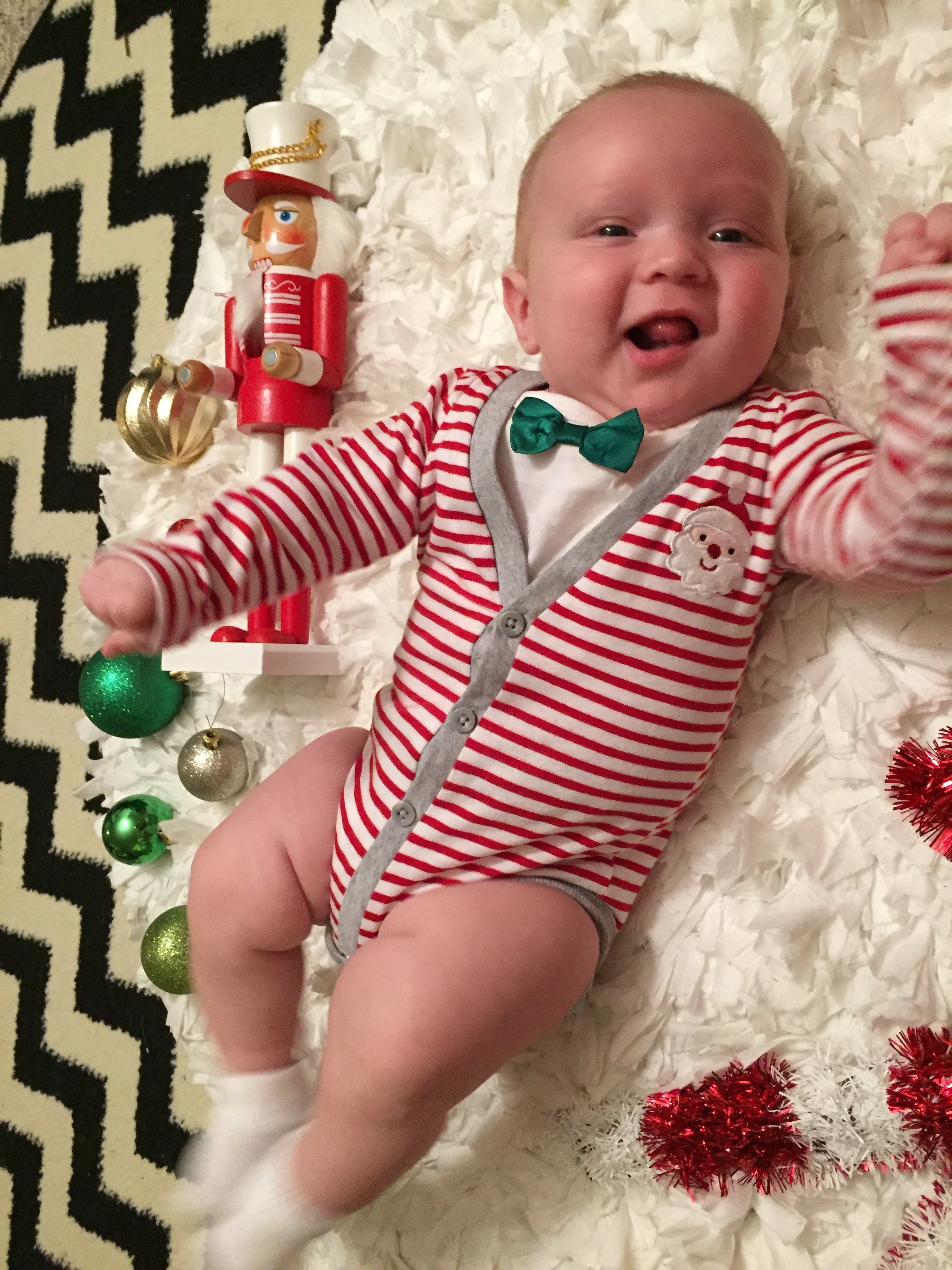 I can not find anything for my little guy to wear on Christmas. I've gotten a ton of holiday clothes but he's been wearing them all month and I refuse to let him wear something I've already posted a picture of him in lol I can't find a single "Baby's 1st Christmas" anything for boys, it's all pretty girls clothes. I want him to wear a bottom down with a cute sweater on top and I can't find anything!!! Suggestions? I've gone to babies r us, Carters (who has absolutely NOTHING), buy buy baby, TJ Maxx and Ross. He's also needs size 6M which I'm having a problem with too