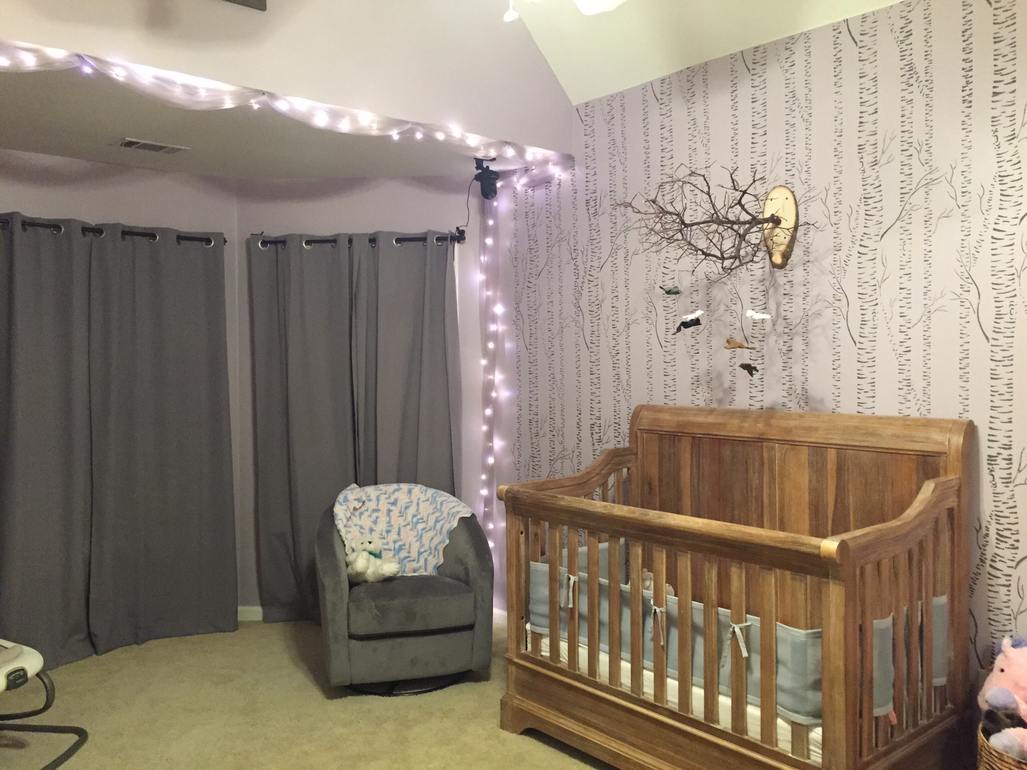 This little guy will be sharing a room with his 3 year old sister. We were going to convert the playroom into a nursery, but decided to have a sleeping room and a playroom, so that DD can still play while the baby is napping. DD is the girliest of girls and loves pink and purple. The walls are getting painted a light grey (soft oak) today.