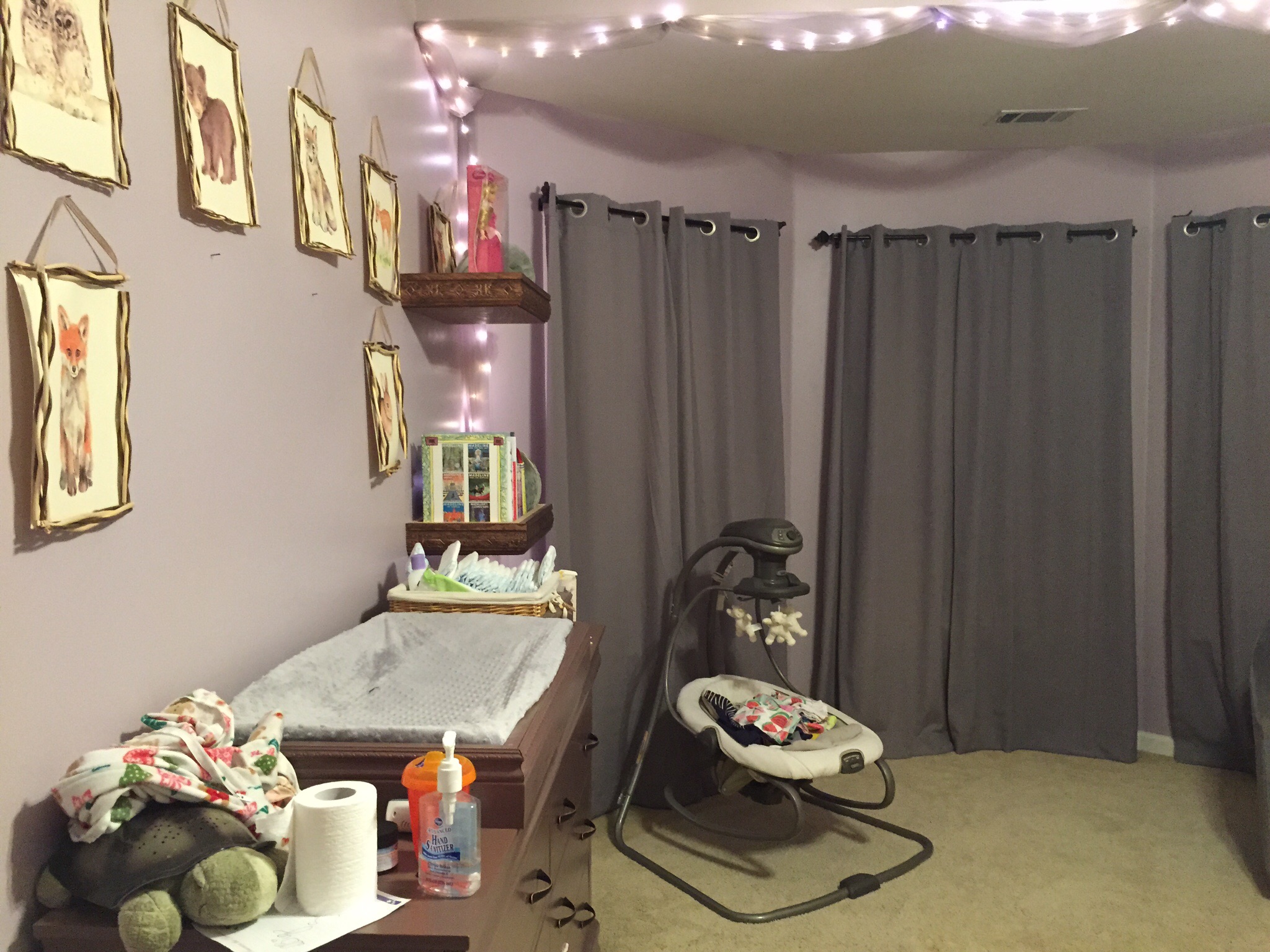 I did hang the painting I made for him, and we do have some stuffed animals, but none of that is really getting used for a long time lol. (I've decided the picture looks like the Whomping Willow)