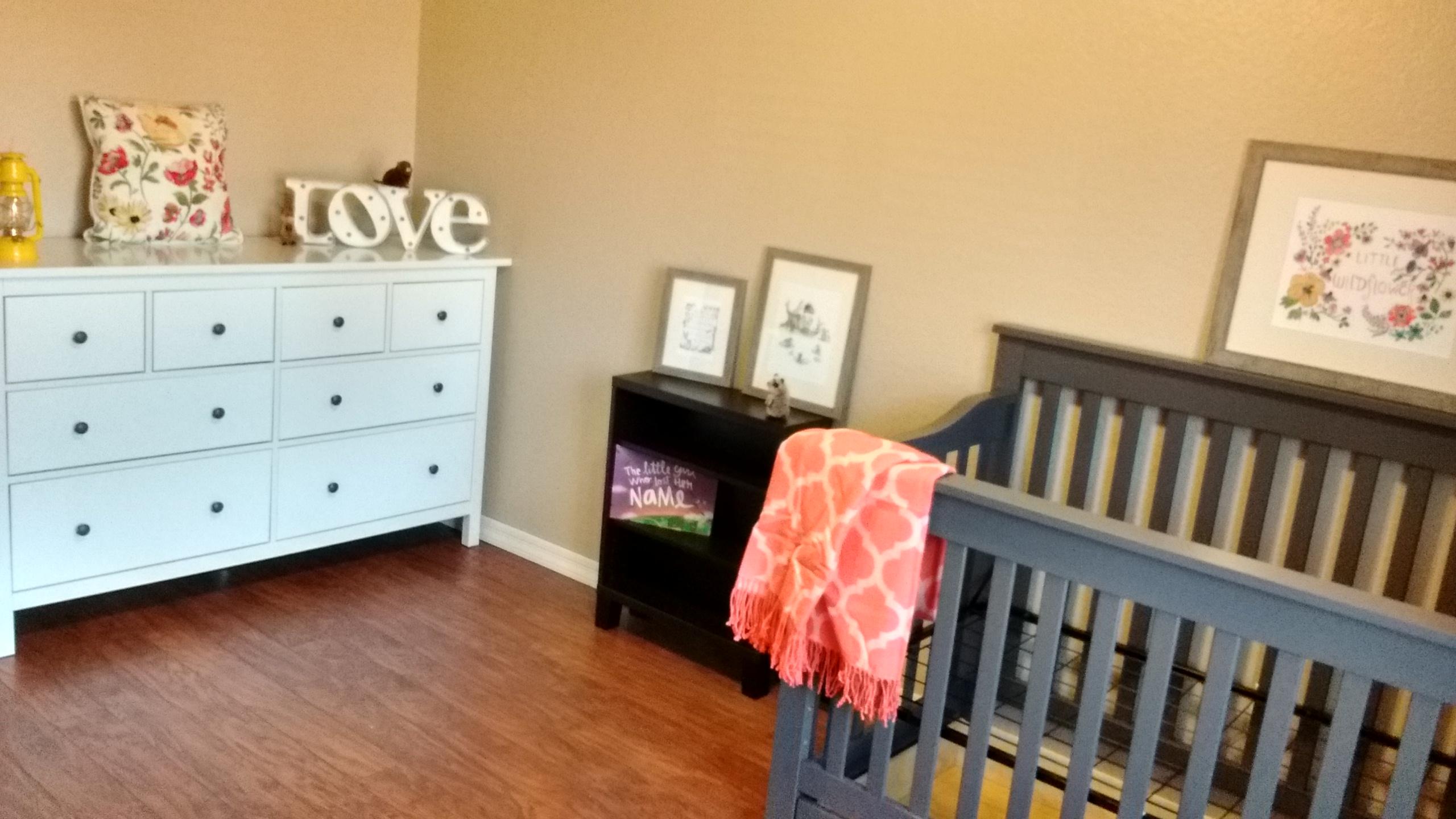 Crib and dresser are up! That's about as far as we have gotten so far. The crib and dresser are both from overstock.com. Brand of crib is babyletto
