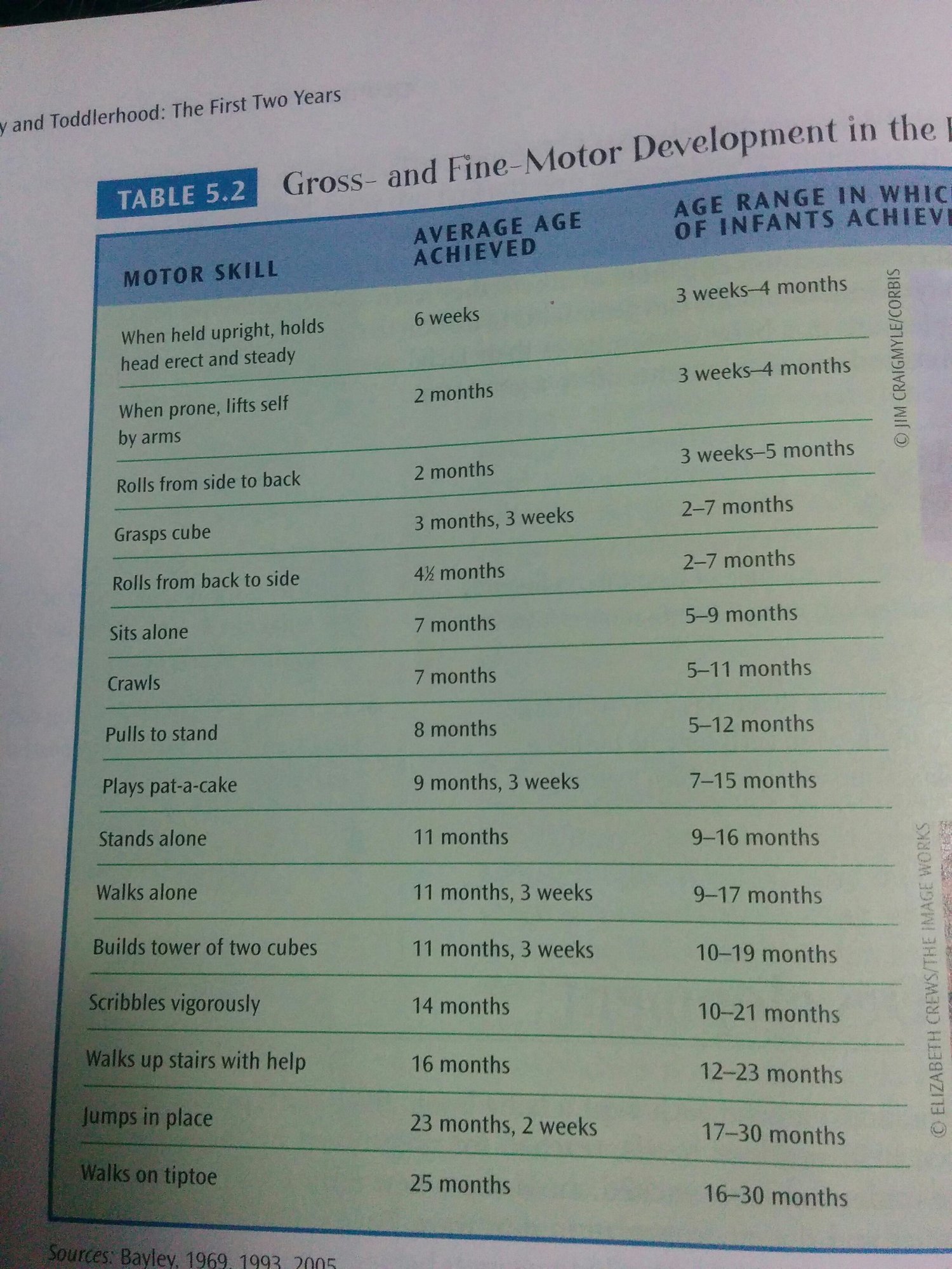This chart is from my child growth and development text book. It states that baby can/should be showing this skill between 3 weeks to 4 months! The average age is 2 months.
