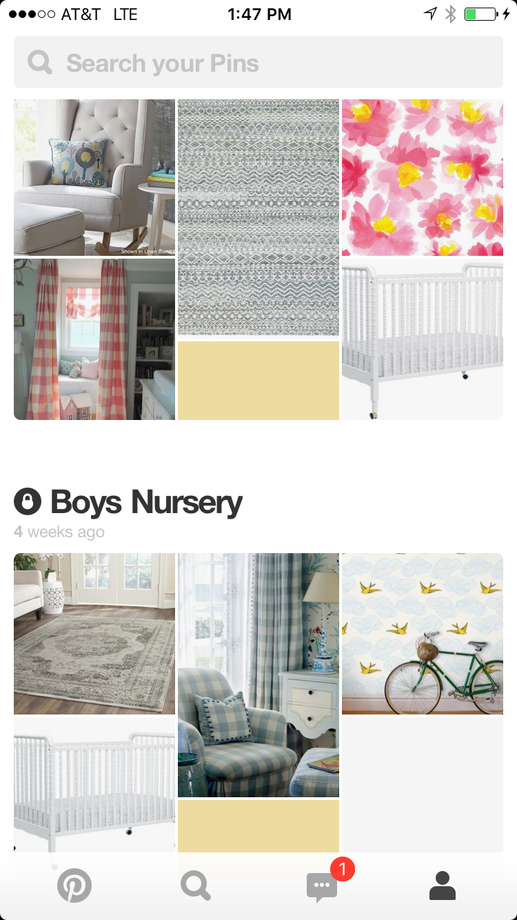 We were pinning a lot lot of stuff when I first found out and people on Facebook were starting to get suspicious so I deleted that one. I have a smaller one now and of course I miss all the pins I had. I have a private one now for twin things, as we haven't announced any of that publicly yet lol. Damn Pinterest catching me out.