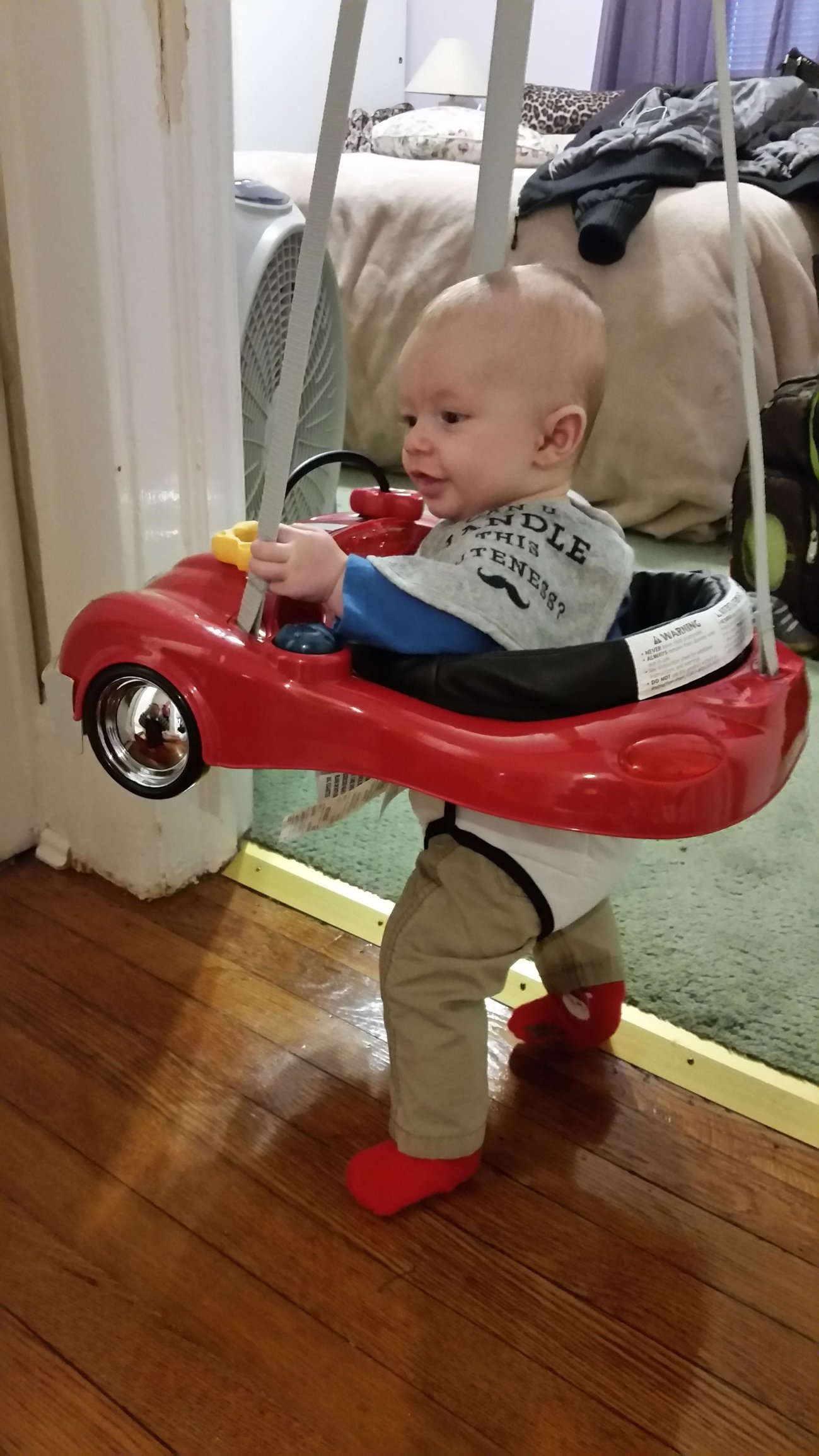 Oh! And dancing. Standing on our laps we wiggle him around in time to the music (especially swing) and he laughs and laughs.