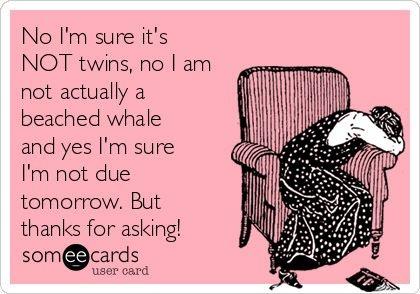 • I agree, the comments and questions are really wearing on me too. Especially "you're HUGE!" Like thanks, I did actually notice that. And I just hit the third trimester so it's only going to get bigger, thanks for pointing that out. And I can't stand "are you excited!?!" Like really, how else am I supposed to answer that? If I wasn't excited I really wouldn't want to talk about it to random people and I'm sure they wouldn't want to hear it, so quit asking.