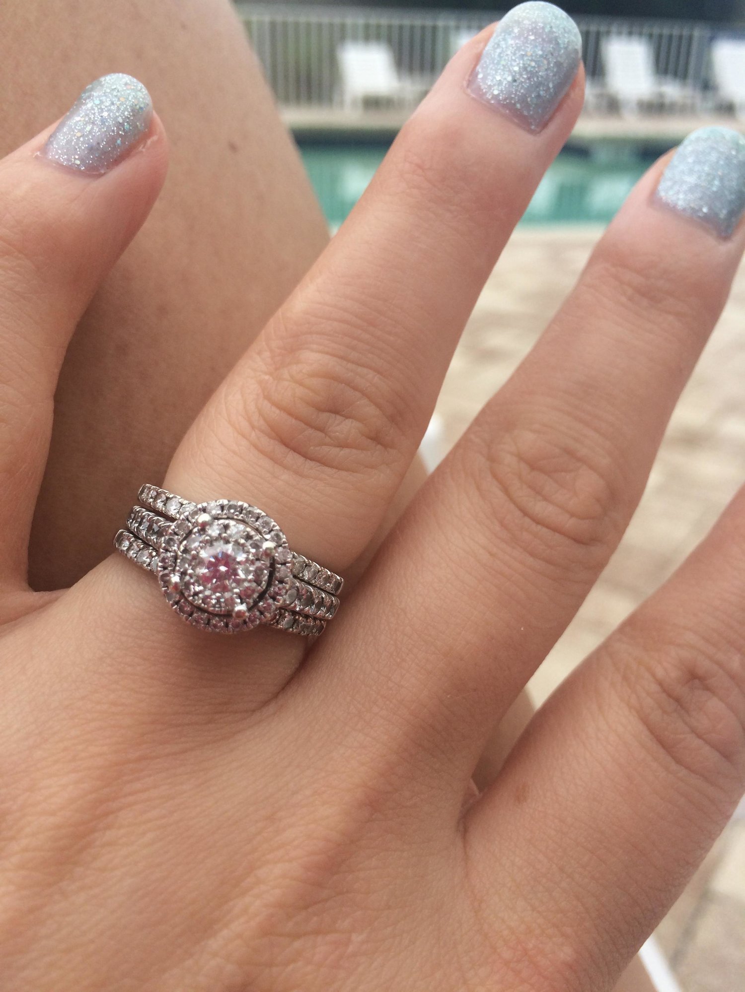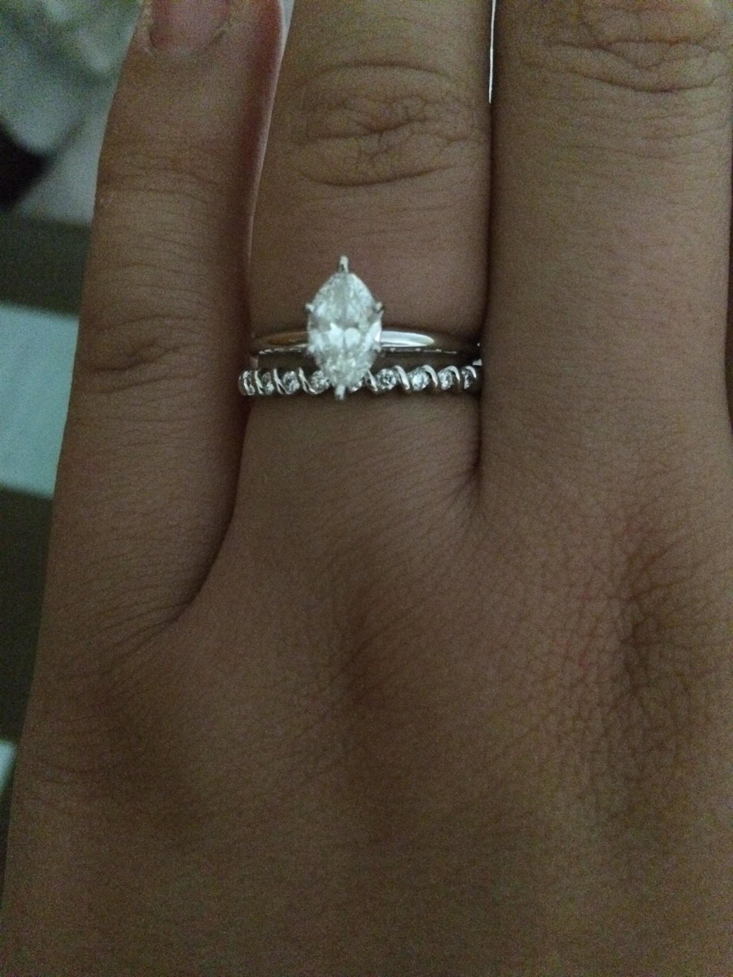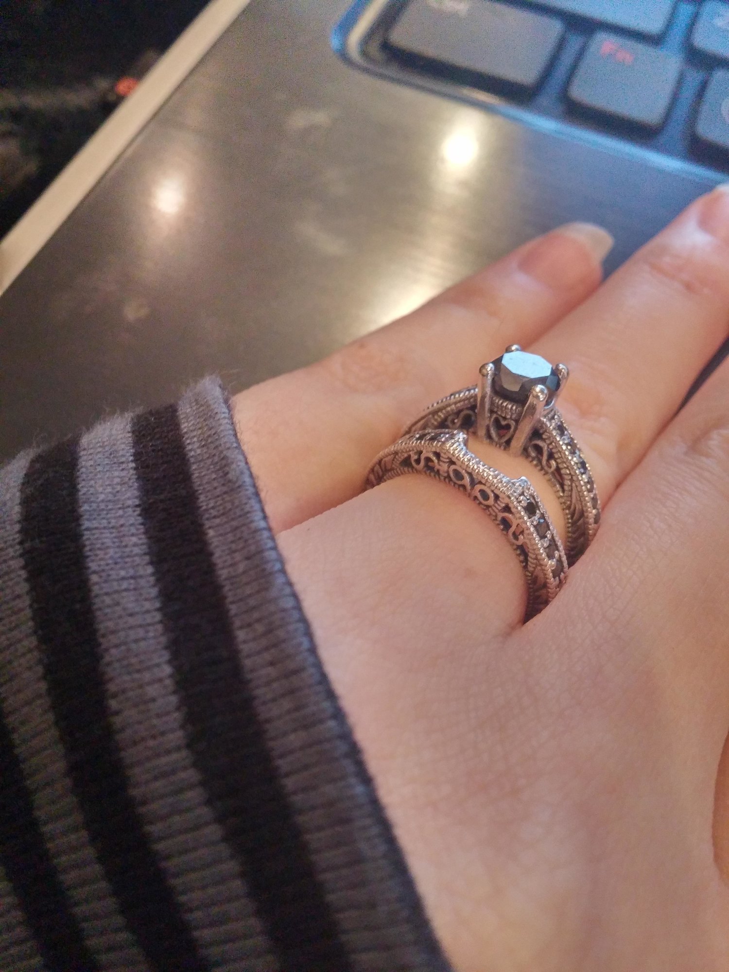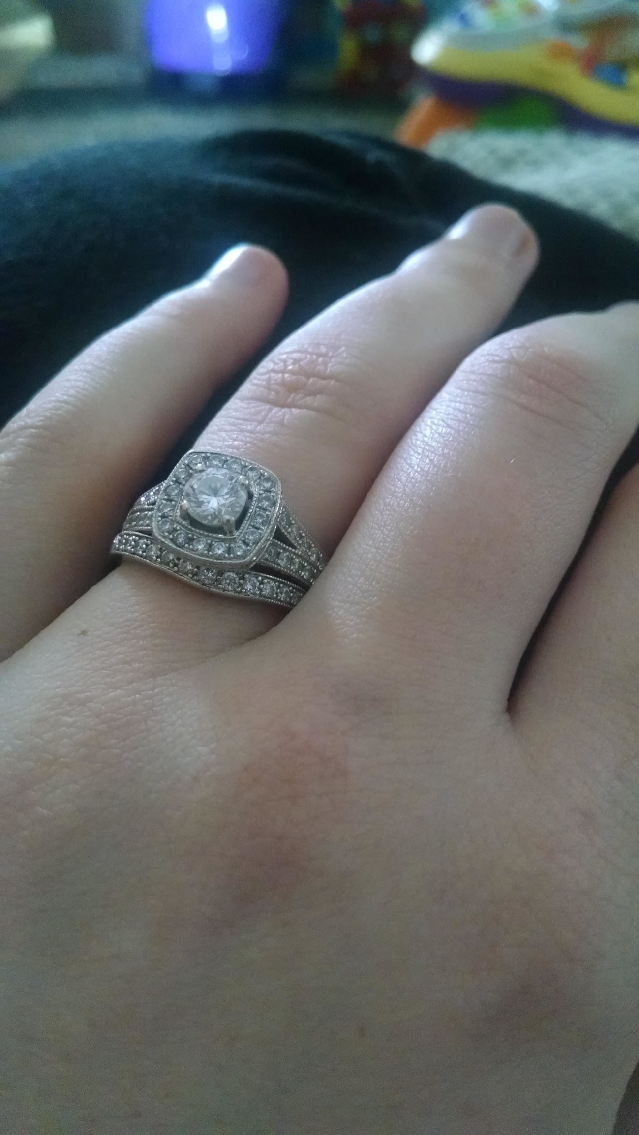 I'll play! My engagement ring setting is one I had fallen completely in love with having seen something similar on Pinterest and DH searched everywhere to find something like it :) the infinity band we picked out together! (edited to say dont mind my week old manicure I'm going to get NYE nails done tomorrow!)