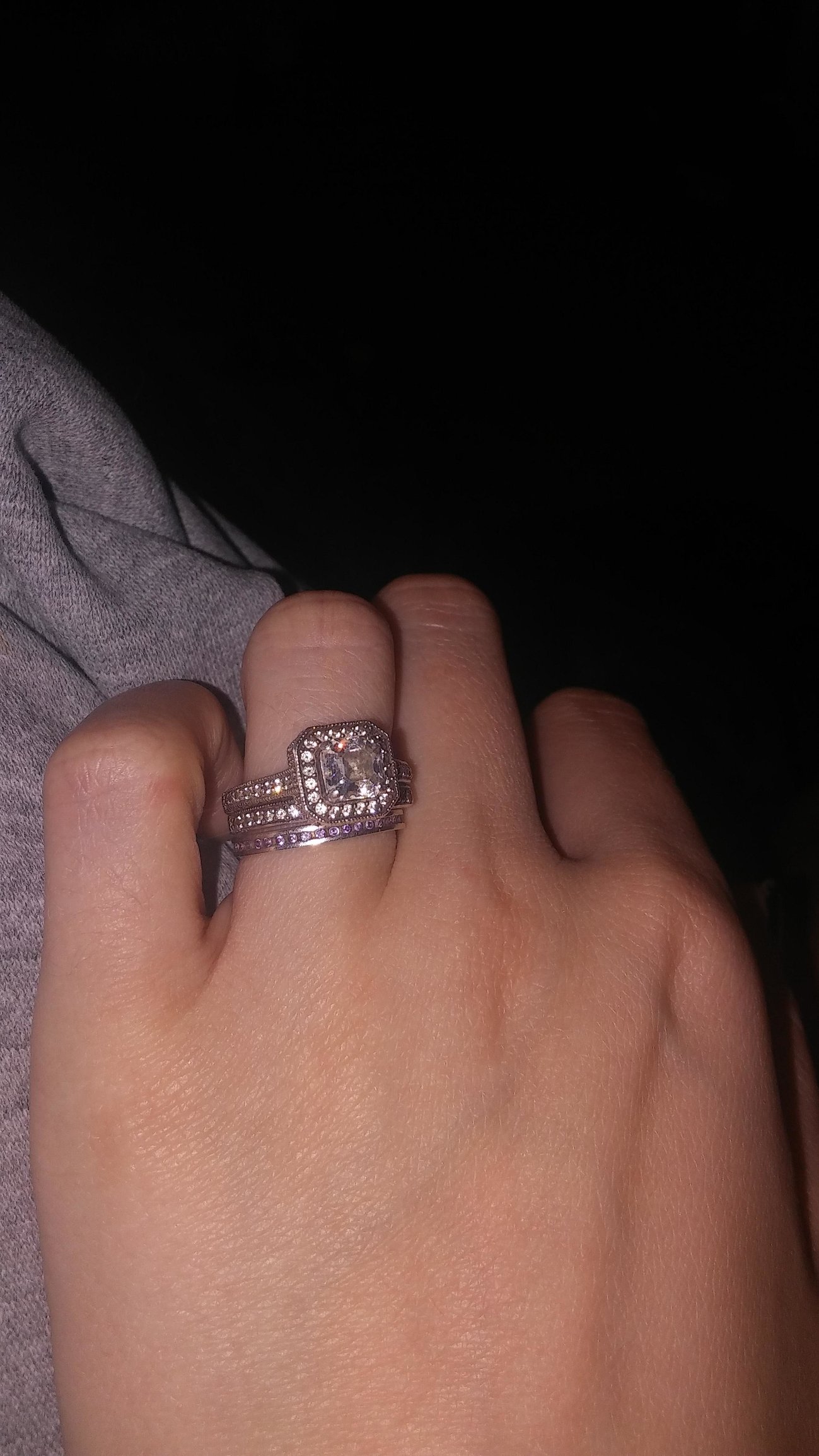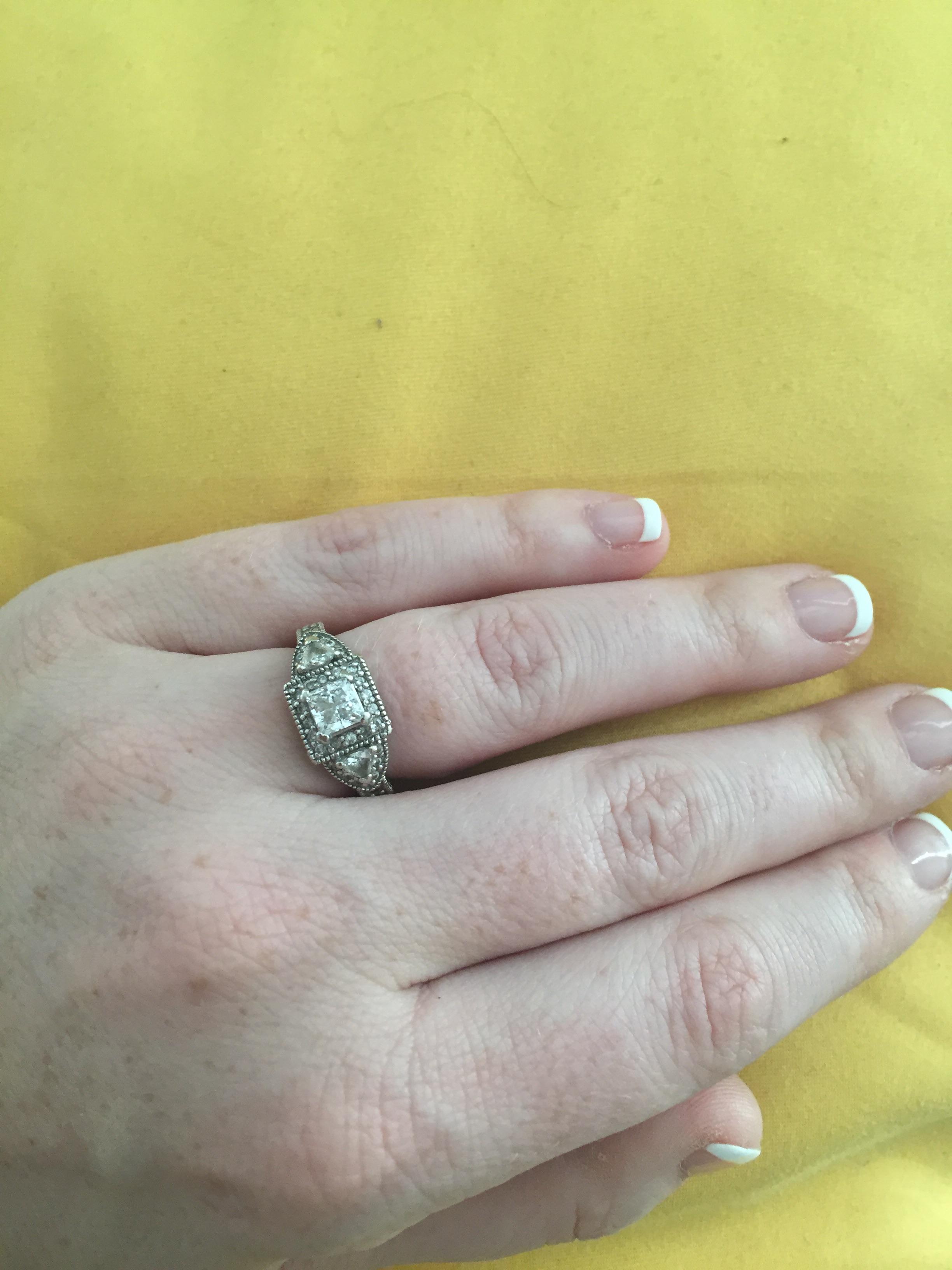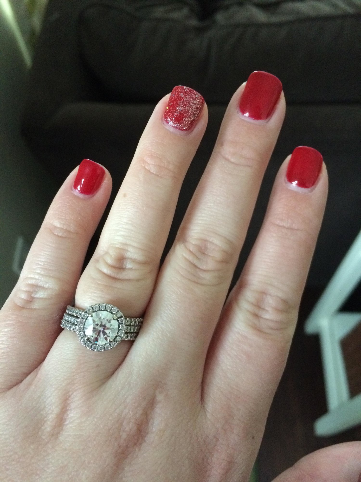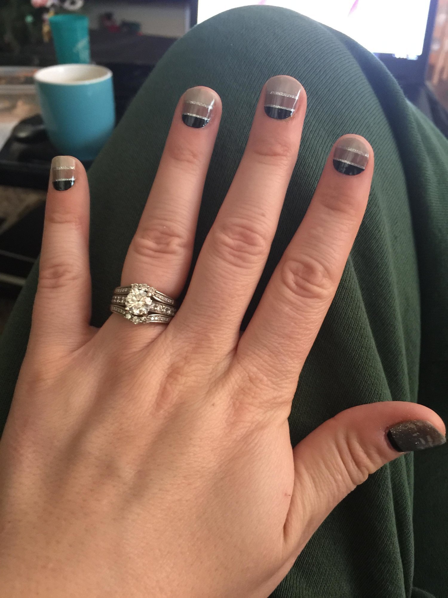 I'll play! My engagement ring setting is one I had fallen completely in love with having seen something similar on Pinterest and DH searched everywhere to find something like it :) the infinity band we picked out together! (edited to say dont mind my week old manicure I'm going to get NYE nails done tomorrow!)