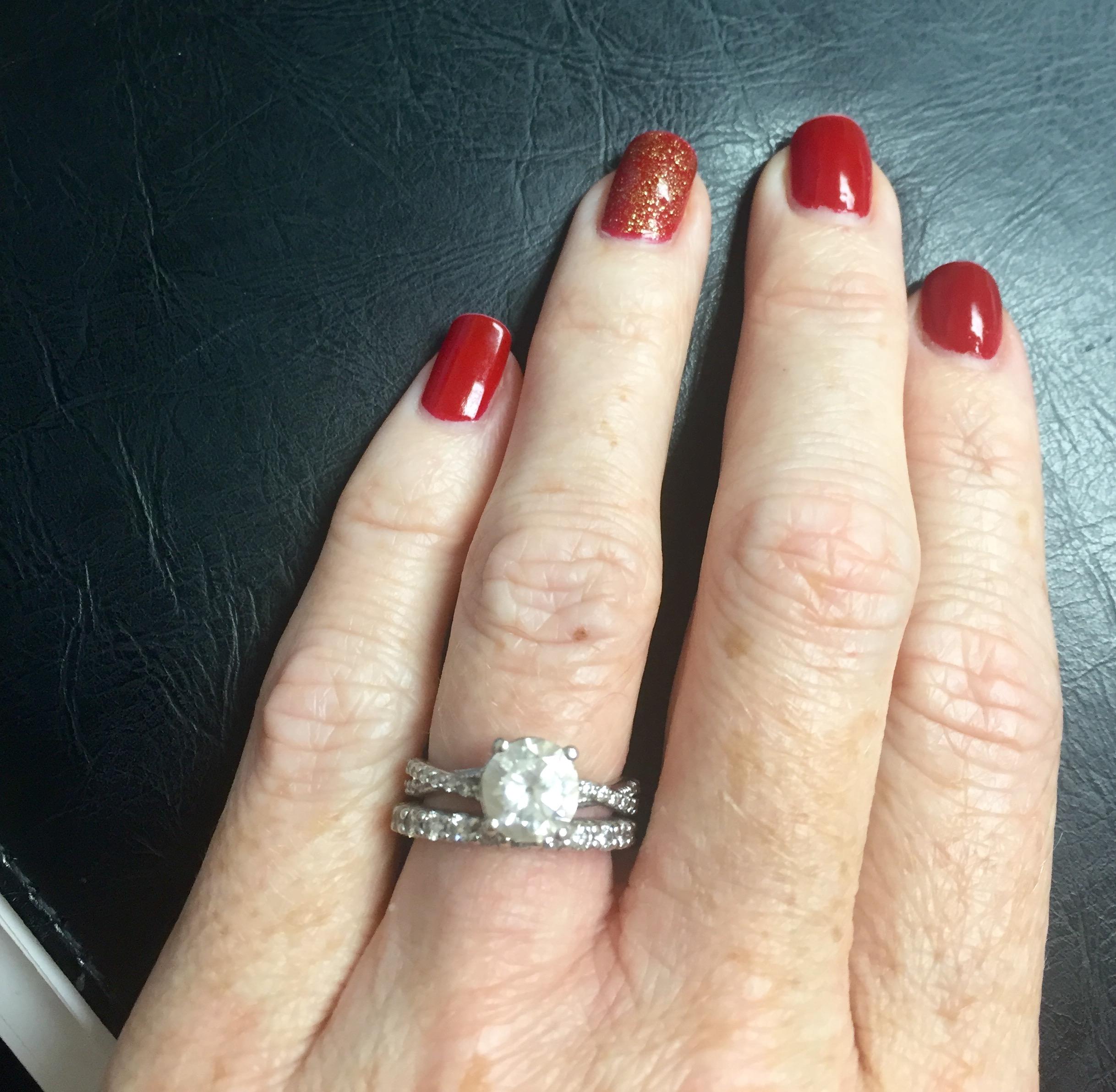 I LOVE my wedding set! One day I hope to complete it with an anniversary band that matches my wedding band on the other side of my engagement ring as well as a diamond band for both kiddos!