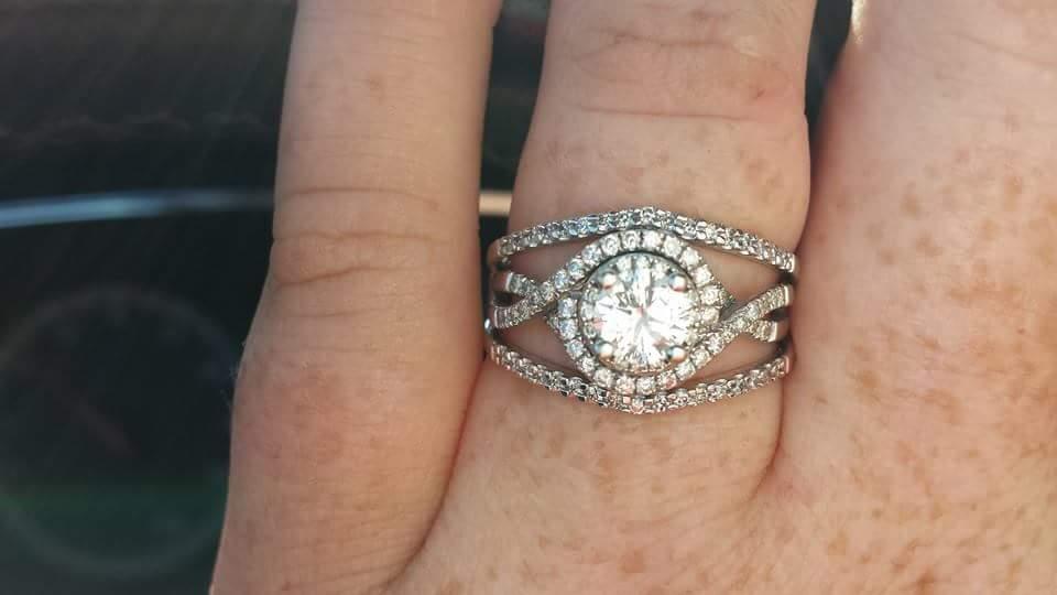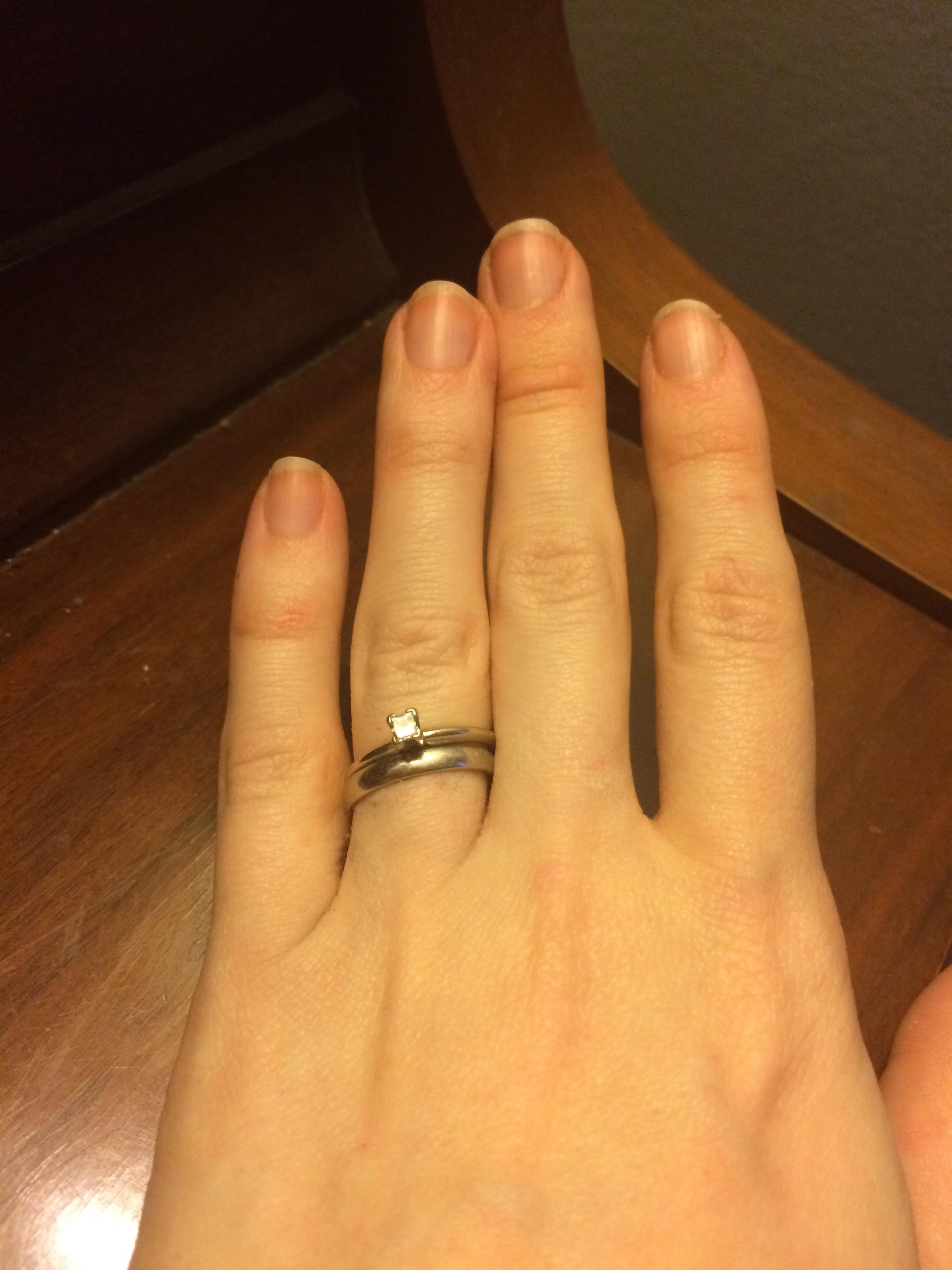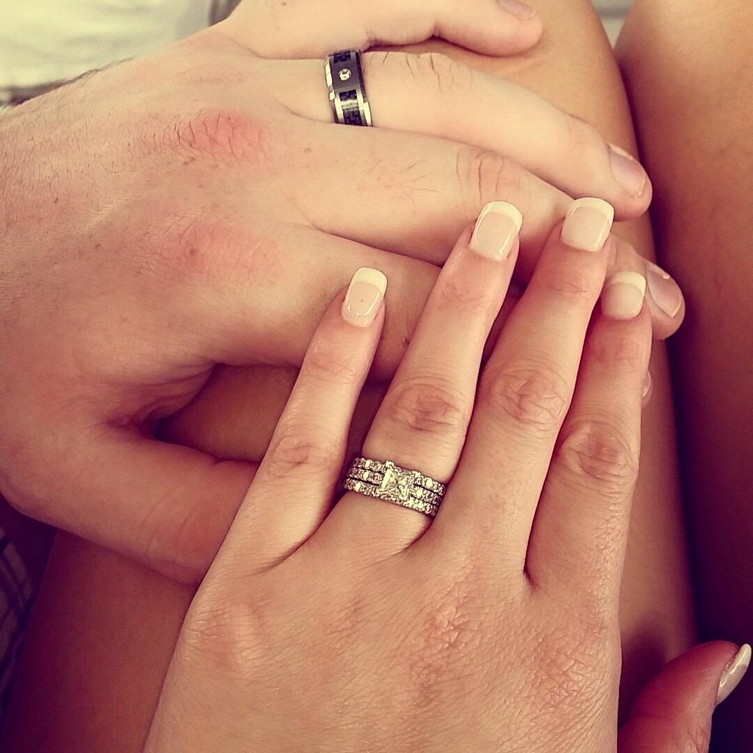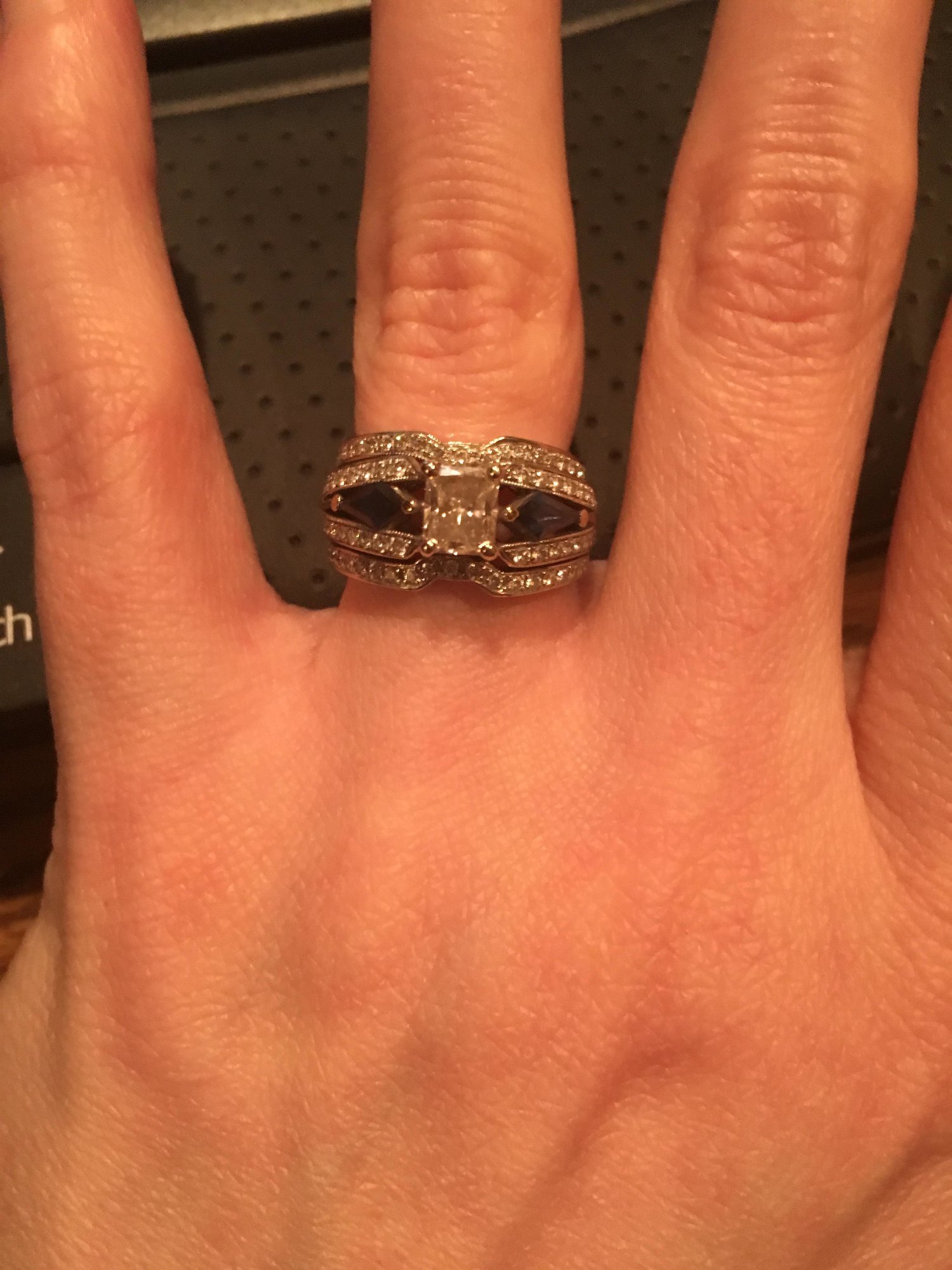 • NLewis1  Thank you :)  He picked out the E-ring by himself and we chose the wedding bands together.  I really like the mismatched look and once he saw it together he was sold!