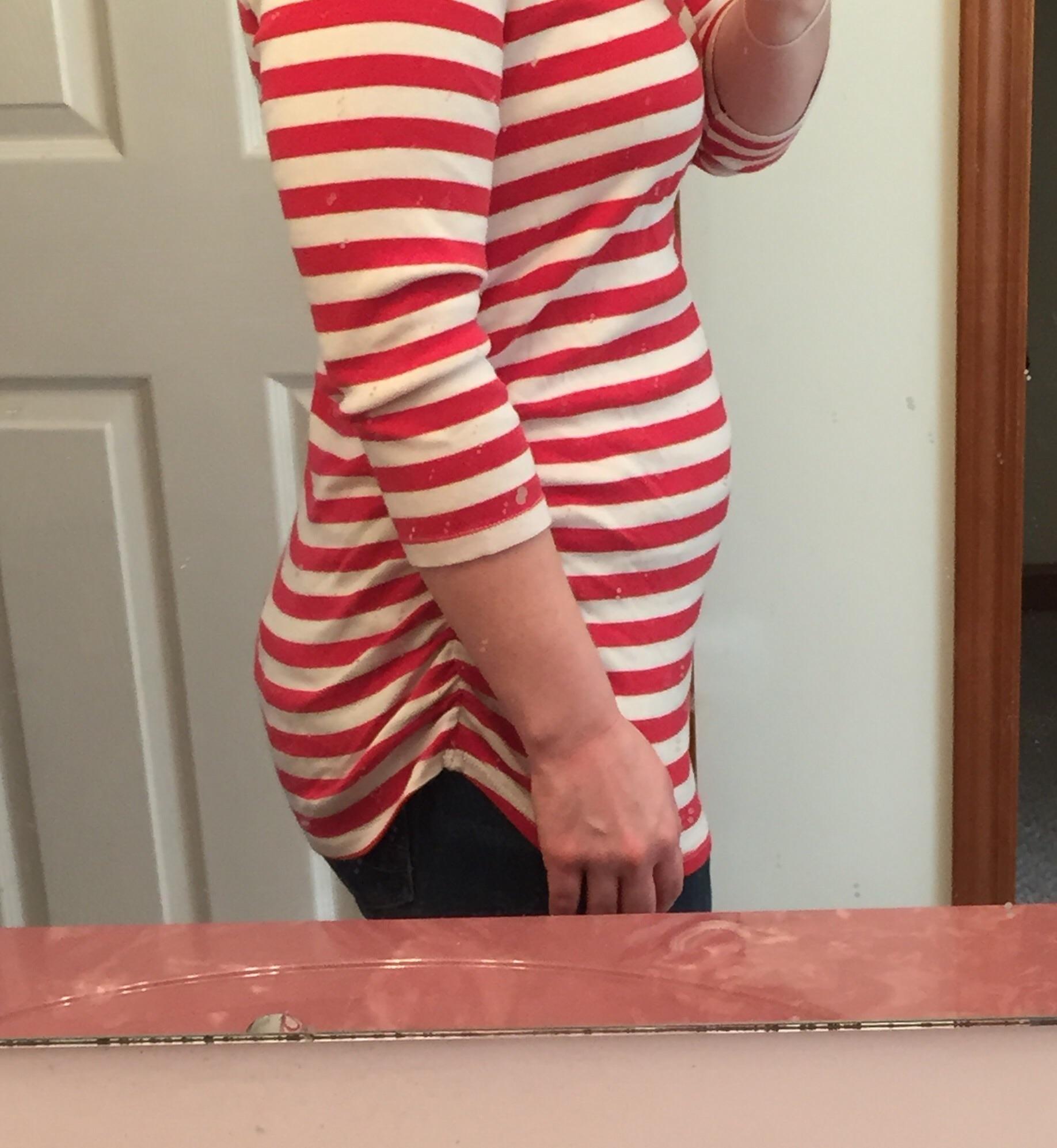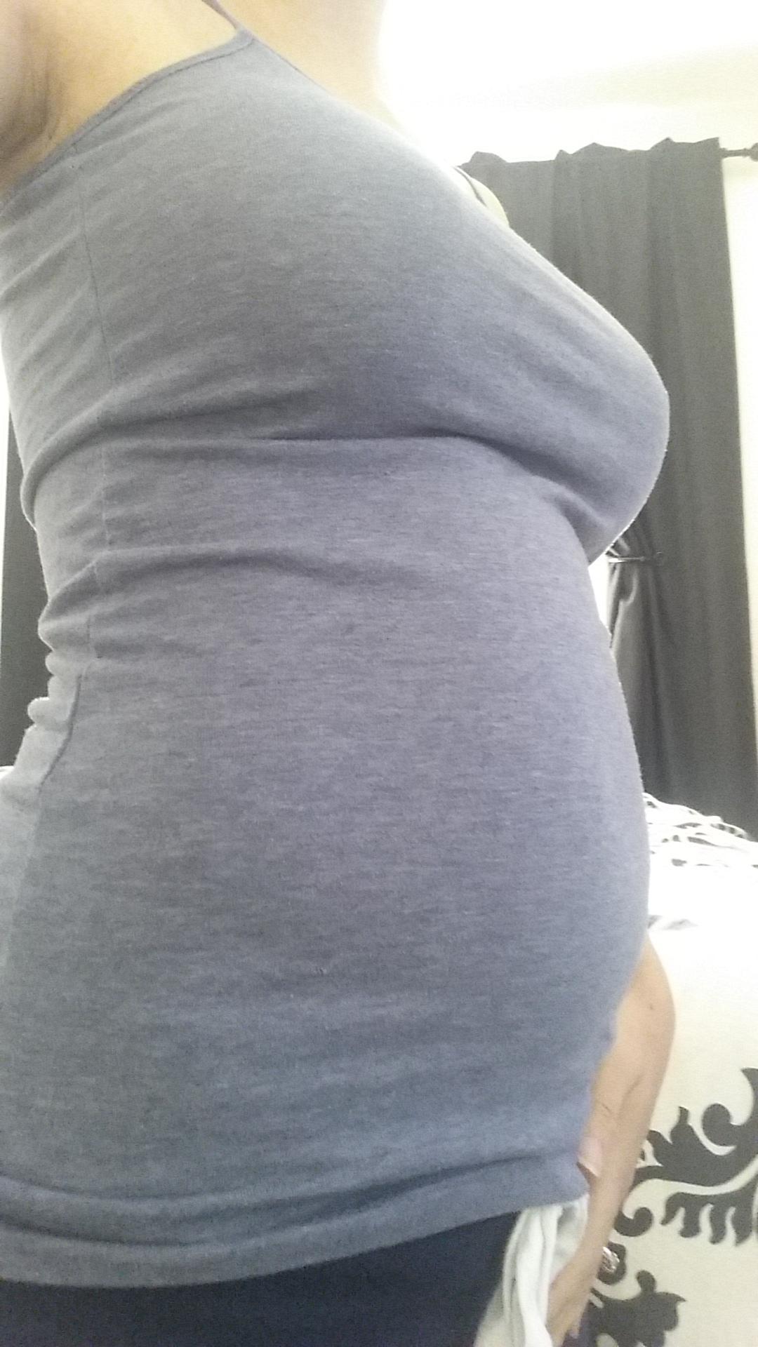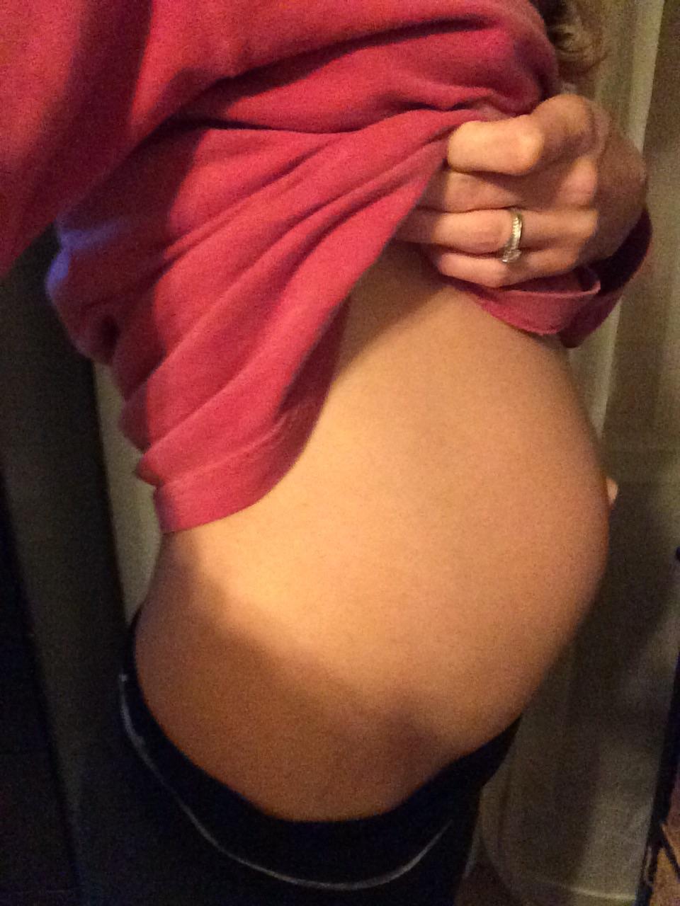 @Lindsayleigh1989 my manager at the gym I work at had a shirt she'd wear throughout her pregnancy that said "I'm not fat, I'm pregnant!" Feel like I need one just for these next couple of in between weeks.