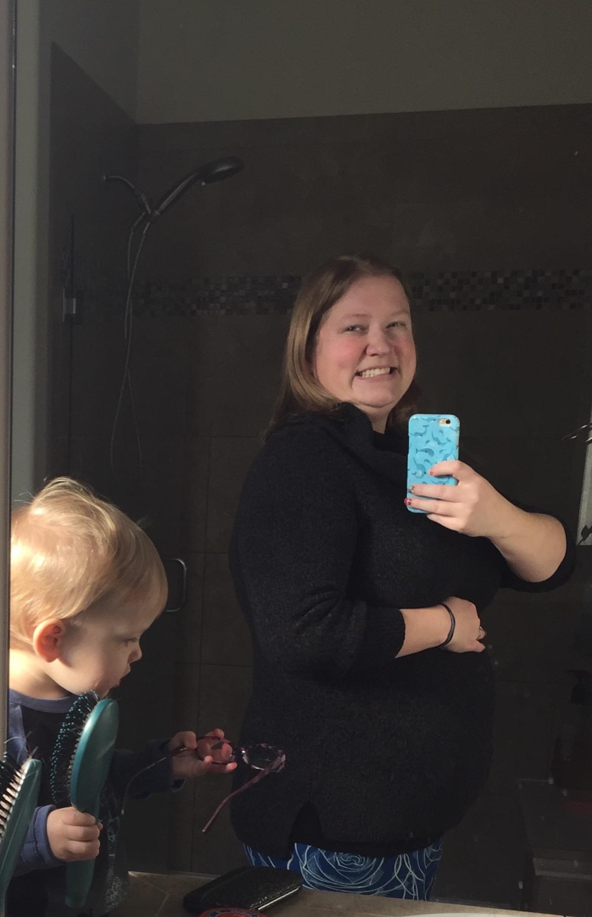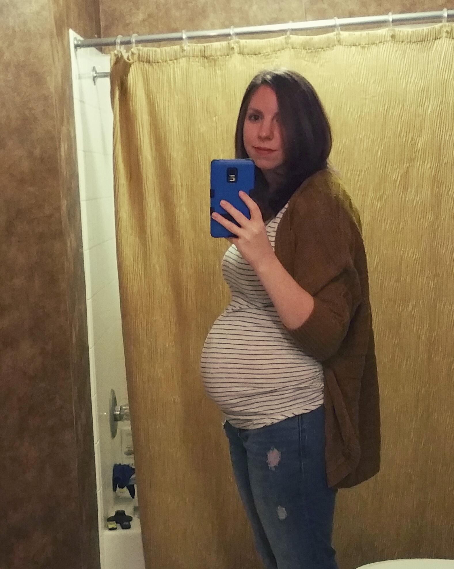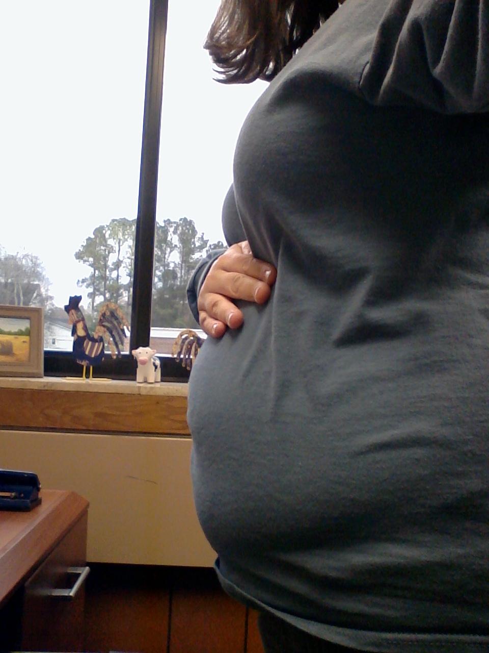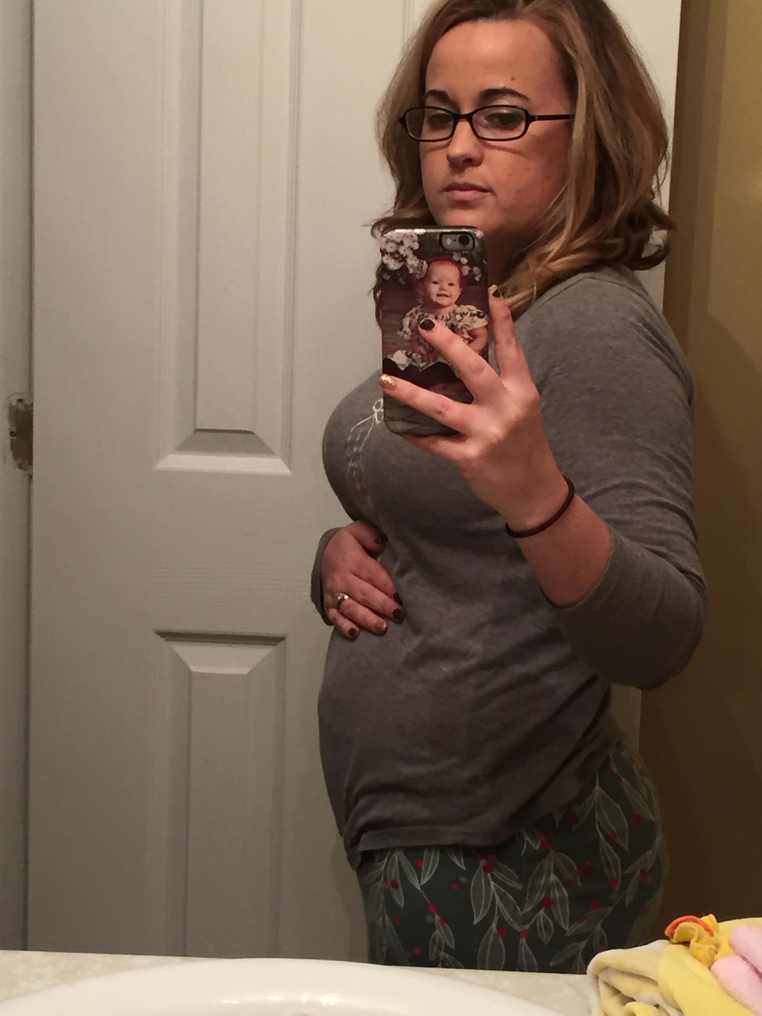 @Lindsayleigh1989 my manager at the gym I work at had a shirt she'd wear throughout her pregnancy that said "I'm not fat, I'm pregnant!" Feel like I need one just for these next couple of in between weeks.