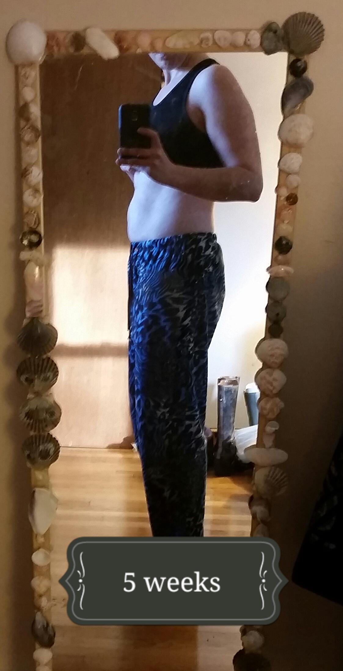 For reference, here I was at 5 weeks right after my positive test. 15 lbs of pure love, man.