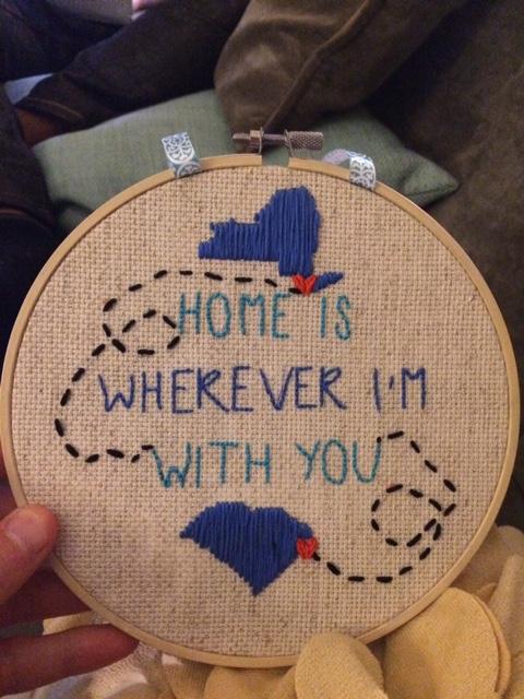What project are you currently working on (If different from above)? Not crochet but I just made this for my husband... he's from SC and I'm from NY, and we are hanging some new art and making our apartment feel homey, so I surprised him with this last night to add to our wall :-)